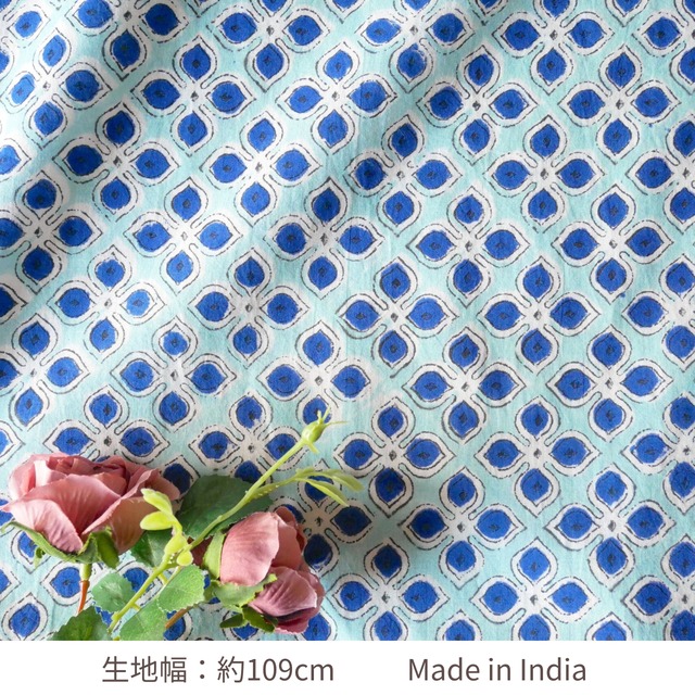 ◾️ライトブルー×ブルーの花モチーフが並ぶ、レトロなデザインのハンドブロックプリント生地 ミントがかったライトブルーをベースに、 深みのあるブルーの花モチーフが規則的に並んだ、レトロな雰囲気のハンドブロックプリント生地です。 どこか懐かしい印象を持ちながらも、軽やかな色合いが爽やかに映え、心が和むようなレトロデザインです。 職人がひとつひとつ木版を手で押し重ねることで生まれる、わずかなかすれやゆらぎが、手仕事ならではの温もりを添えています。 インド綿100%の薄手コットンで、肌ざわりはやわらかく、通気性にも優れているため、季節を問わずお使いいただけます。 自然光のもとでは、ブルーの模様が一層鮮やかに映え、涼やかで清潔感のある印象に。 【使用例】 ・お洋服:ブラウス、ギャザースカート、チュニック、ワンピースなど ・小物:ポーチ、巾着、ヘアアクセサリー、バッグなど ・インテリア:クッションカバー、カフェカーテン、テーブルクロス レトロな雰囲気やクラシカルなデザインを楽しみたい方に。 花モチーフのやさしい曲線が、どこか懐かしい可愛らしさを引き立てます。 ブロックプリントの温もりを、大切な誰かのために。 一針一針、想いを込めて。 大切な人のために。自分のために。 心を込めた一枚を、ぜひ仕立ててみてください。 ------------------------------------------- ■ 商品データ ・原産国:インド ・生地幅(約):109cm ・素材:インド綿100%/薄手コットン ・染色技法:手染め・手刷り(ハンドブロックプリント) ・ベースカラー:ライトブルー ・柄:花モチーフ ・質感:薄手でふんわりとした風合い ・透け感:ややあり ・商用利用:可 ------------------------------------------- ■ ご注意事項 ・ハンドブロックプリント特有のにじみやズレ、かすれや色ムラが見られることがあります。手仕事ならではの表情としてお楽しみいただけますと幸いです。 ・モニター環境により、実際の色味と異なって見える場合があります。 ・初回のお洗濯は、できるだけ単独でお試しいただくことをおすすめします。 ・再入荷は未定となります。 ■ ご注文方法 ・表示価格は10cmあたりの価格です。 ・50cm以上(=数量5以上)から、10cm単位でご注文いただけます。【例】50cm→5 / 1m→10 / 2.5m→25 ⚠️ ご注文は数量5以上(=50cm~)から承っております。 誤って5未満でご入力された場合は、ご注文をお受けできませんのでご了承くださいませ。 ◾️初回購入特典のご案内 はじめてご利用の方には、20%OFFクーポンをご用意しています。 詳しくはこちら → https://shop.content-fabrics.com/blog/2024/01/18/135423 ■ 送料・配送について ・全国一律185円にてお届けします。 ・その他詳細はショッピングガイドをご覧ください https://shop.content-fabrics.com/p/00001 ■ 詳しいご案内はこちら ・ハンドブロックプリントを初めてご購入の方へ https://shop.content-fabrics.com/blog/2023/10/17/053223 ・contentでのお買い物方法について https://shop.content-fabrics.com/blog/2024/02/05/131214 ■ contentからのひとこと content(小さな幸せ)は、インドのハンドブロックプリント生地をお届けしています。 手仕事の温かさとともに、作品づくりの時間が少しでも心豊かなひとときになりますように。