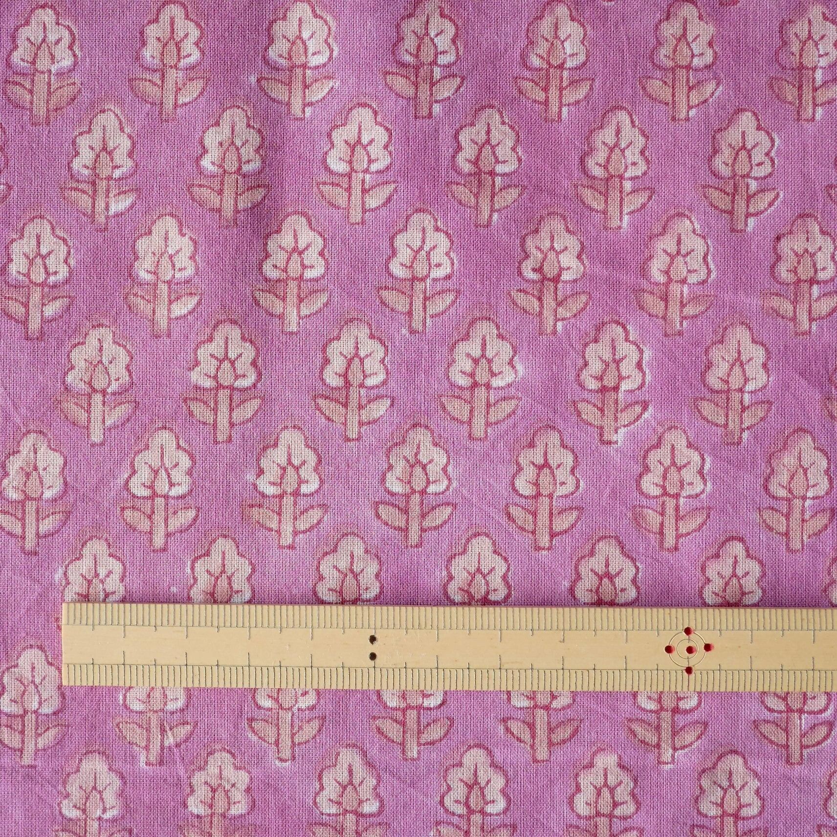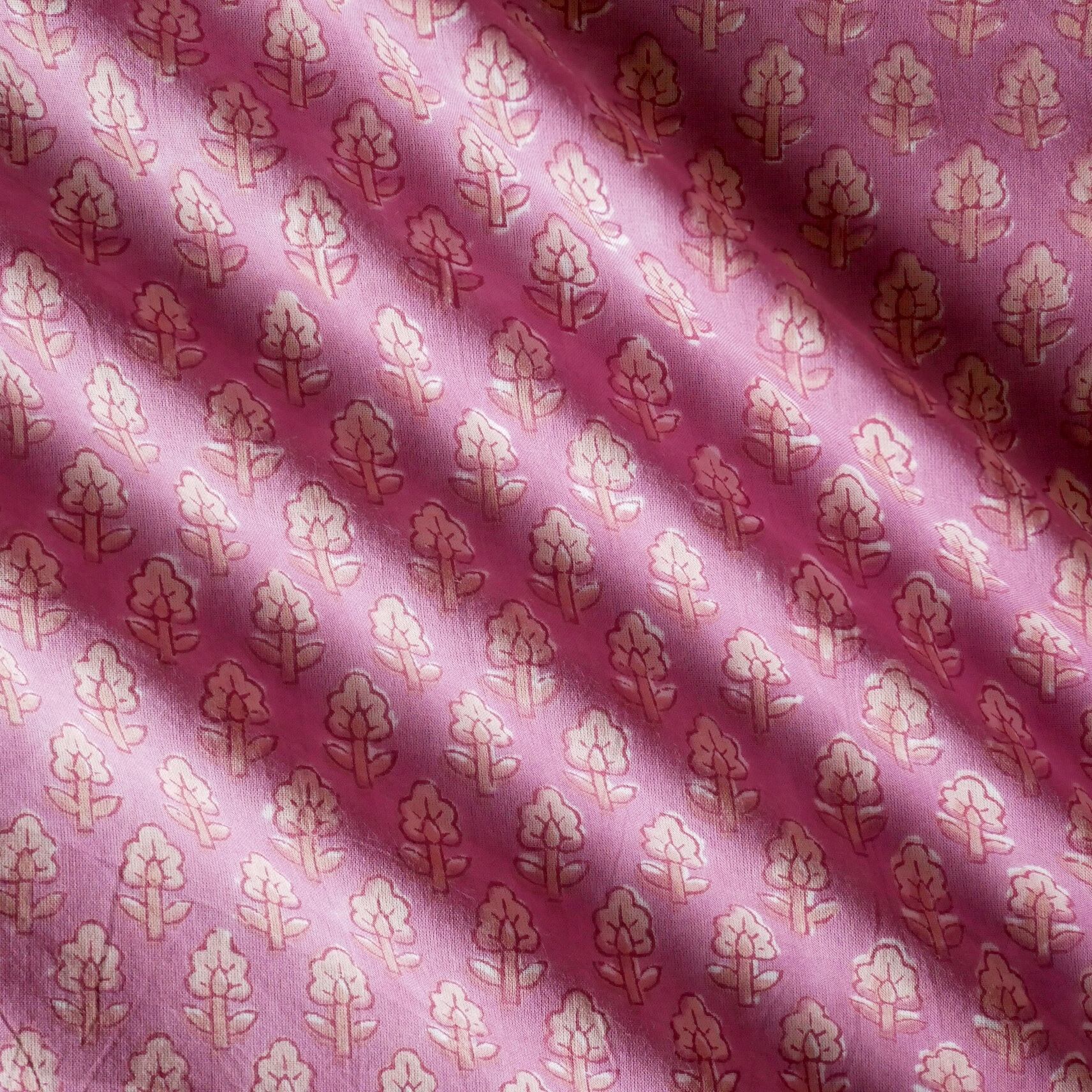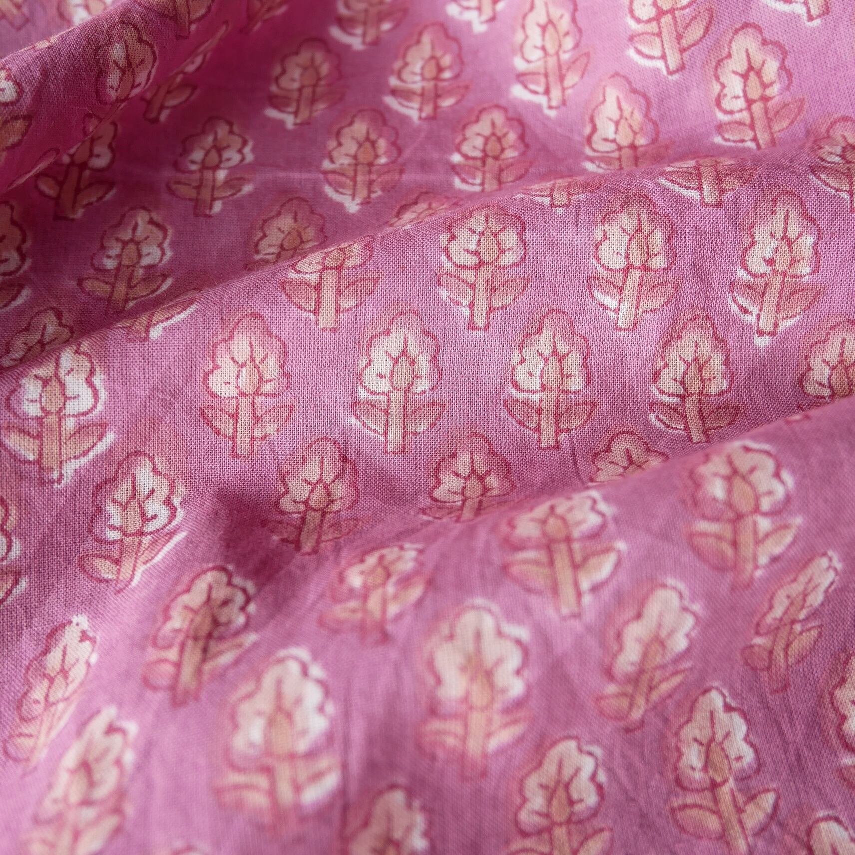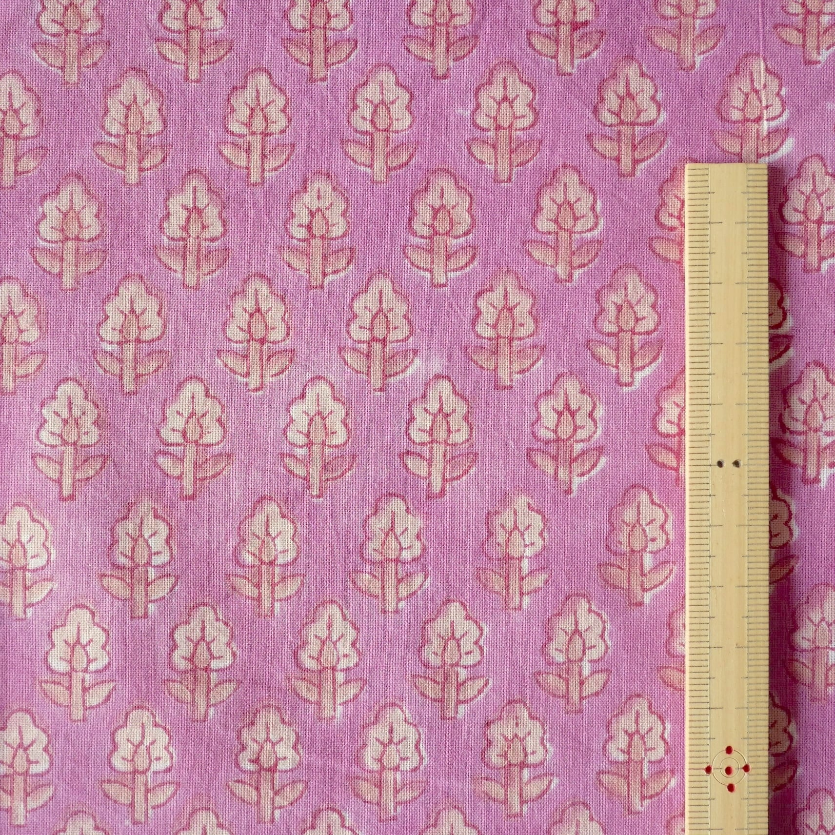 ハンドブロックプリント生地 インド更紗 綿生地 モーヴピンク系ベース×小さな植物モチーフ 薄手コットン JE-250408