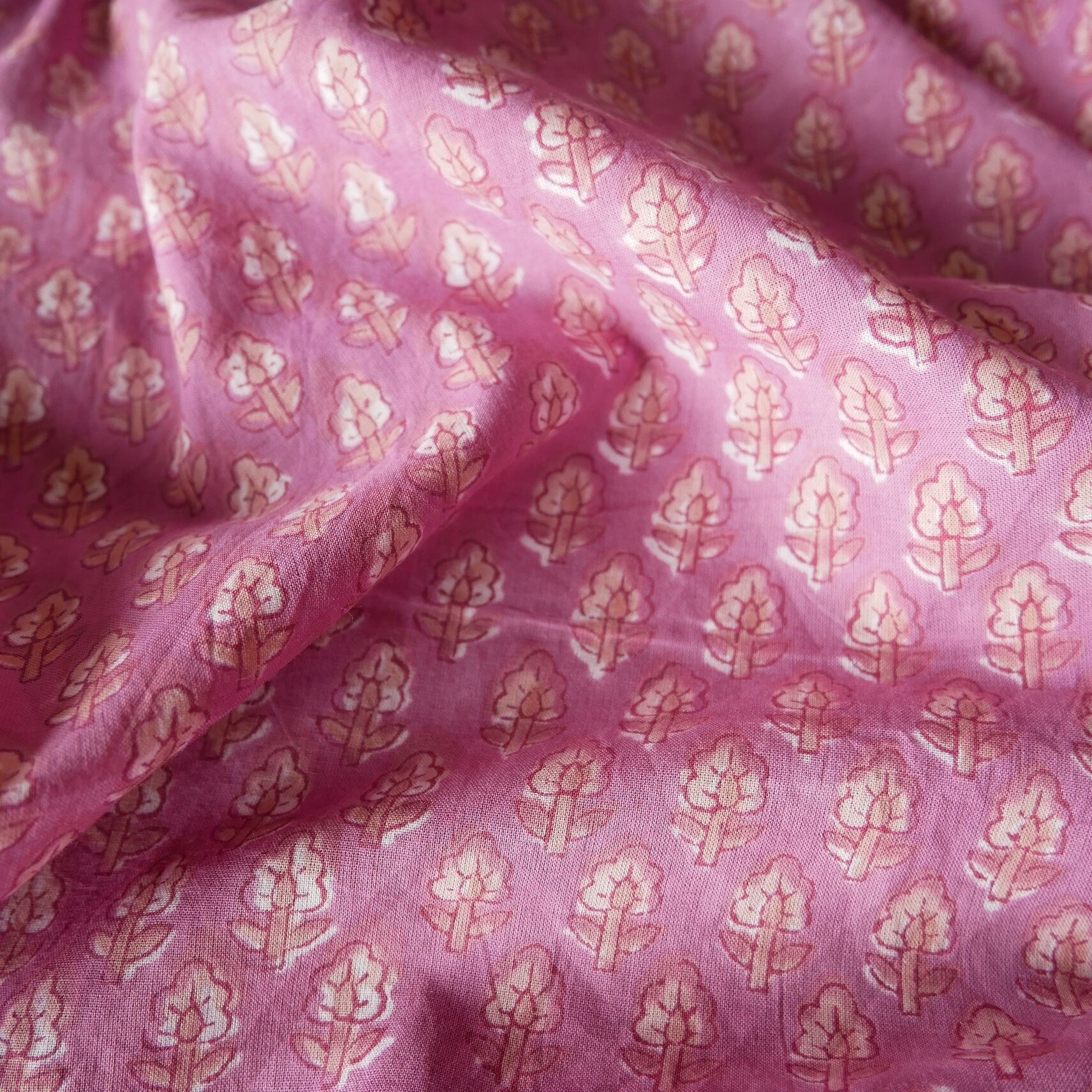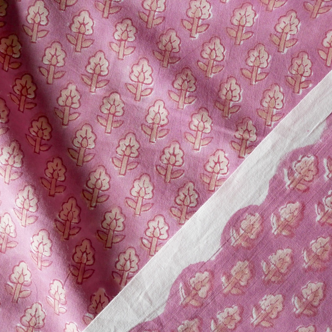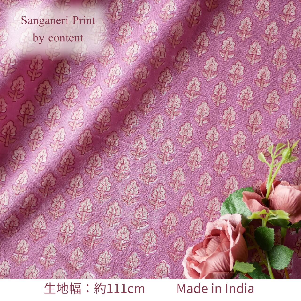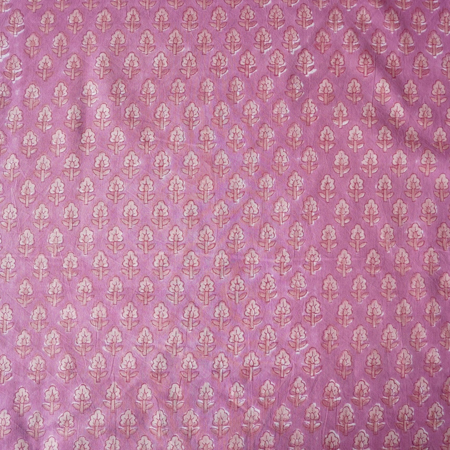ハンドブロックプリント生地 インド更紗 綿生地 モーヴピンク系ベース×小さな植物モチーフ 薄手コットン JE-250408