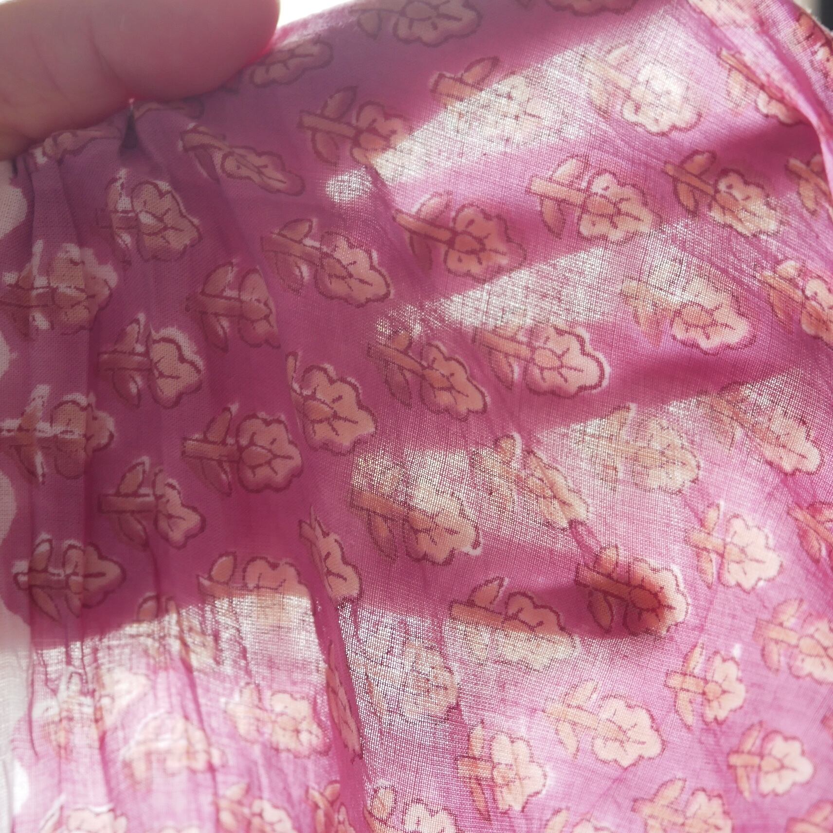 ◾️モーヴピンク系ベースにリズムよく並ぶ小さな植物模様。甘さを抑えた上品な可愛らしさが魅力のインドのブロックプリント生地