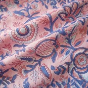 ◾️やさしいピンクにのびやかに描かれた、花と実のモチーフ。華やかで個性あるブロックプリント生地