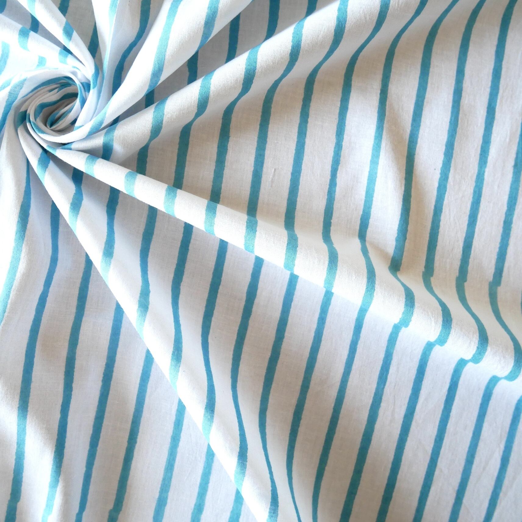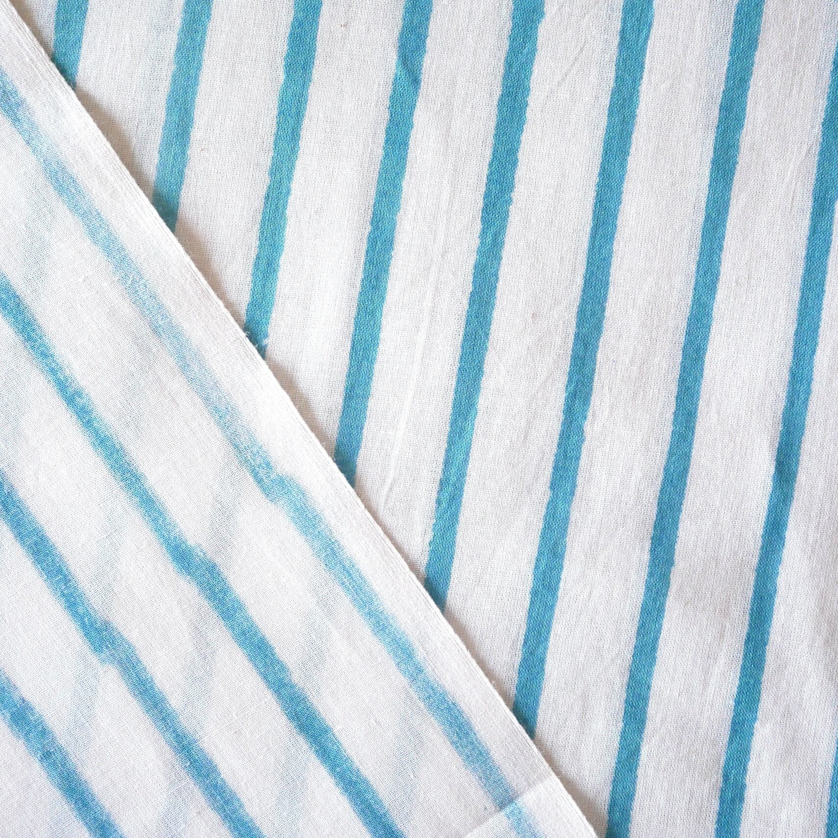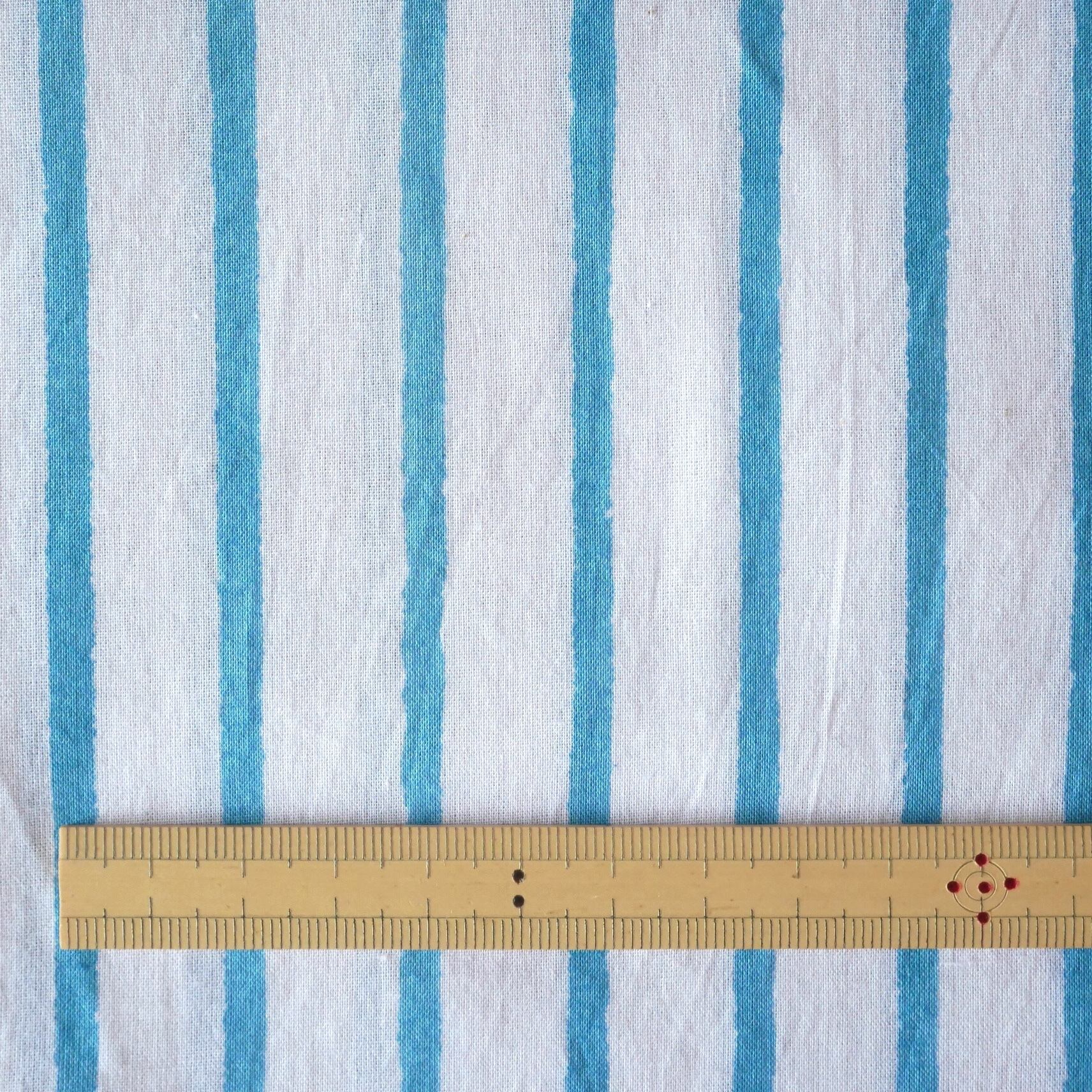 ◾️軽やかでシンプルなターコイズブルーのストライプ。インドのハンドブロックプリント生地