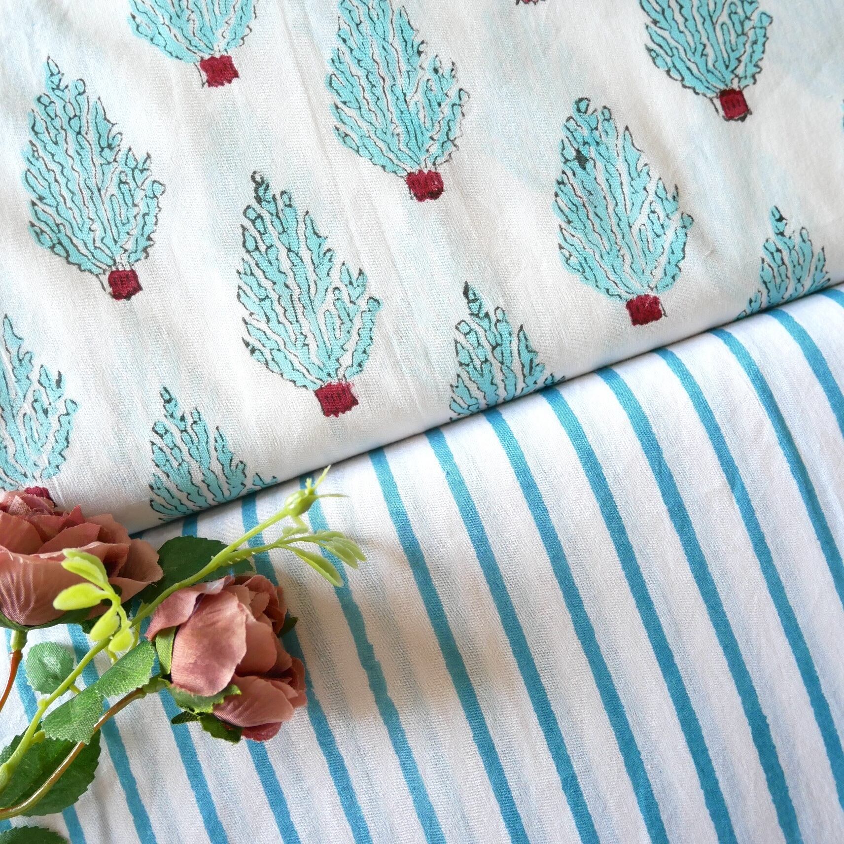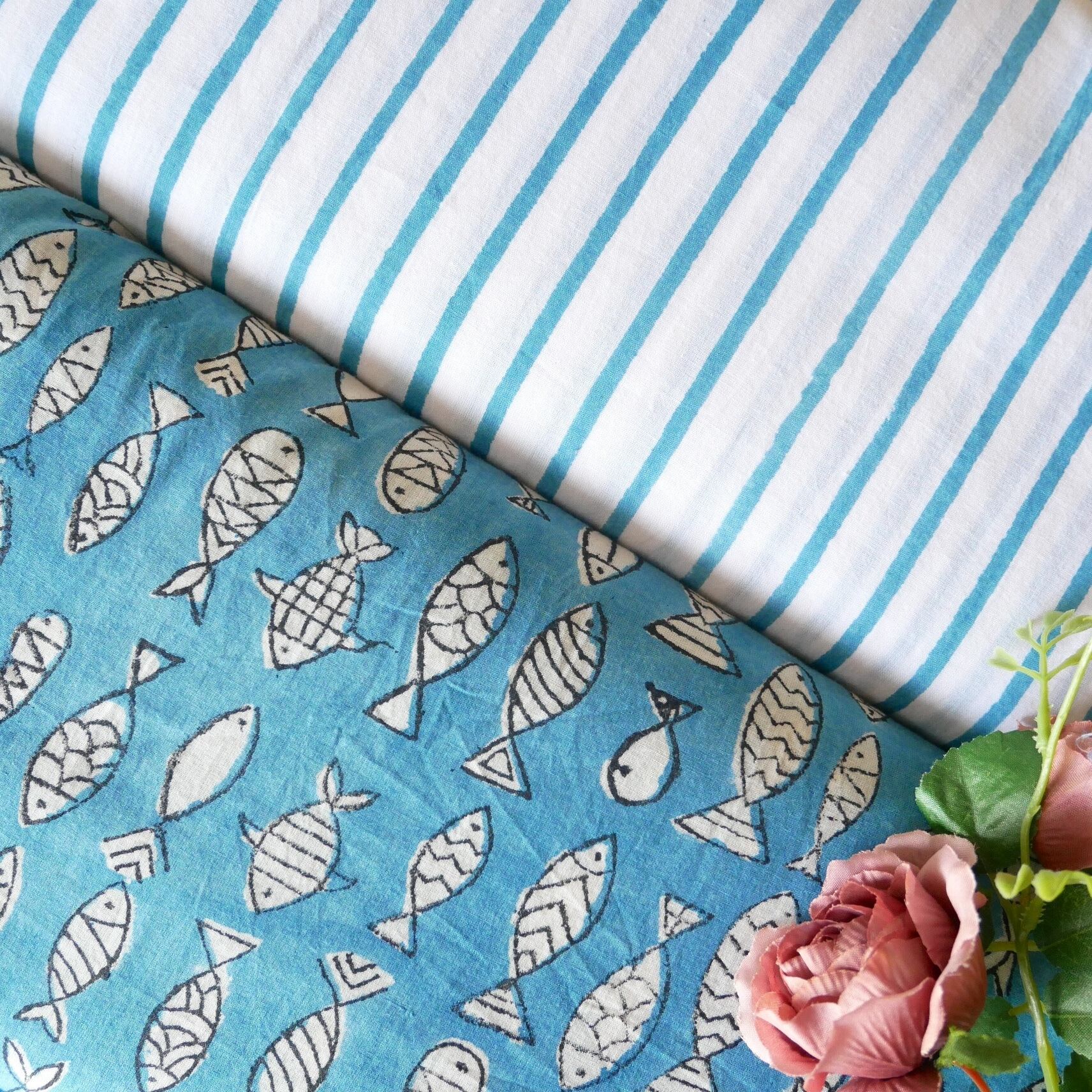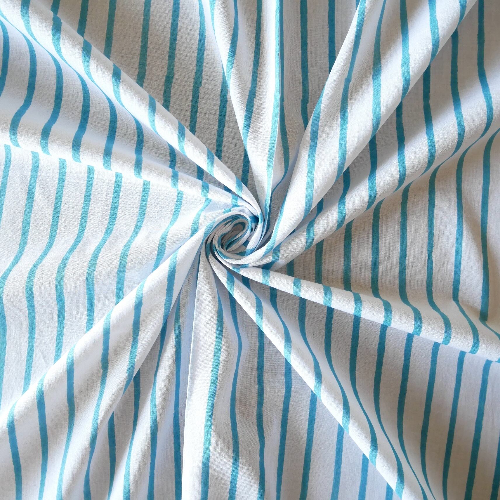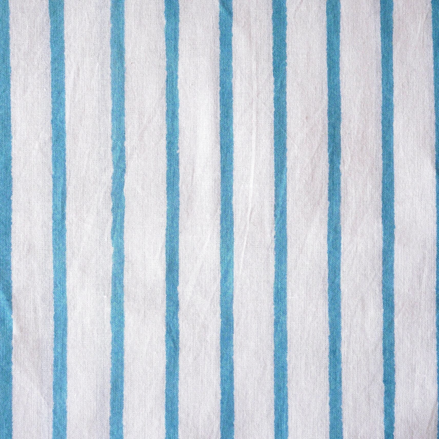 ◾️軽やかでシンプルなターコイズブルーのストライプ。インドのハンドブロックプリント生地