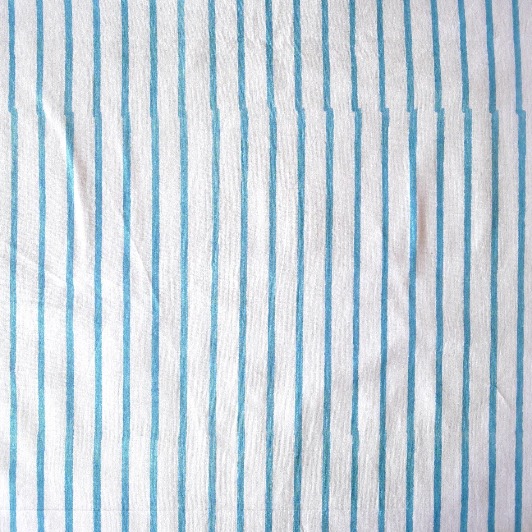 ハンドブロックプリント生地 インド更紗 綿生地 ホワイトベース×ターコイズブルーのストライプ 薄手コットン LT-250803