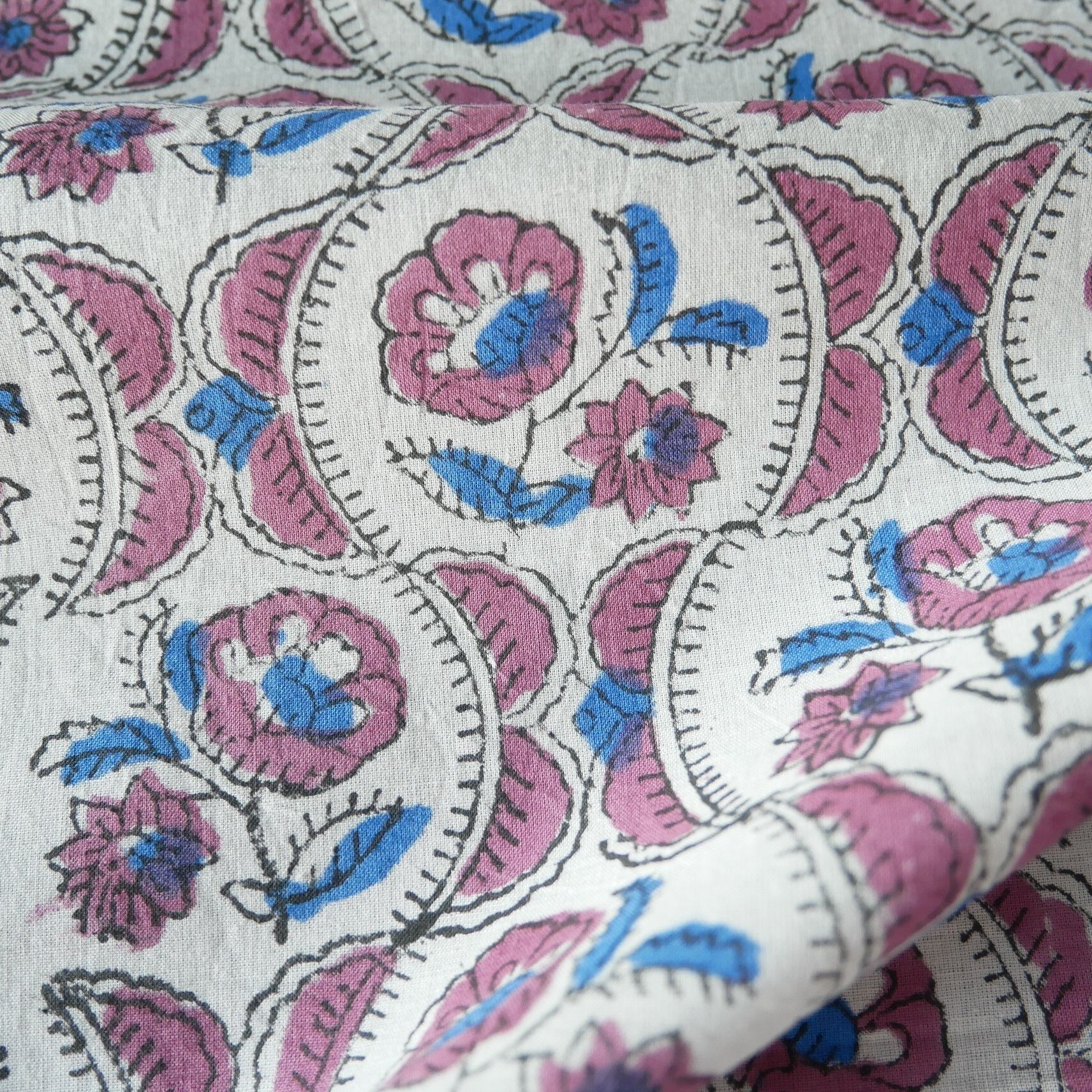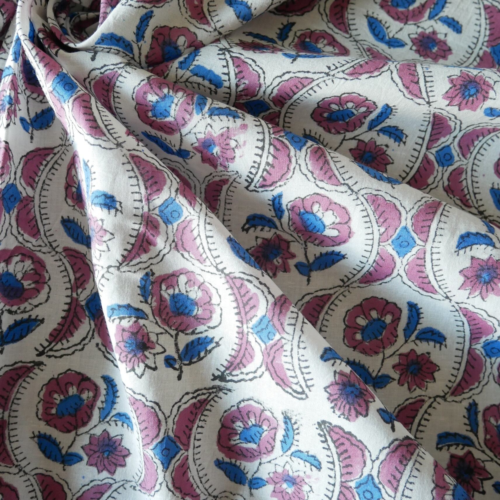 この生地は、インドの職人によって一つひとつ丁寧にプリントされた、伝統的なハンドブロックプリントの生地です。