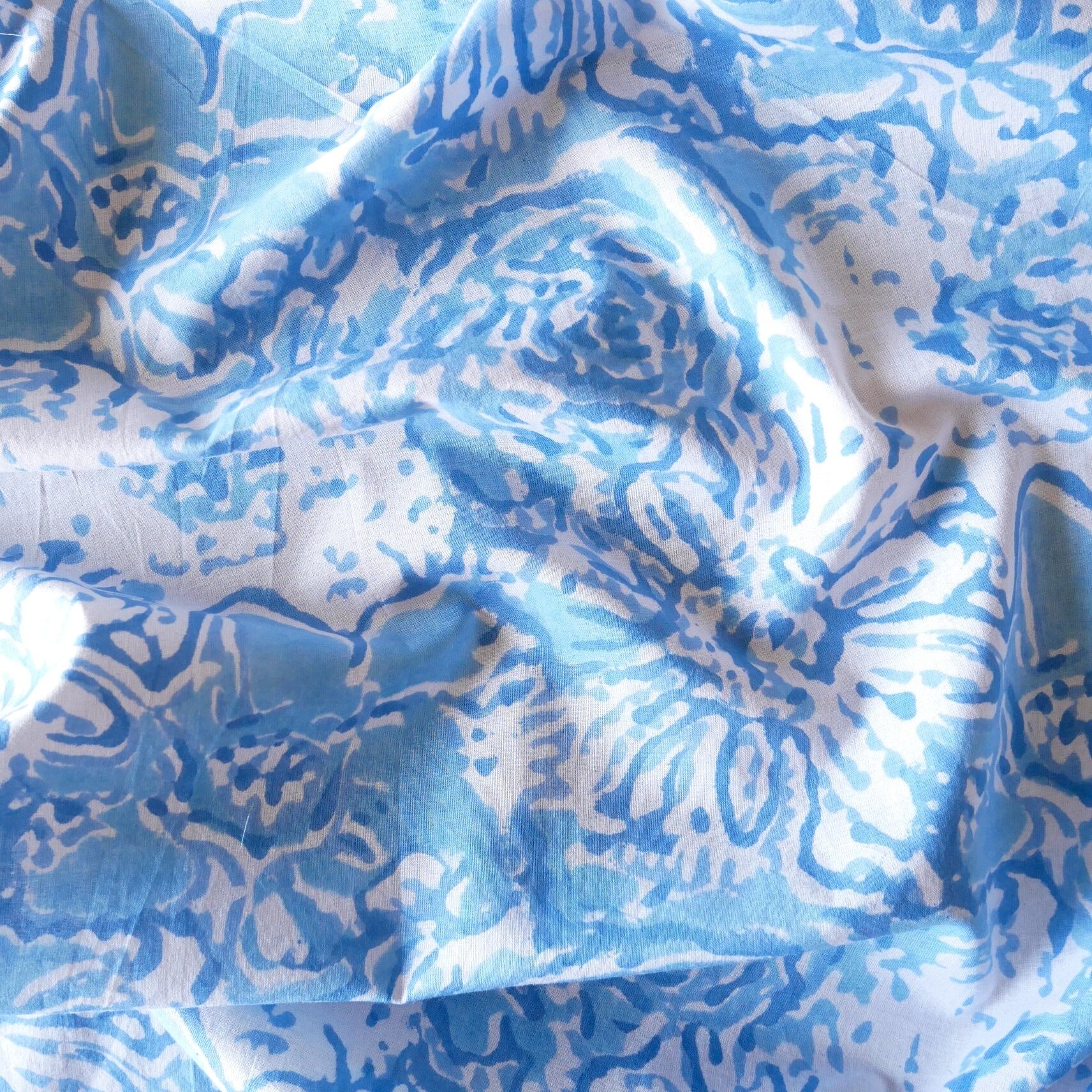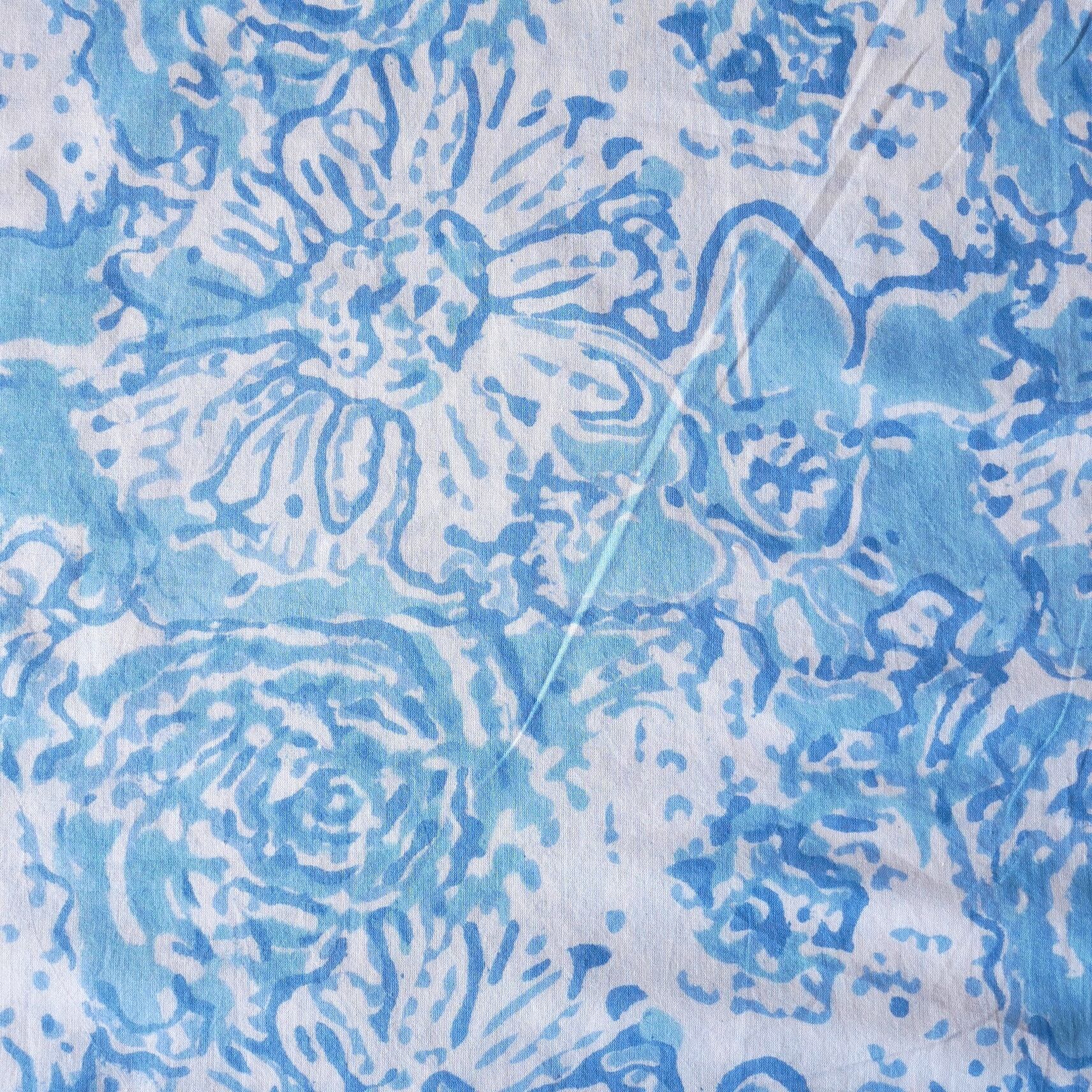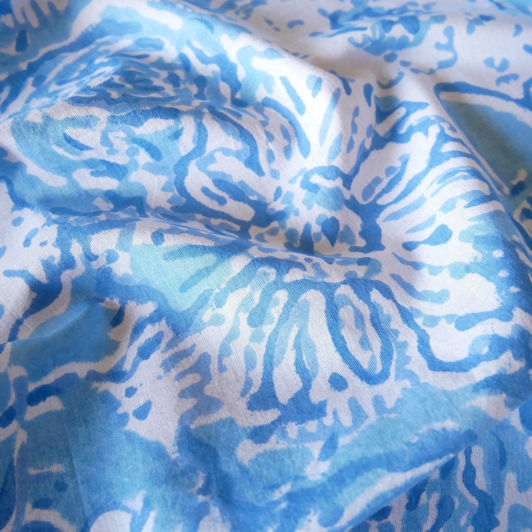 ◾️ブルーの濃淡が描くマーブル調の花々。爽やかに纏うブロックプリント生地