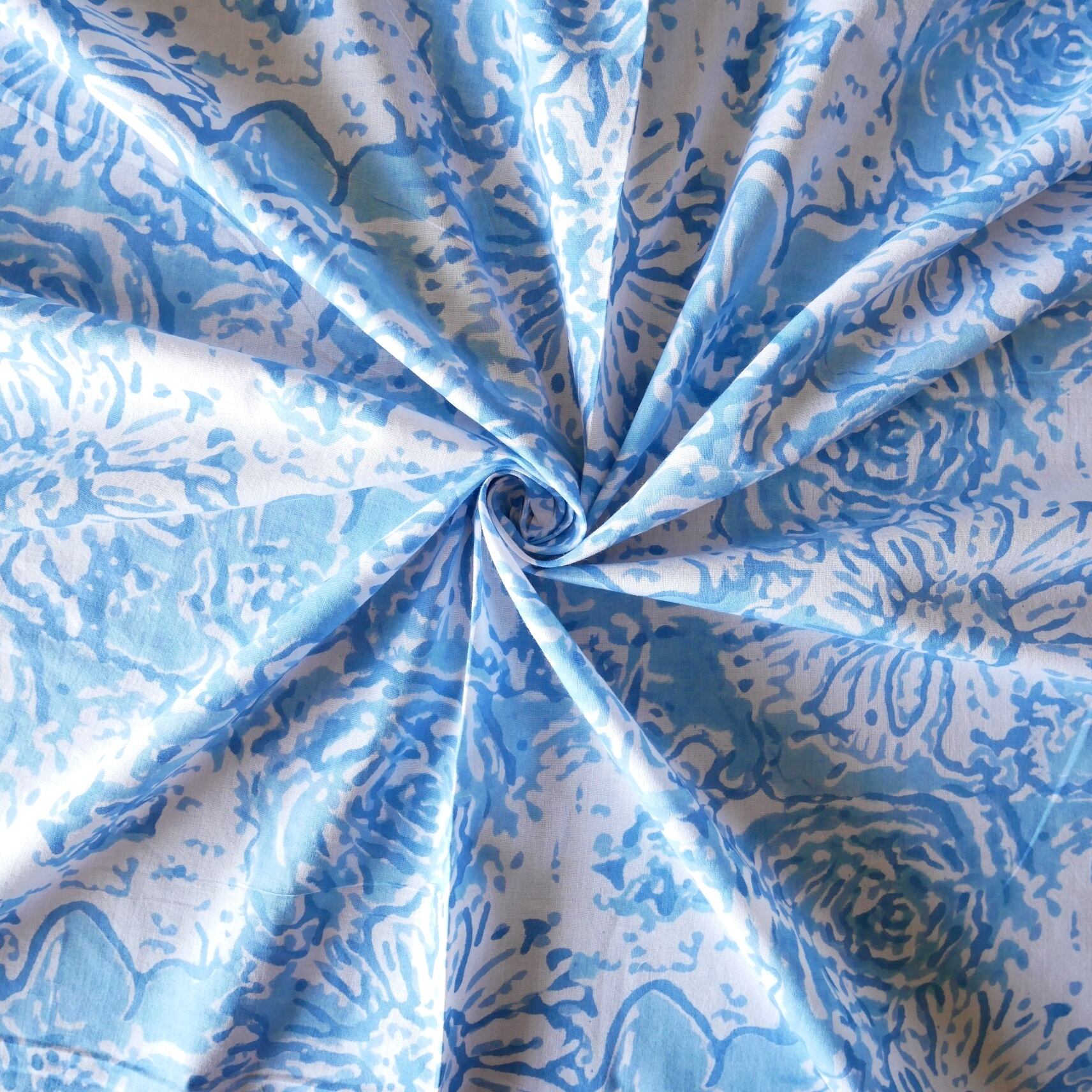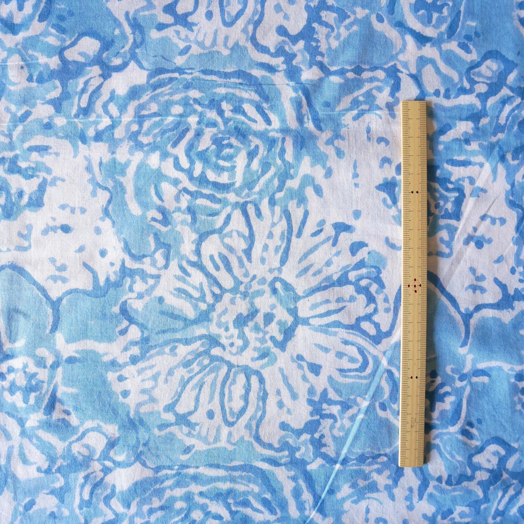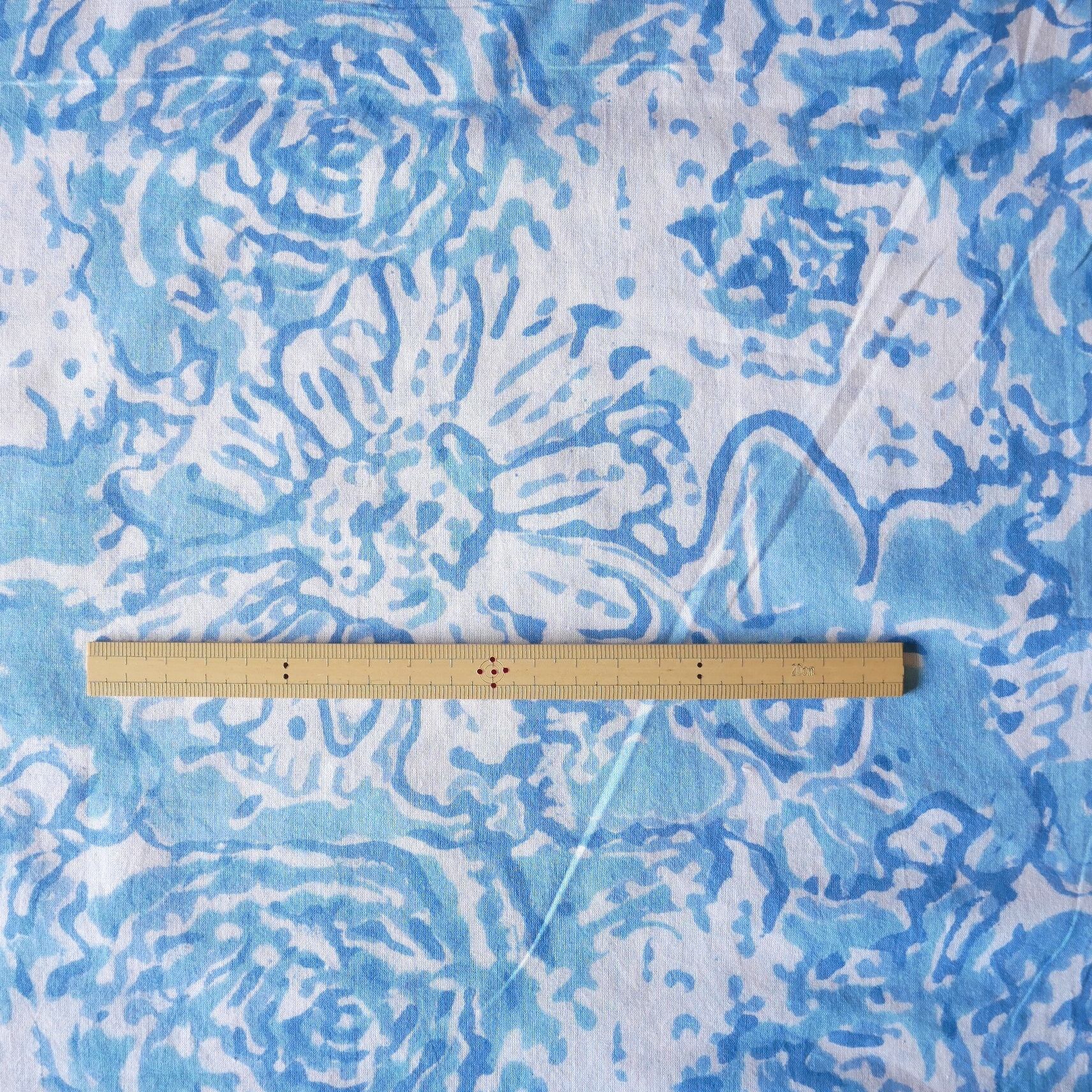 ハンドブロックプリント生地 インド更紗 綿生地 ホワイトベース×ブルーマーブル調フラワー 薄手コットン LT-250845