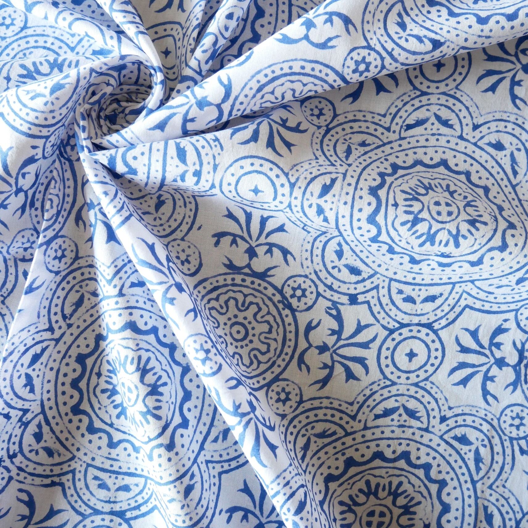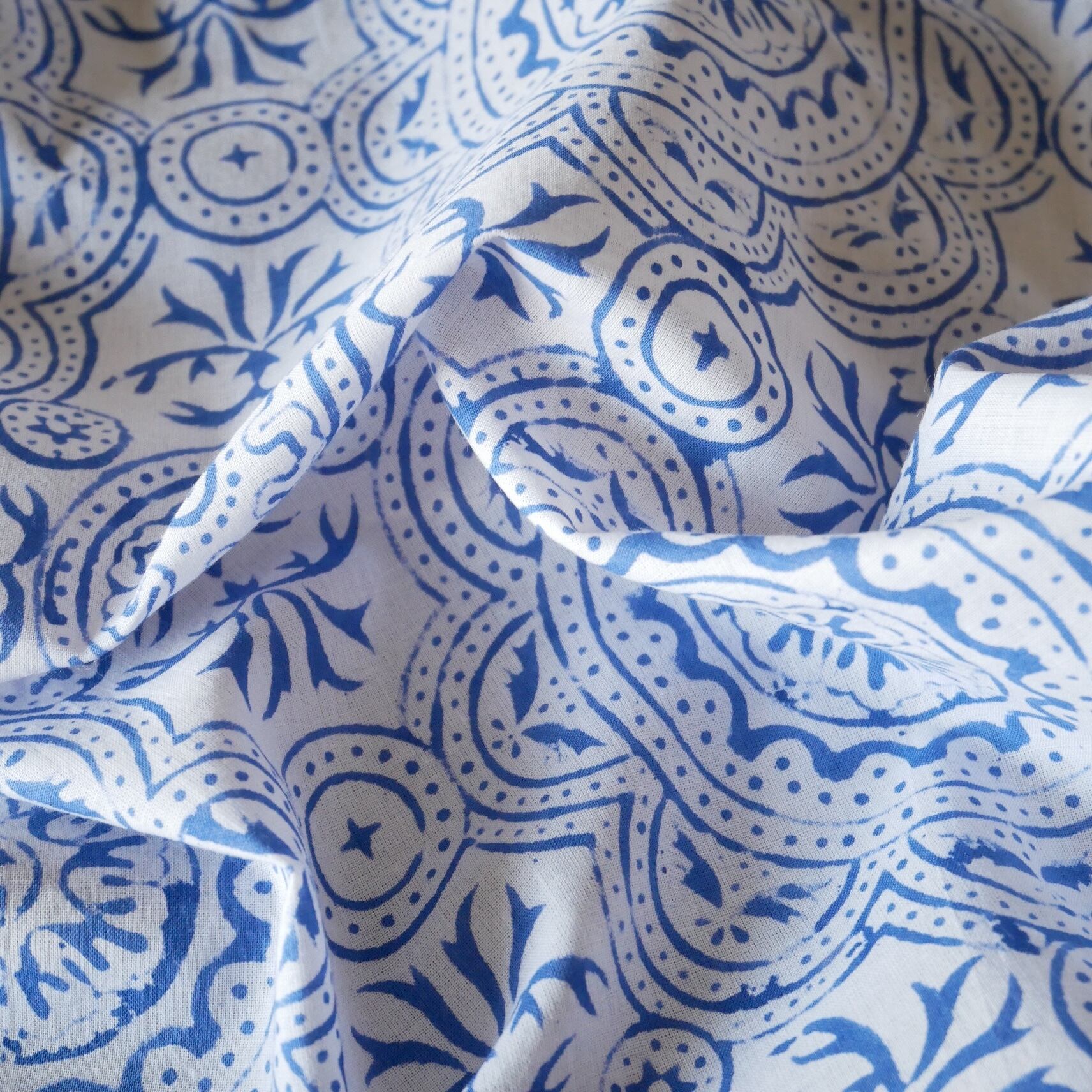 ◾️爽やかなブルーの文様が映える。服にも小物にもおすすめのブロックプリント生地