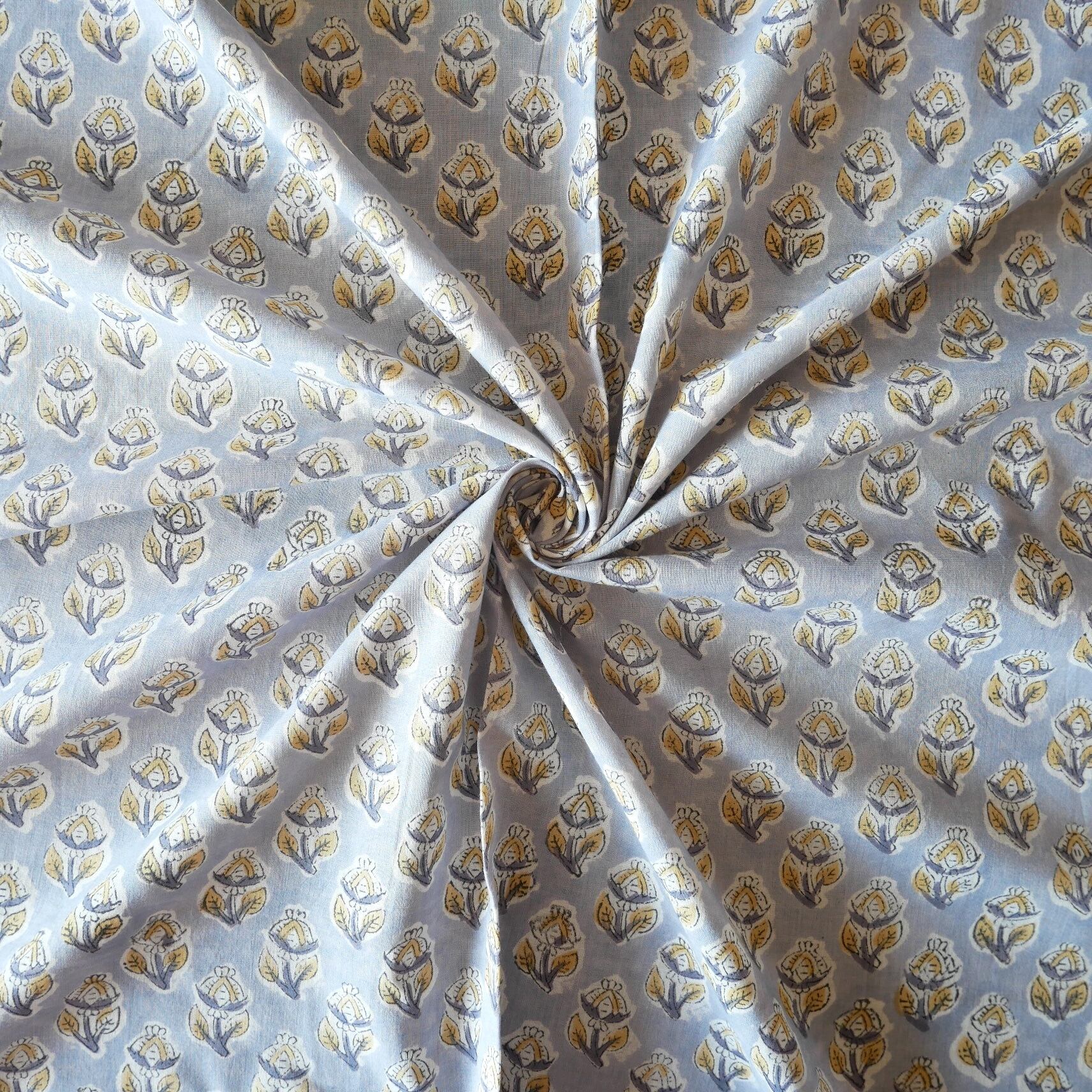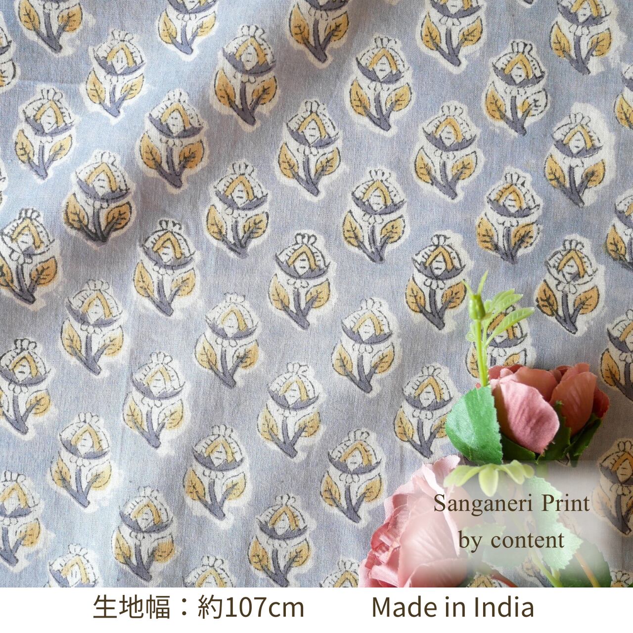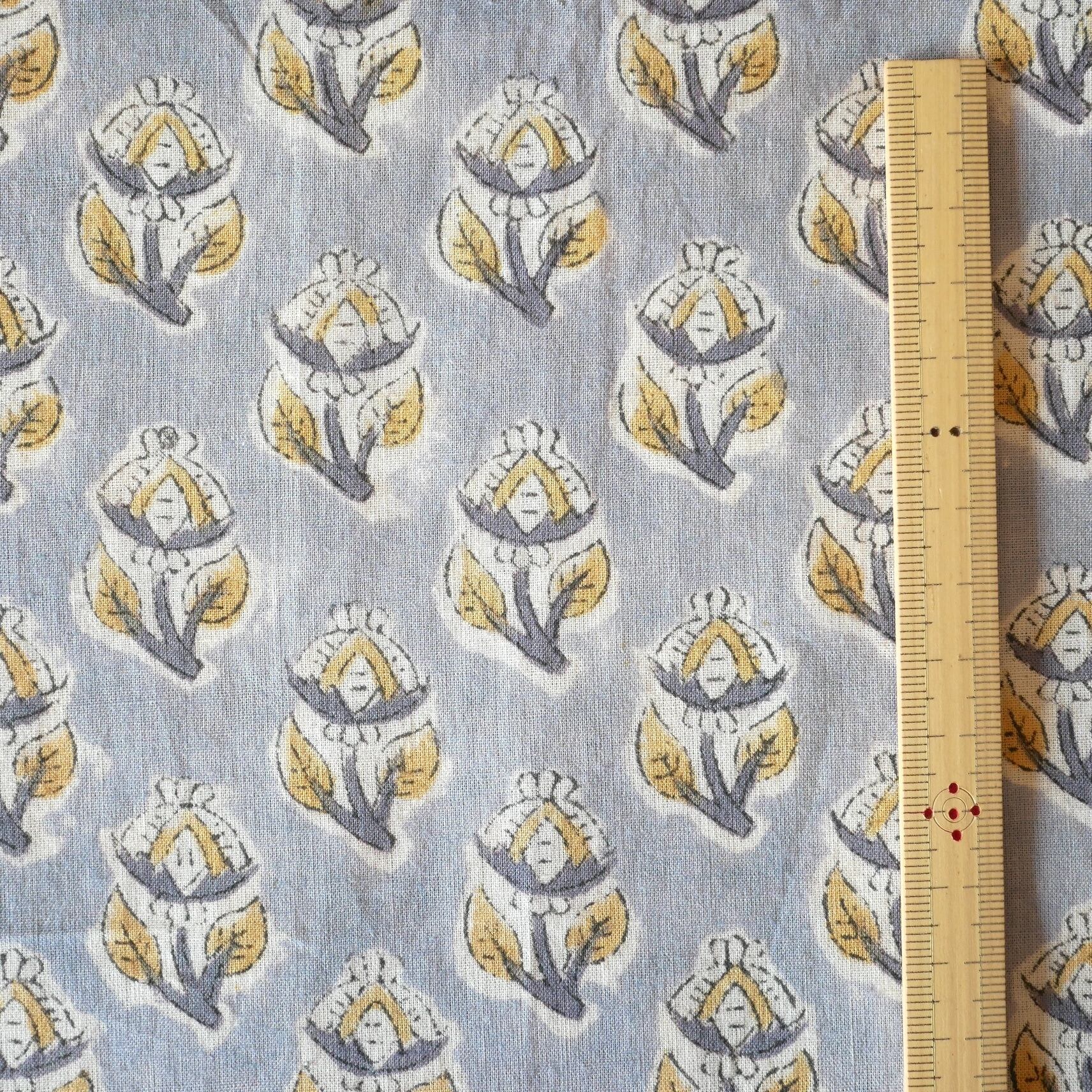 ハンドブロックプリント生地 インド更紗 綿生地 グレーベース×イエロー小花柄 薄手コットン GP-250823