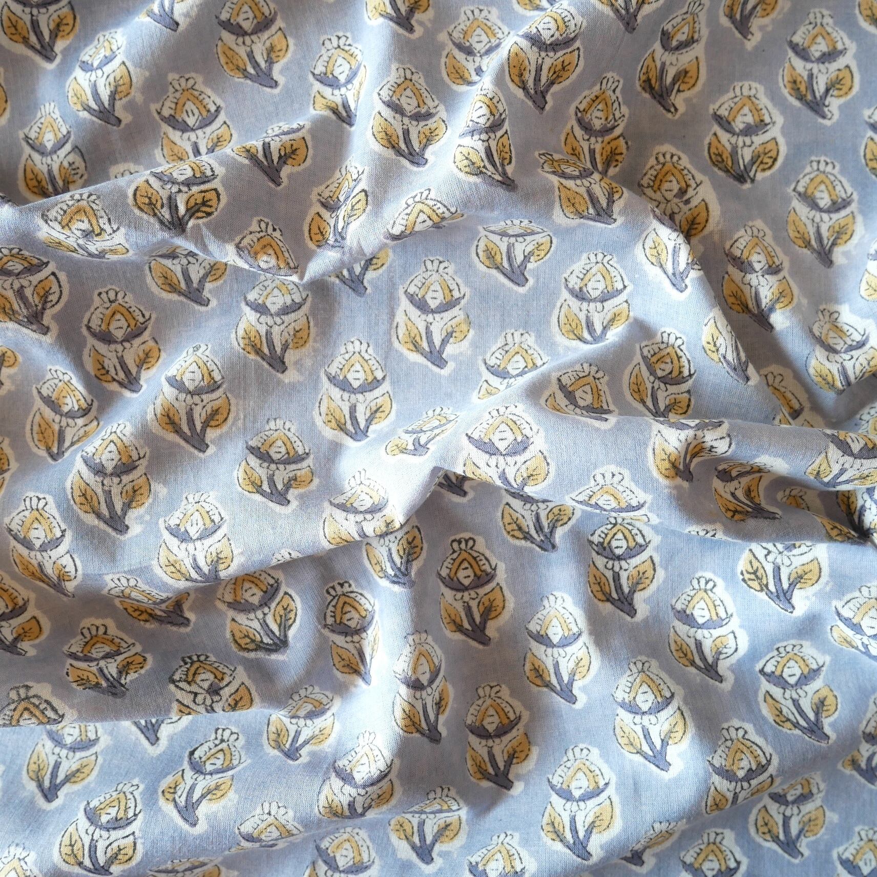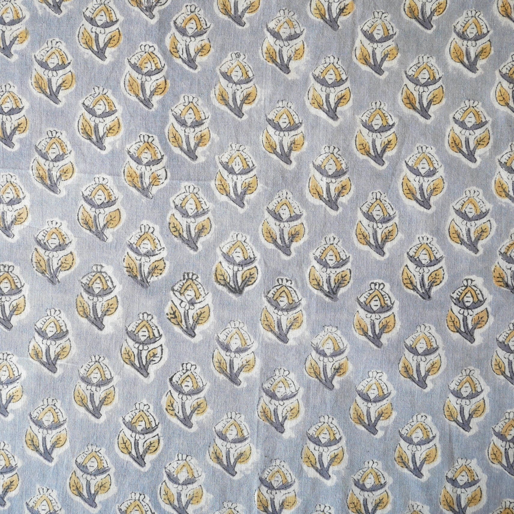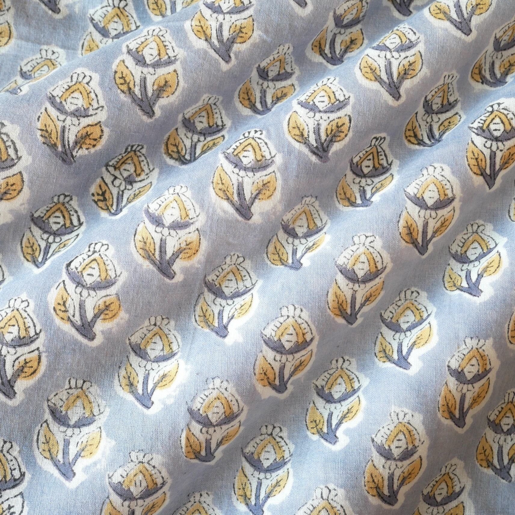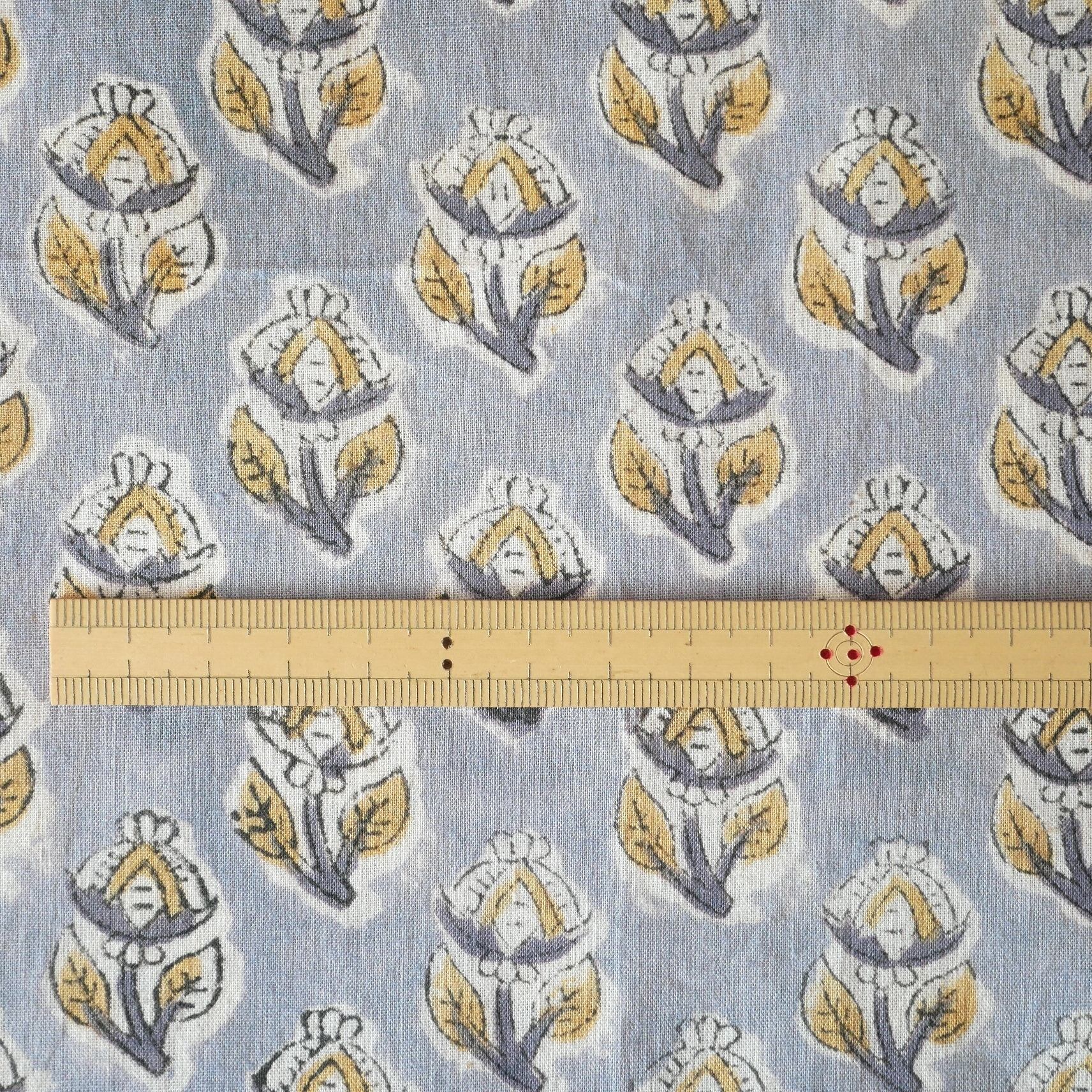 ハンドブロックプリント生地 インド更紗 綿生地 グレーベース×イエロー小花柄 薄手コットン GP-250823