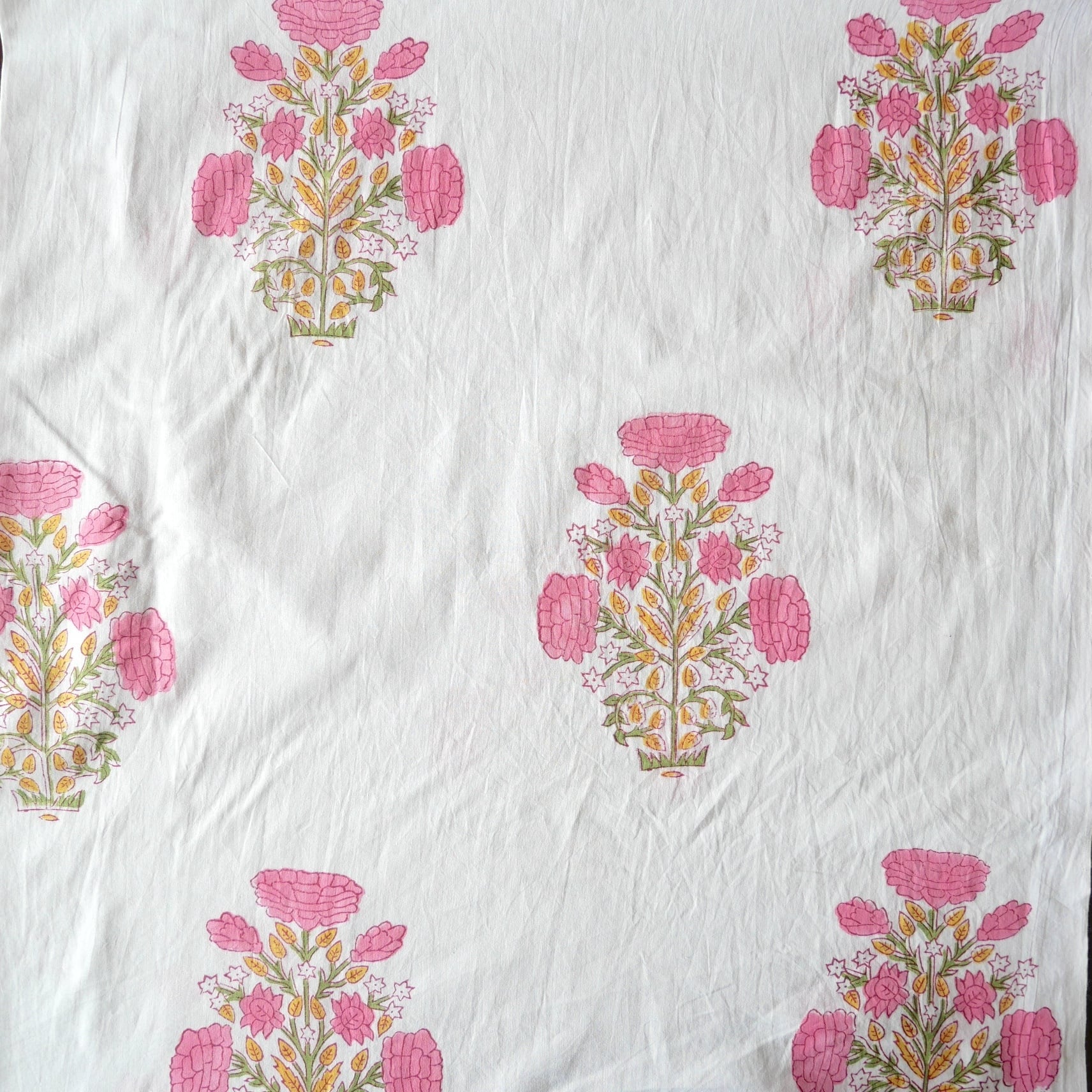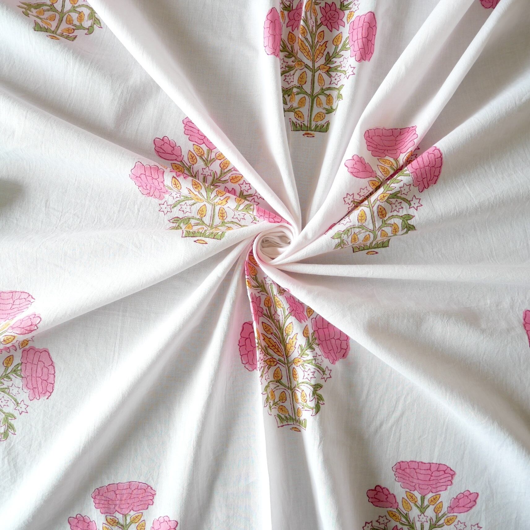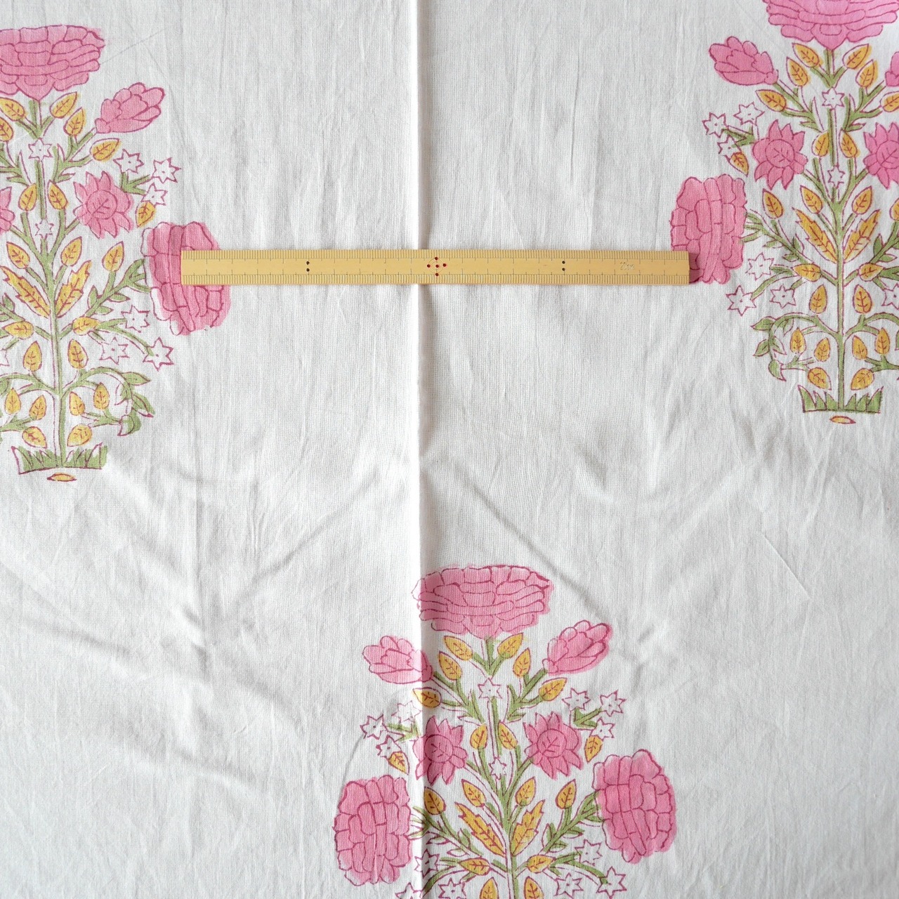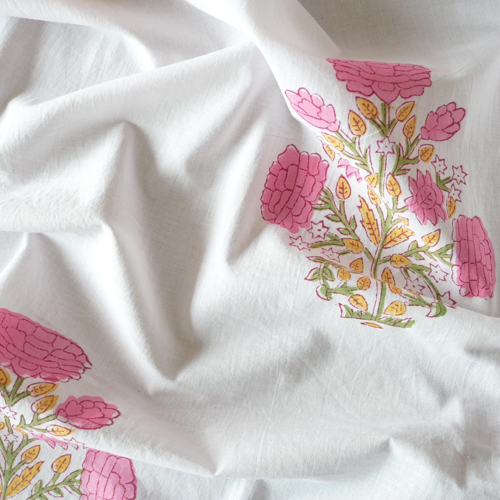 ハンドブロックプリント生地 インド更紗 綿生地 ホワイトベース×ピンクのビッグフラワー 薄手コットン JE-251001
