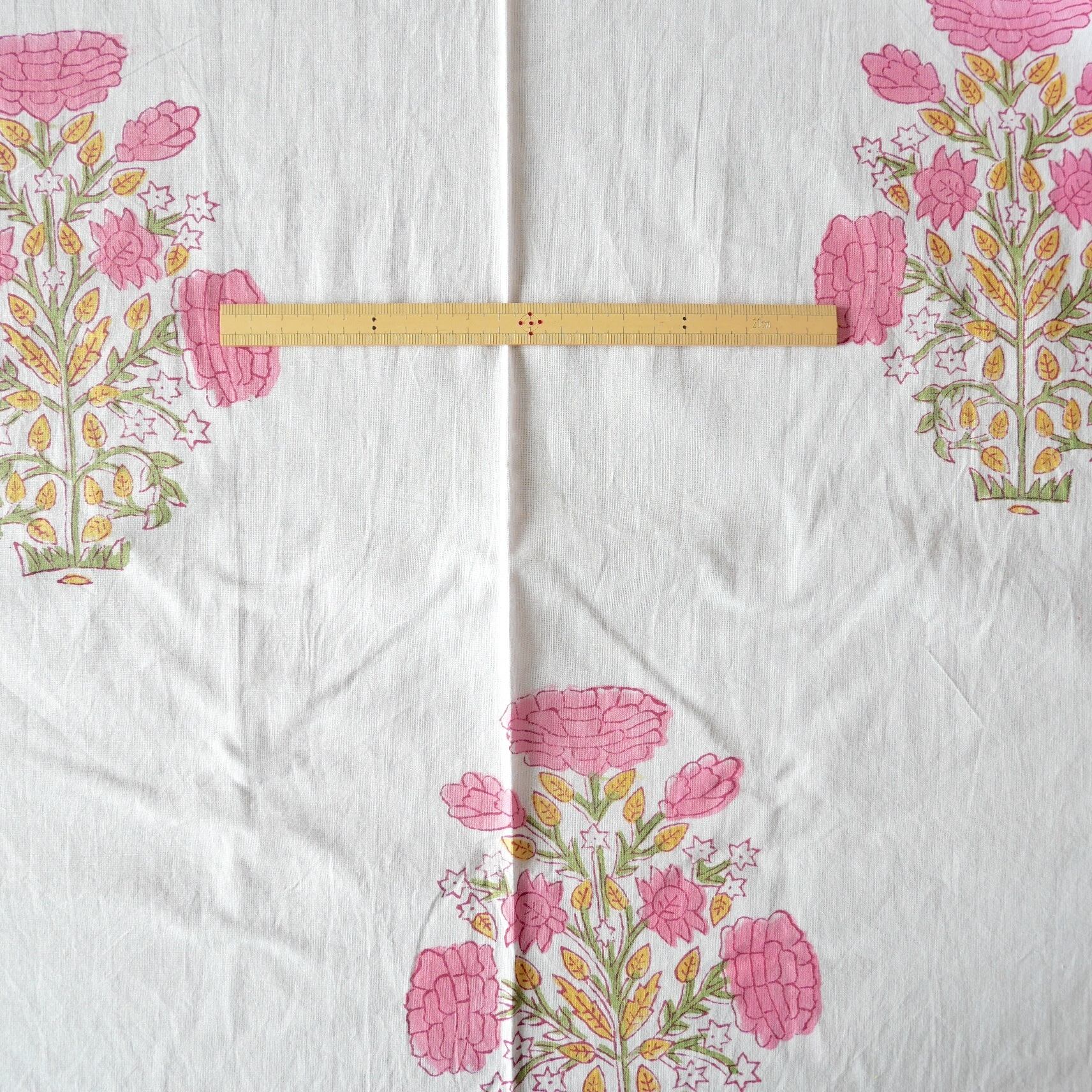 ◾️やさしいピンクの花束に心和む、大きなモチーフが映えるブロックプリント生地