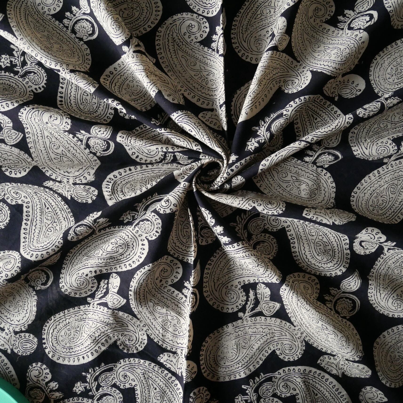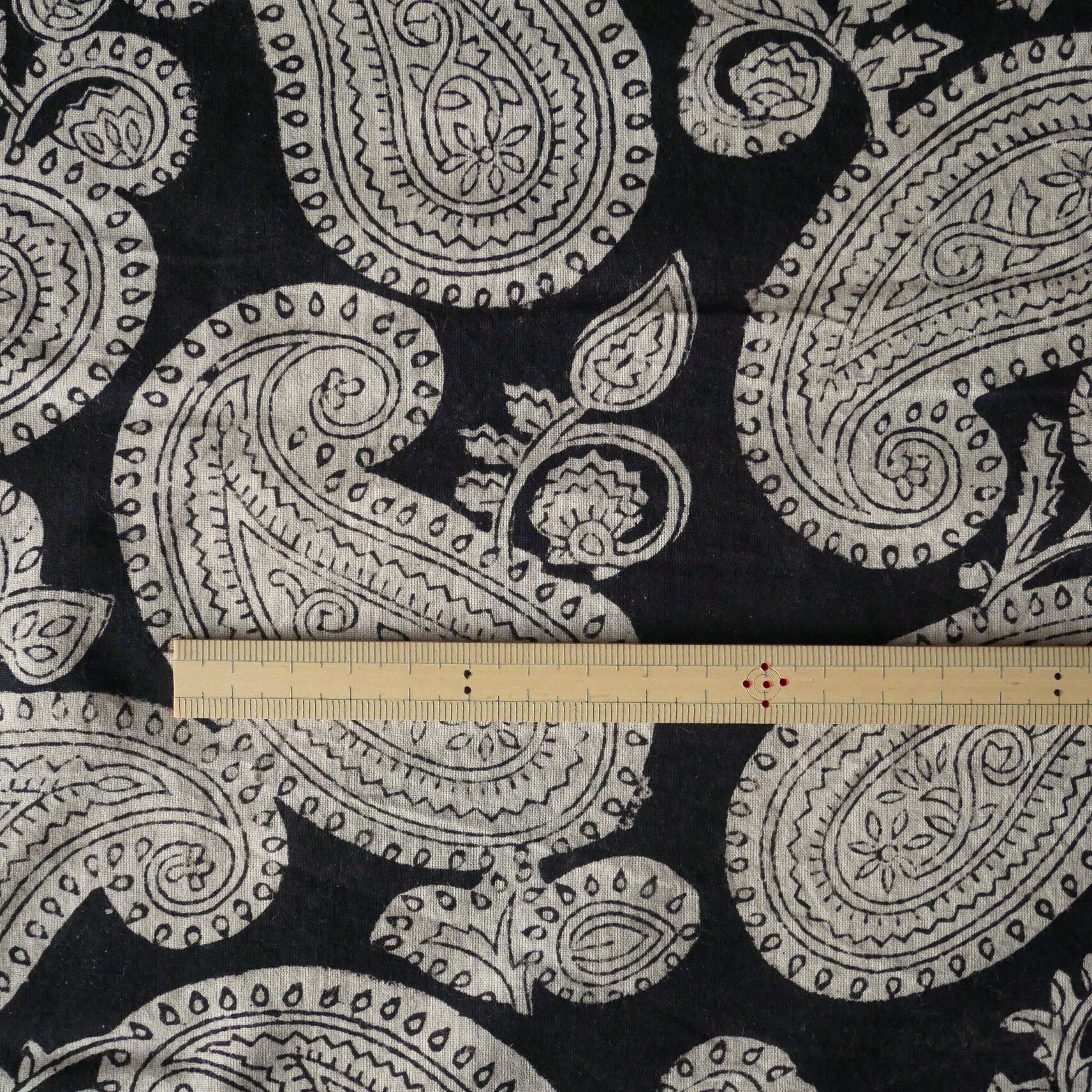 ハンドブロックプリント生地 インド更紗 綿生地 Bagru ブラックベース×ペイズリー 薄手コットン LT-251033