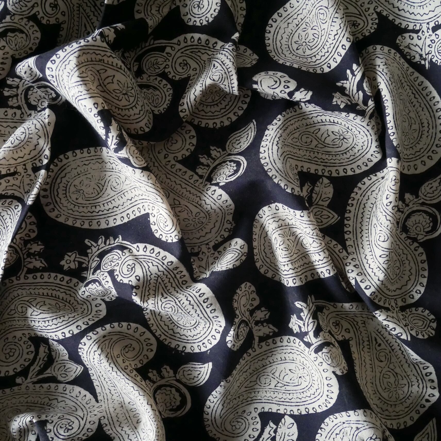 ◾️深い黒に大胆で華やかなペイズリー。上品さと存在感を併せ持つ、Bagru(バグルー)のハンドブロックプリント生地。