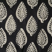 ハンドブロックプリント生地 インド更紗 綿生地 Bagru ブラックベース×リーフモチーフ 薄手コットン JE-251011