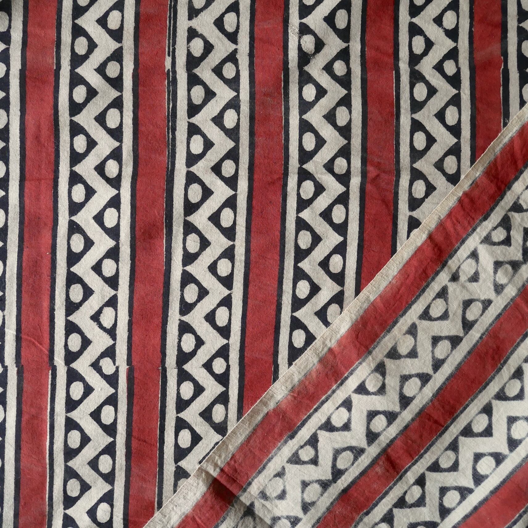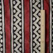 ハンドブロックプリント生地 インド更紗 綿生地 Bagru ジオメトリックストライプ(レッド×ブラック) 薄手コットン LT-251031