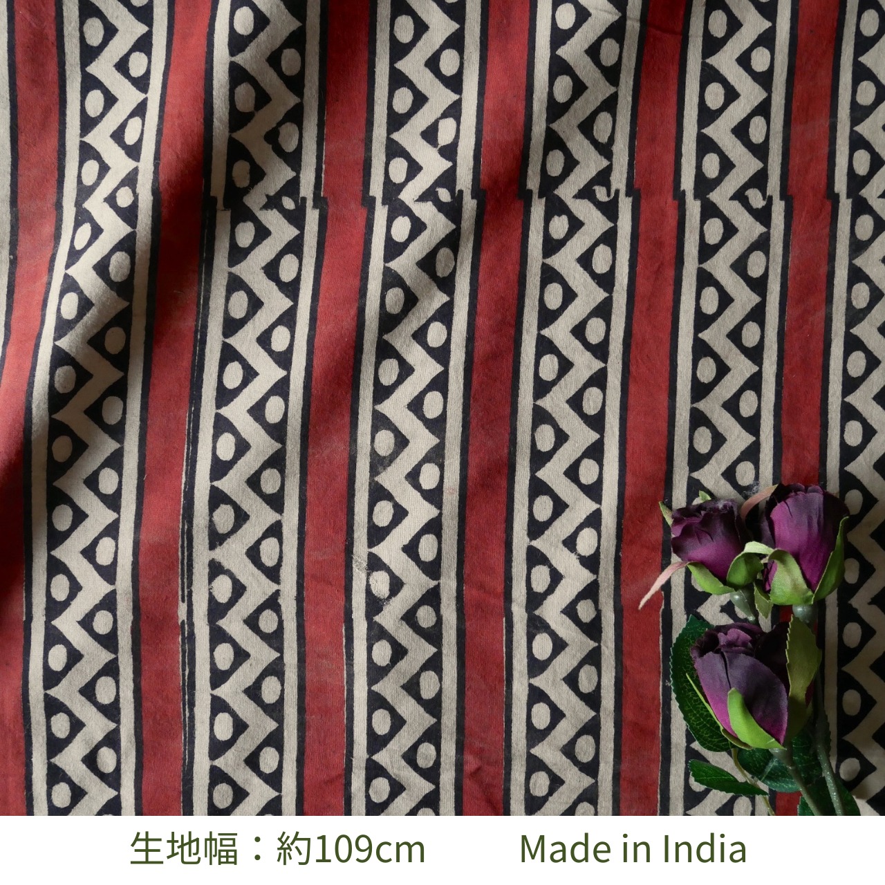 ◾️深みのある赤と黒が織りなす、民族的でモダンなBagru(バグルー)プリント。