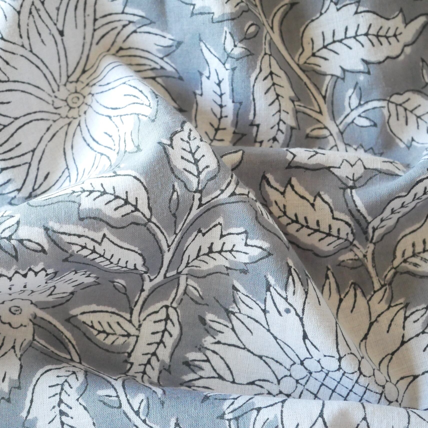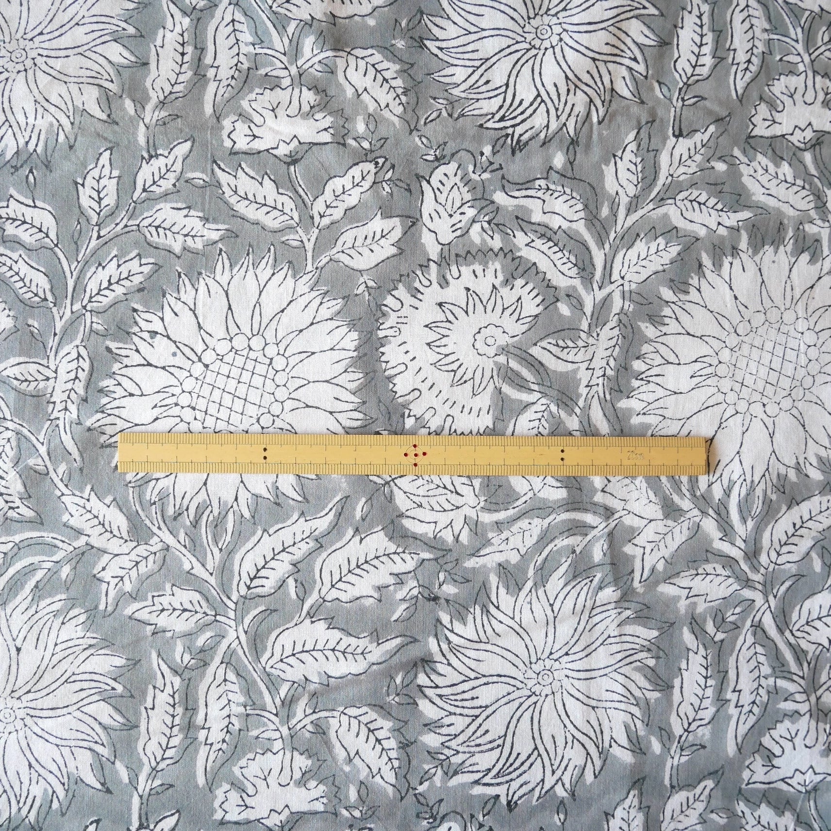 ハンドブロックプリント生地 インド更紗 綿生地 グレーベース×白抜きのボタニカル 薄手コットン LT-251034