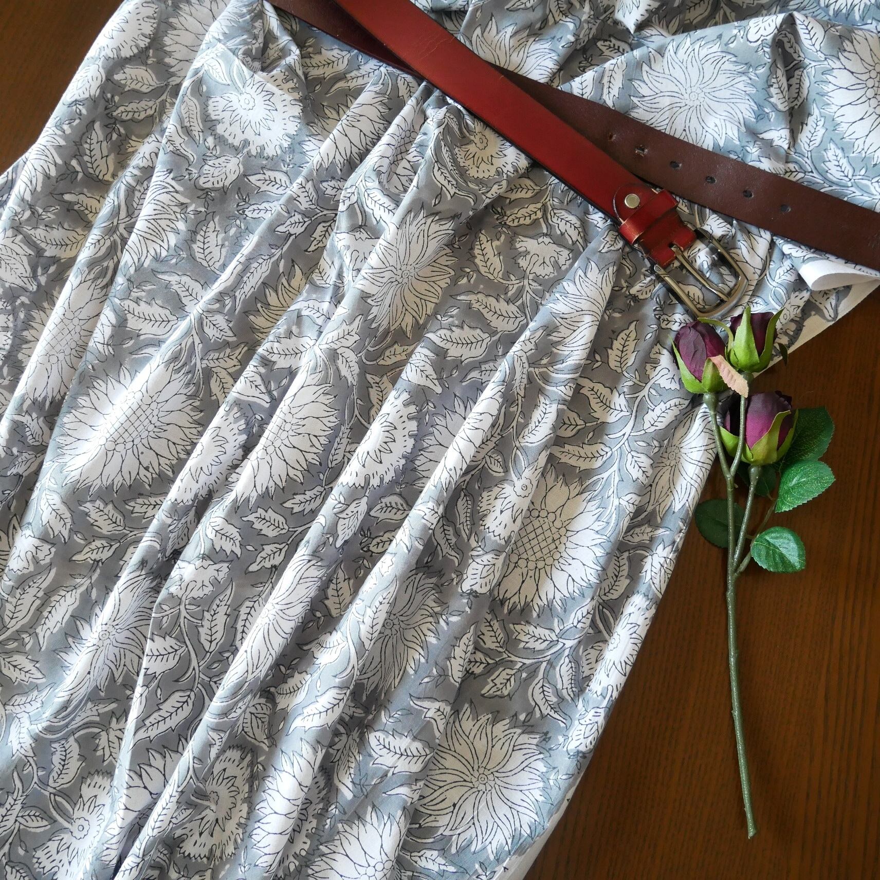 手彫りの木版でひとつひとつ丁寧に押された花模様は、インドの職人による伝統技法によって生まれたもの。
