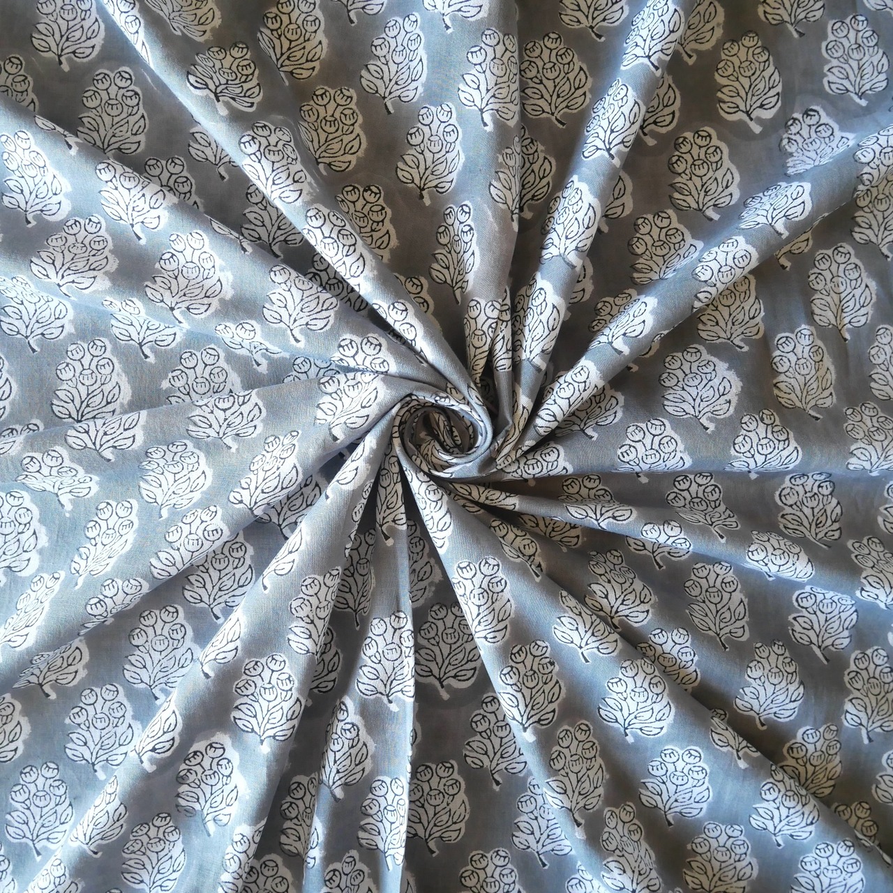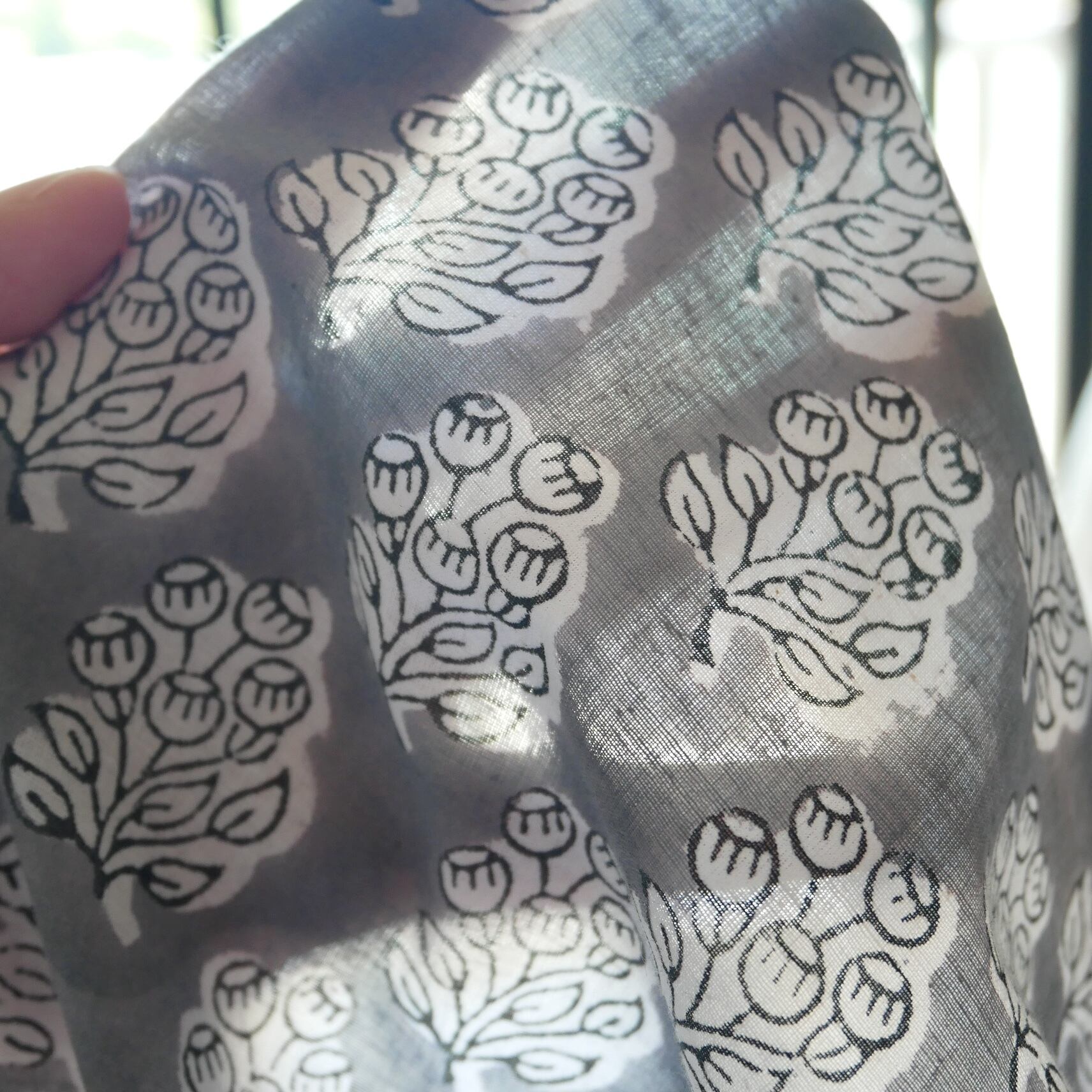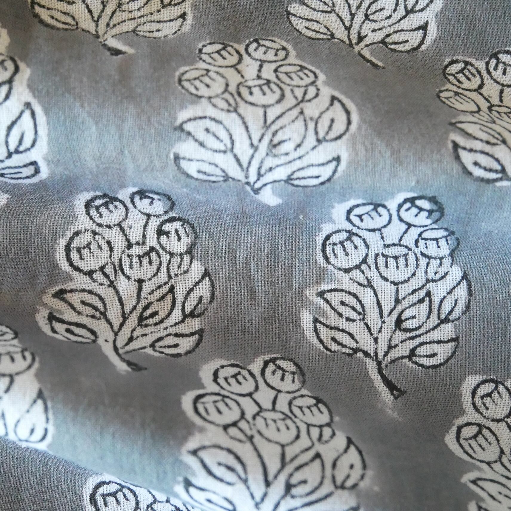 ハンドブロックプリント生地 インド更紗 綿生地 グレーベース×白抜きの小花柄 小花模様 薄手コットン LT-251035