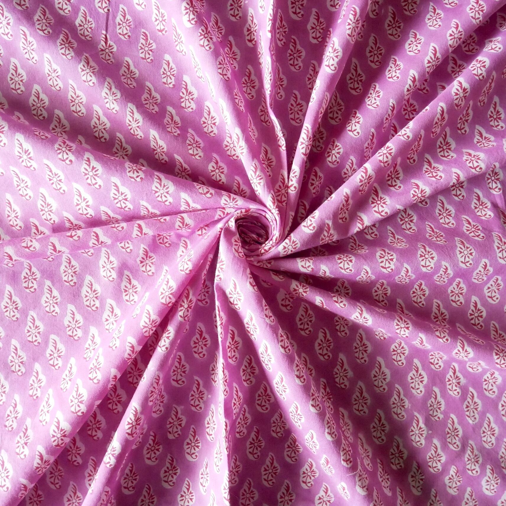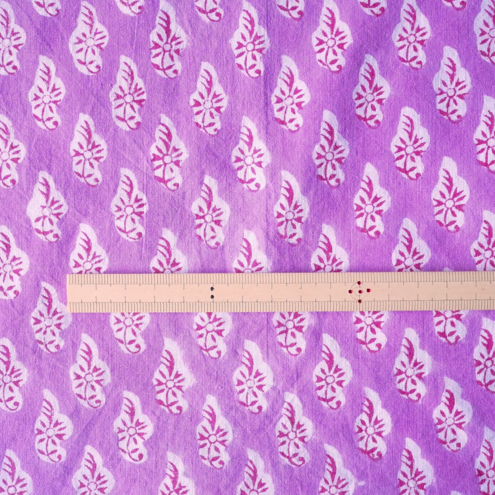 ハンドブロックプリント生地 インド更紗 綿生地 ラベンダーベース×小花模様 Lavender Whisper 薄手コットン GP-251104