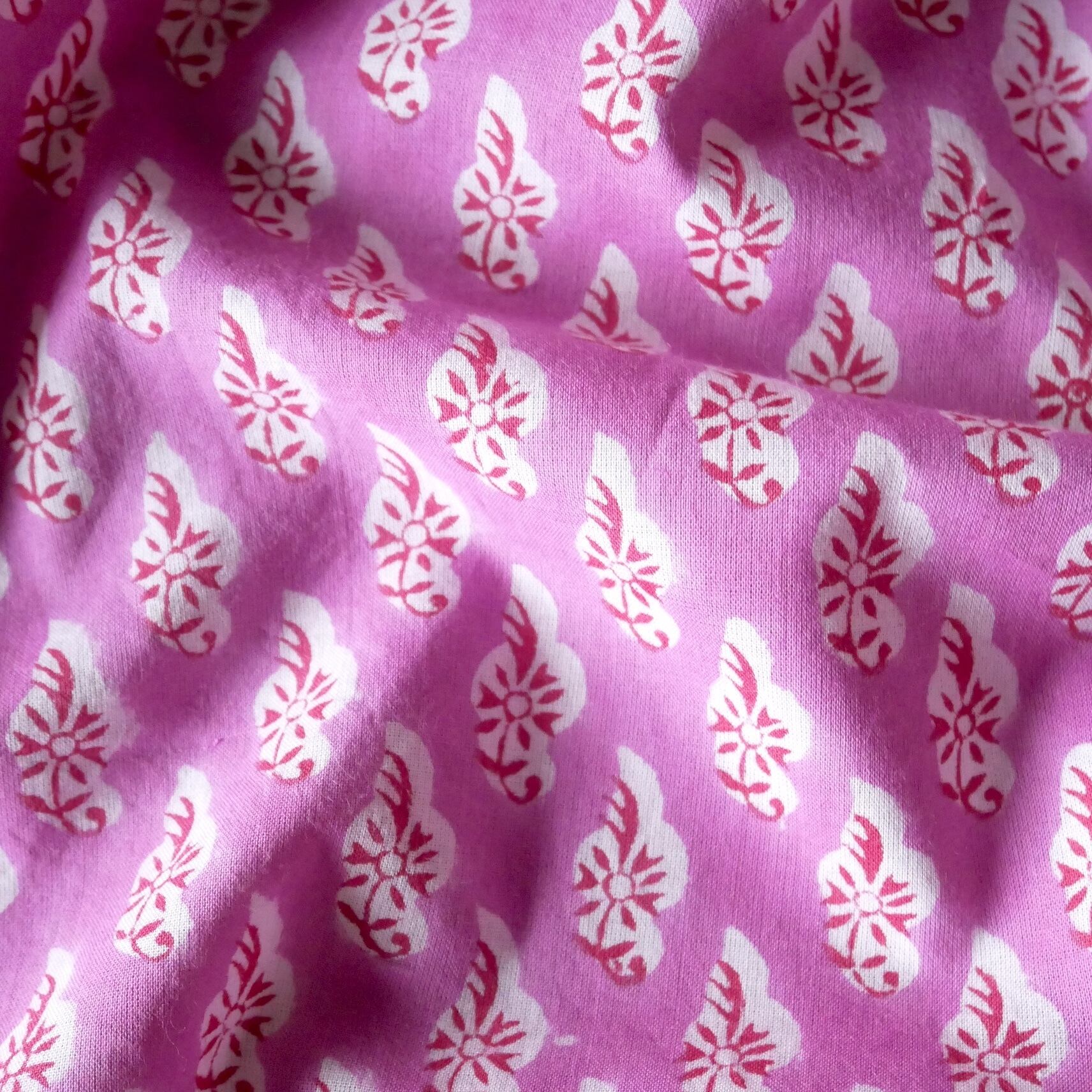 ◾️やさしいラベンダーに包まれる、静かな華やかさ。インドのハンドブロックプリント生地