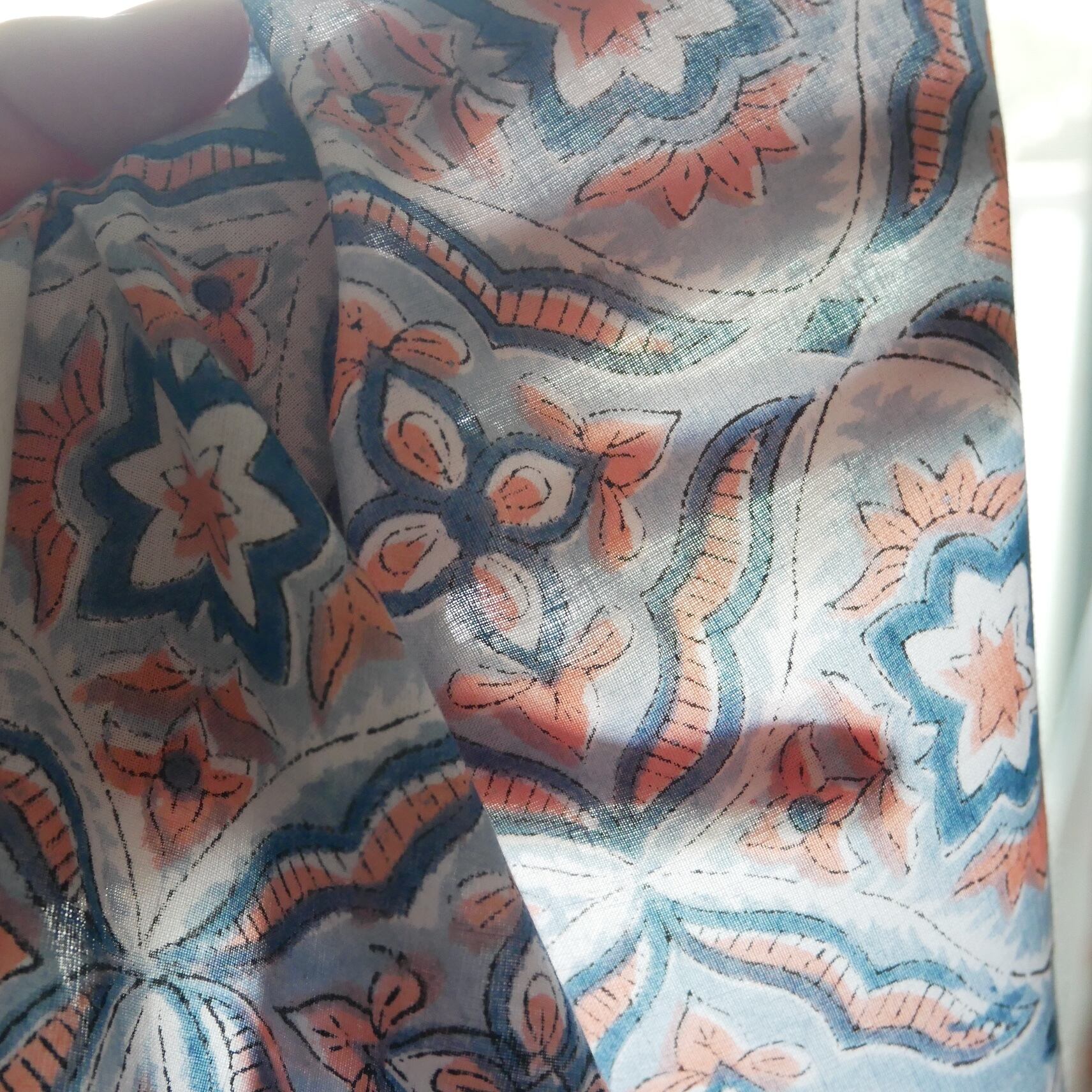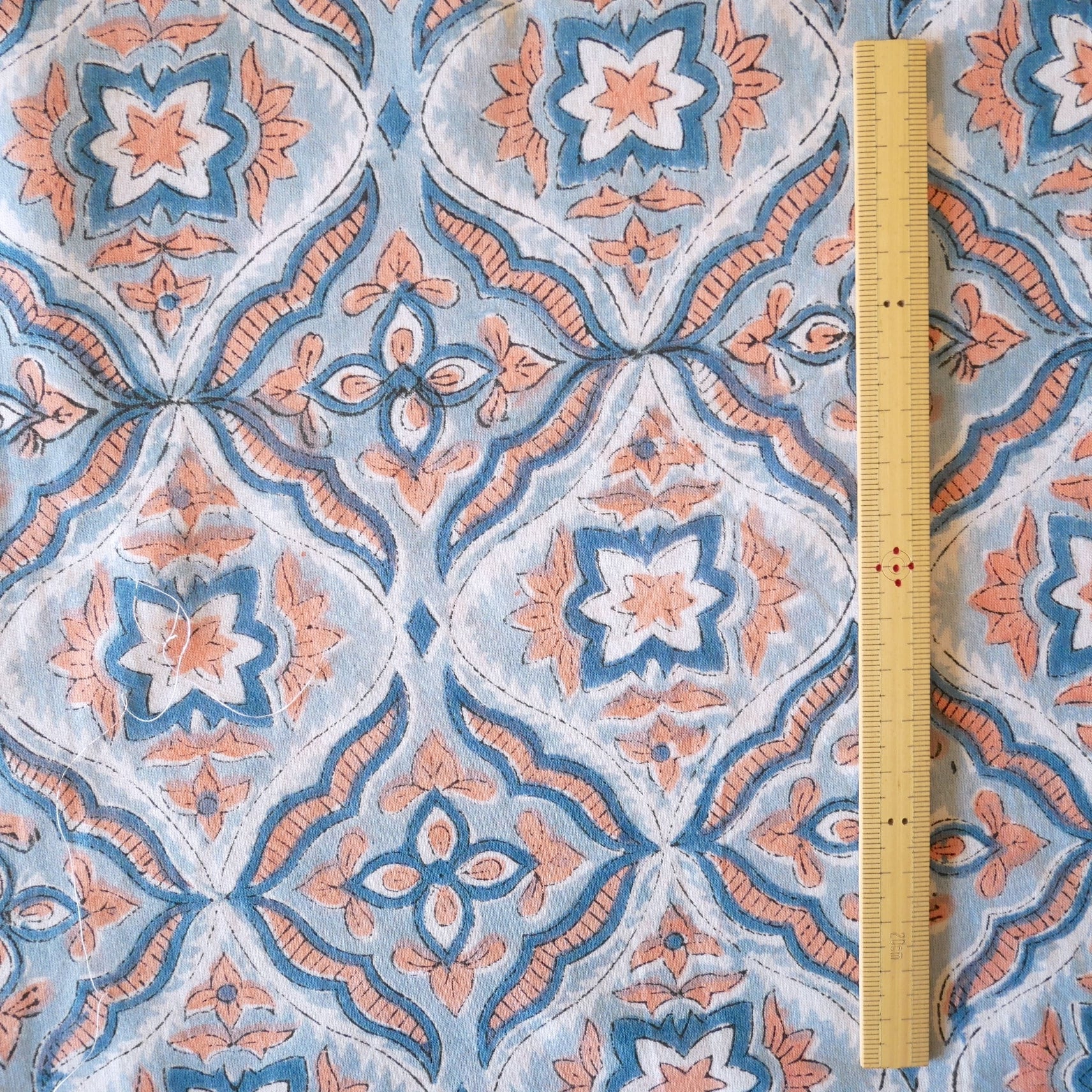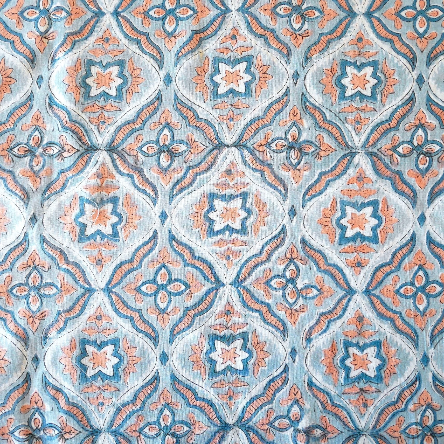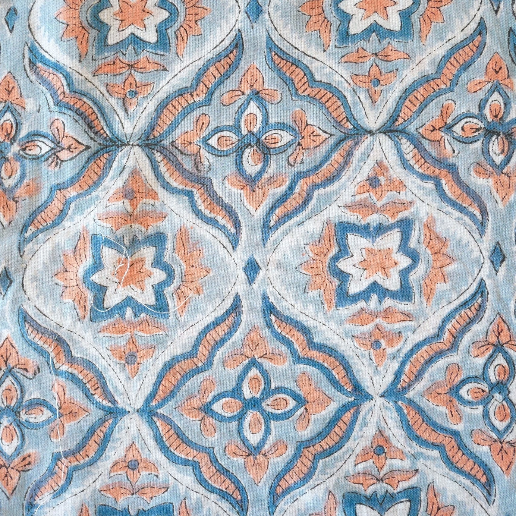 ◾️ライトブルー×コーラルが織りなす、やさしく爽やかなハンドブロックプリント生地