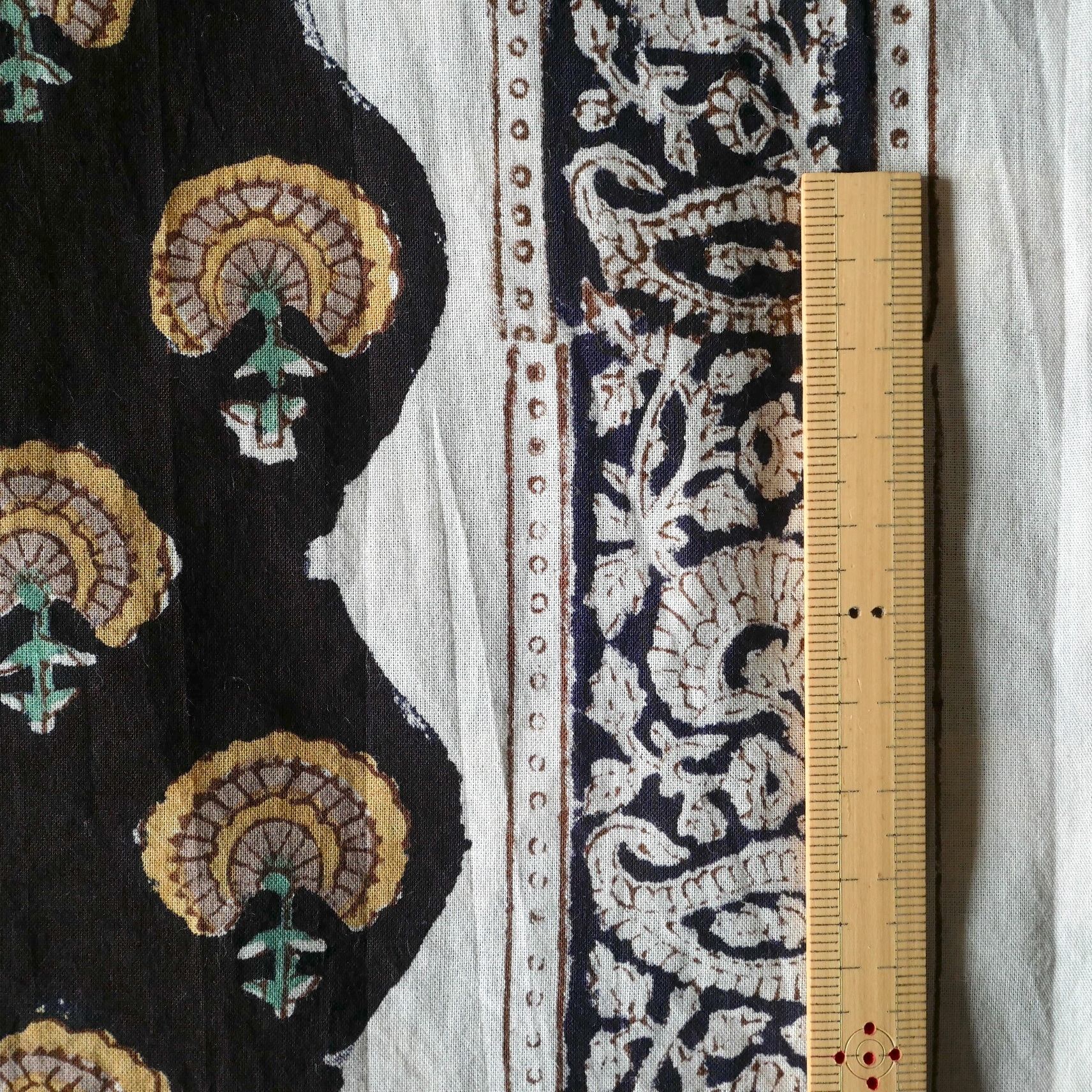 ハンドブロックプリント生地 インド更紗 綿生地 ブラックベース×ベイクドカラーの小花柄 片耳ボーダー 薄手コットン JE-251113