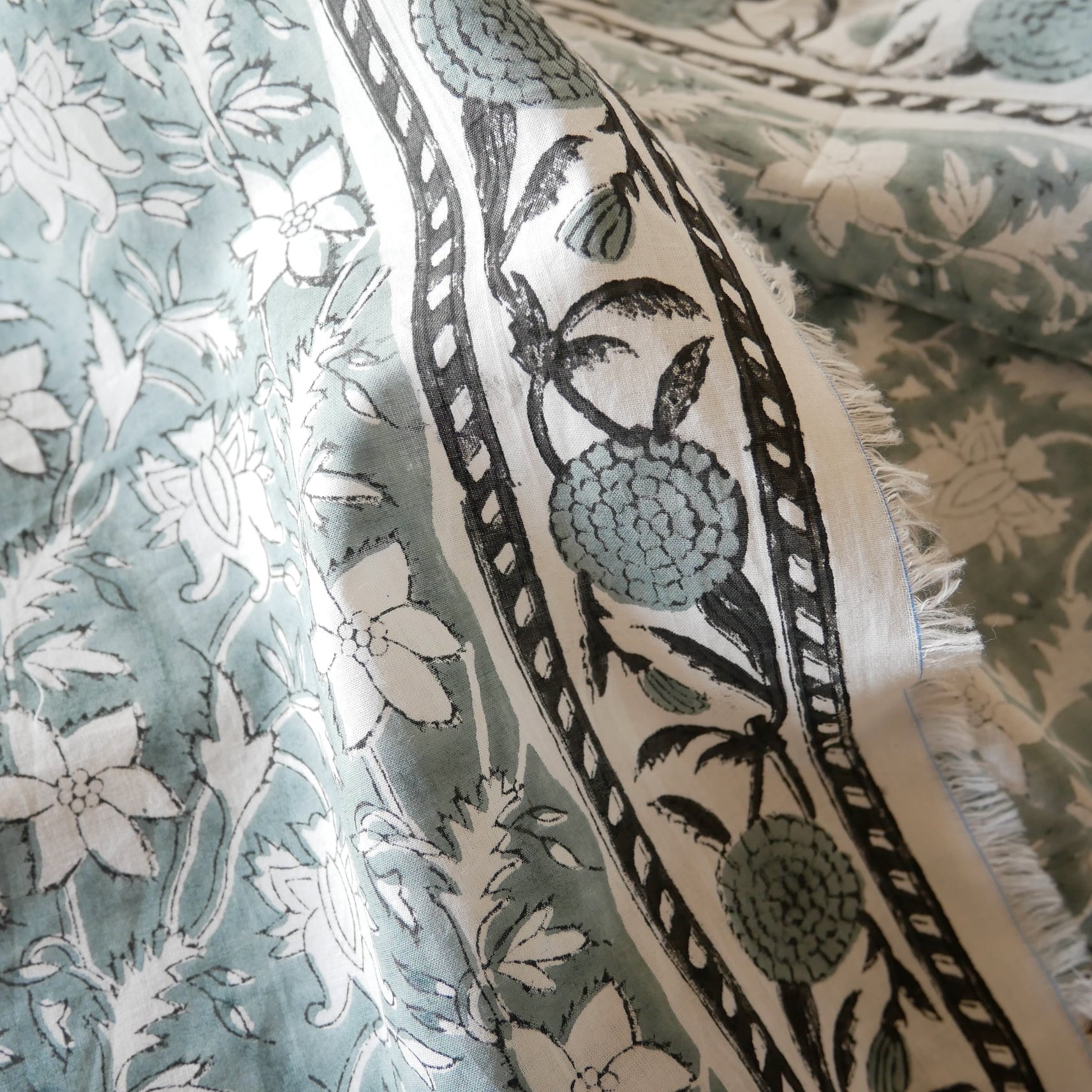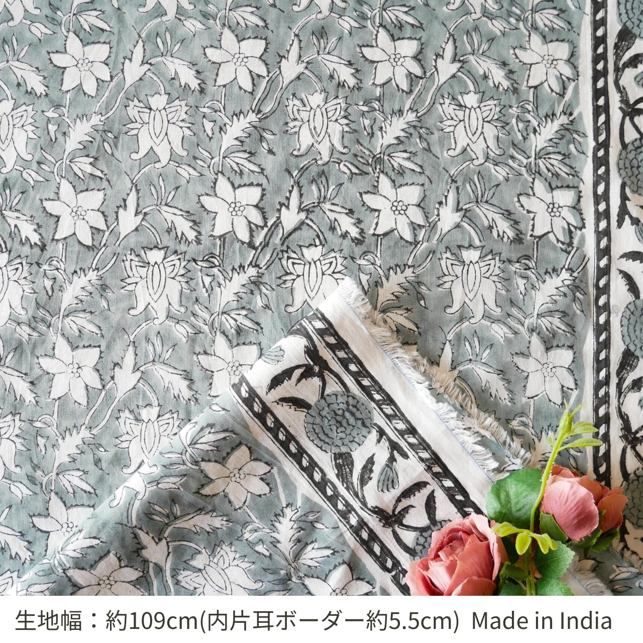 ・ハンドブロックプリント特有のにじみやズレ、かすれや色ムラが見られることがあります。手仕事ならではの表情としてお楽しみいただけますと幸いです。