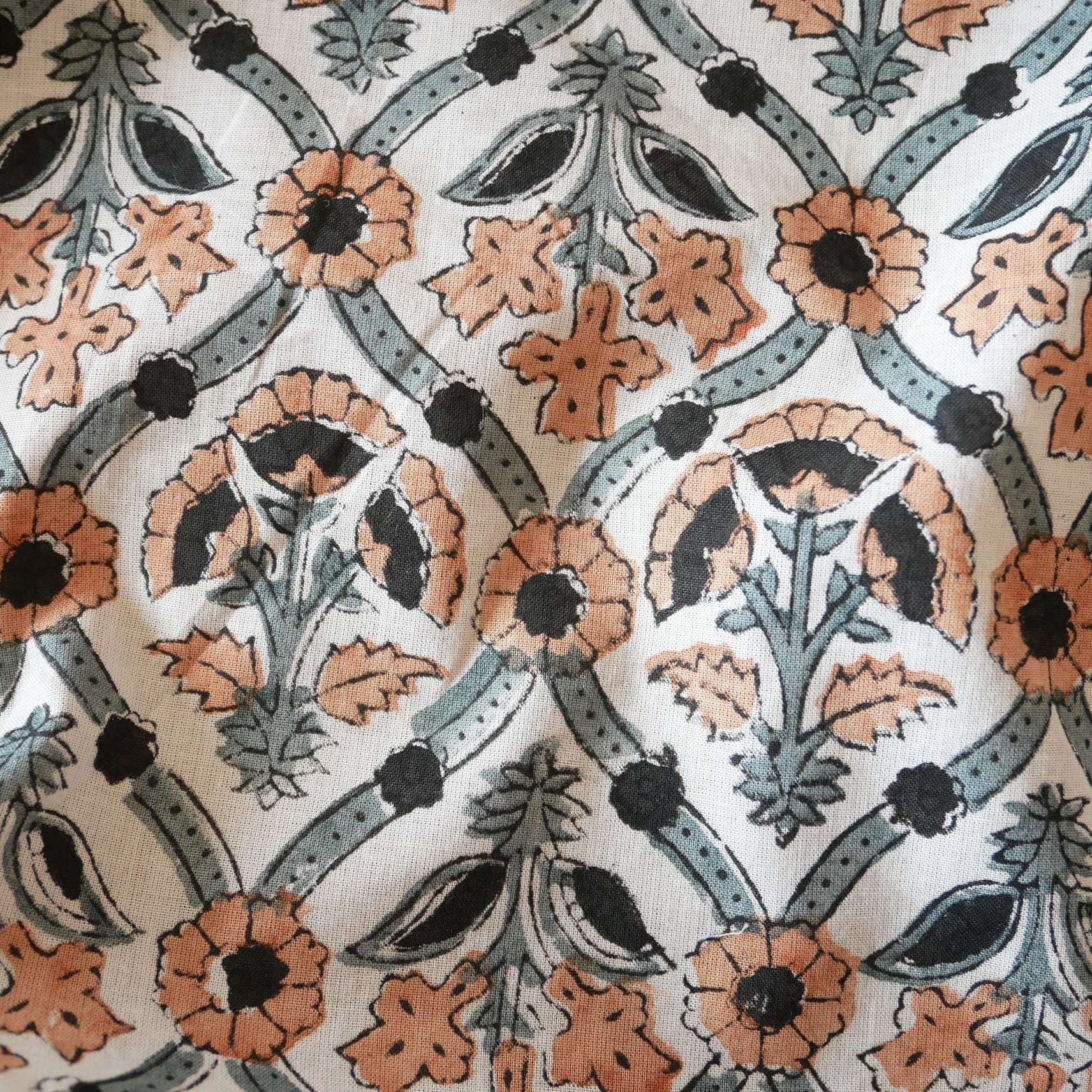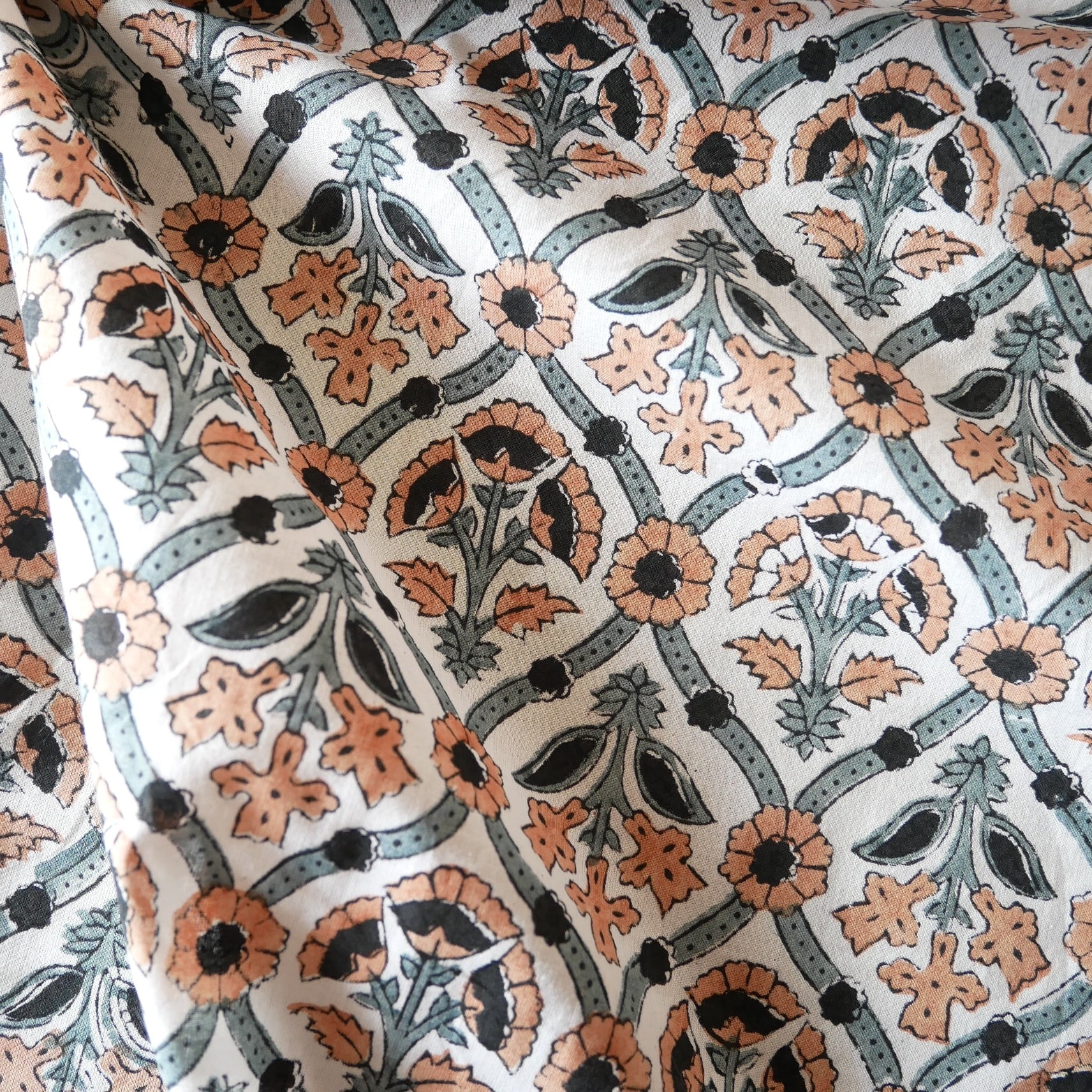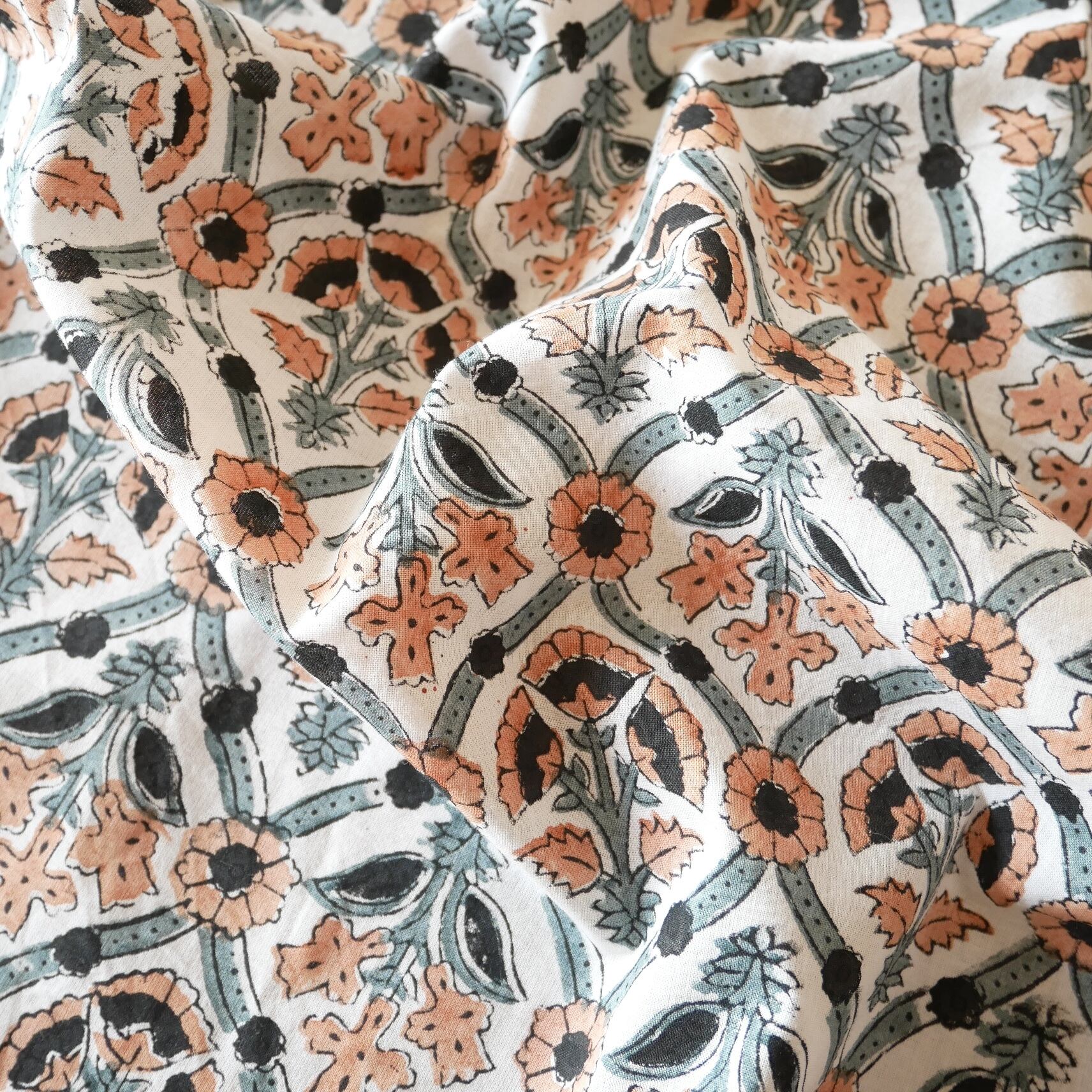 ◾️異国の空気をまとった、品のあるフラワーパターン。インドのハンドブロックプリント生地