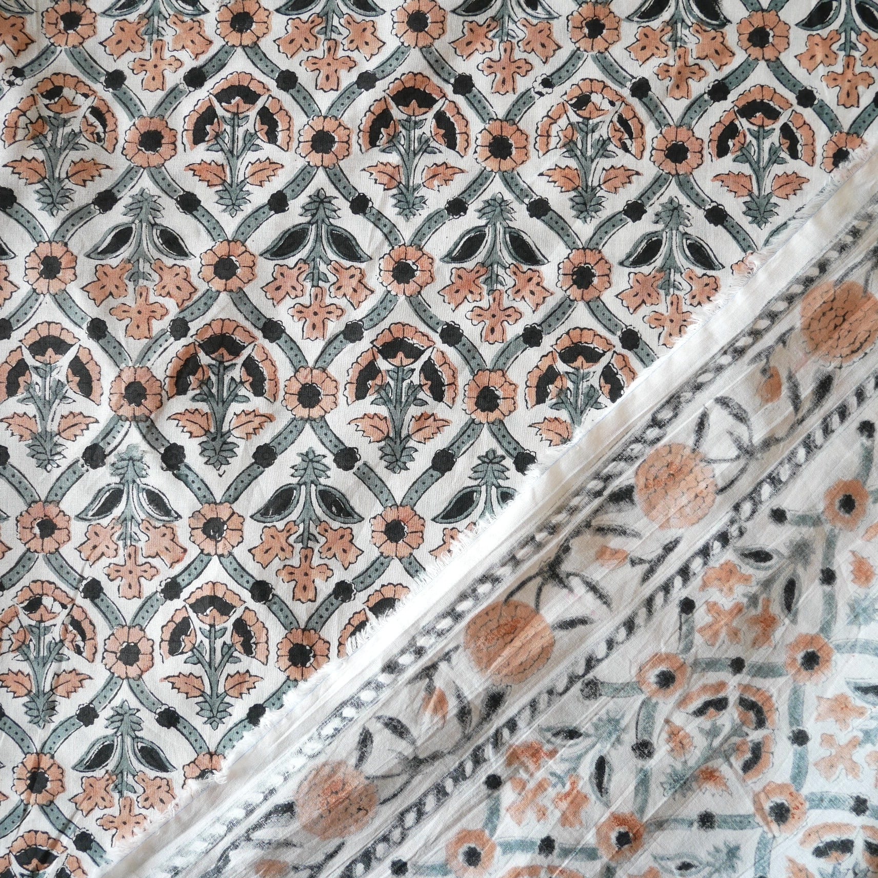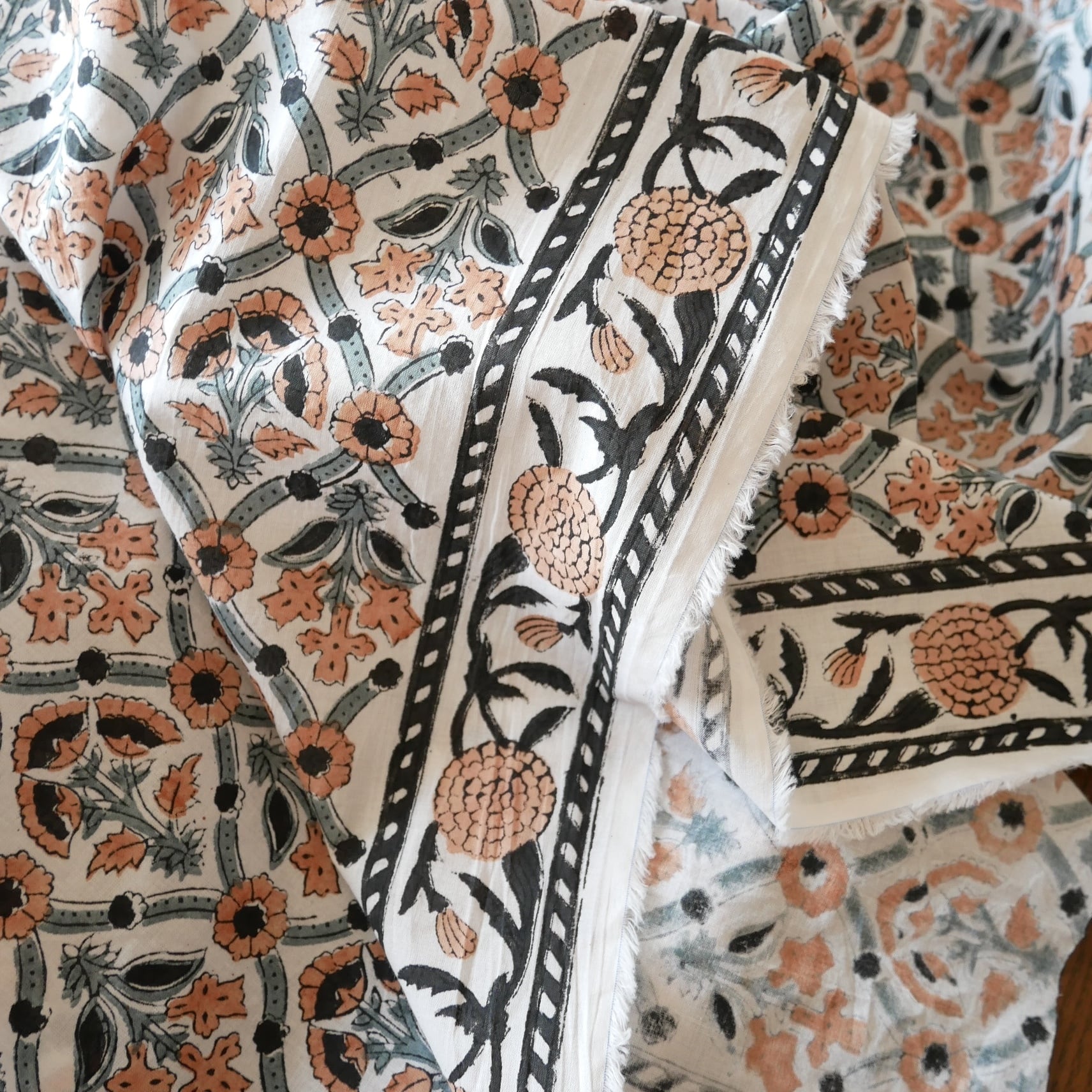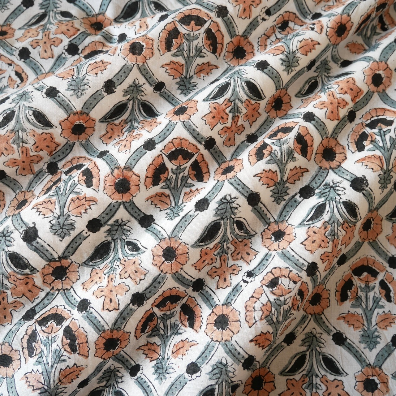 ◾️異国の空気をまとった、品のあるフラワーパターン。インドのハンドブロックプリント生地