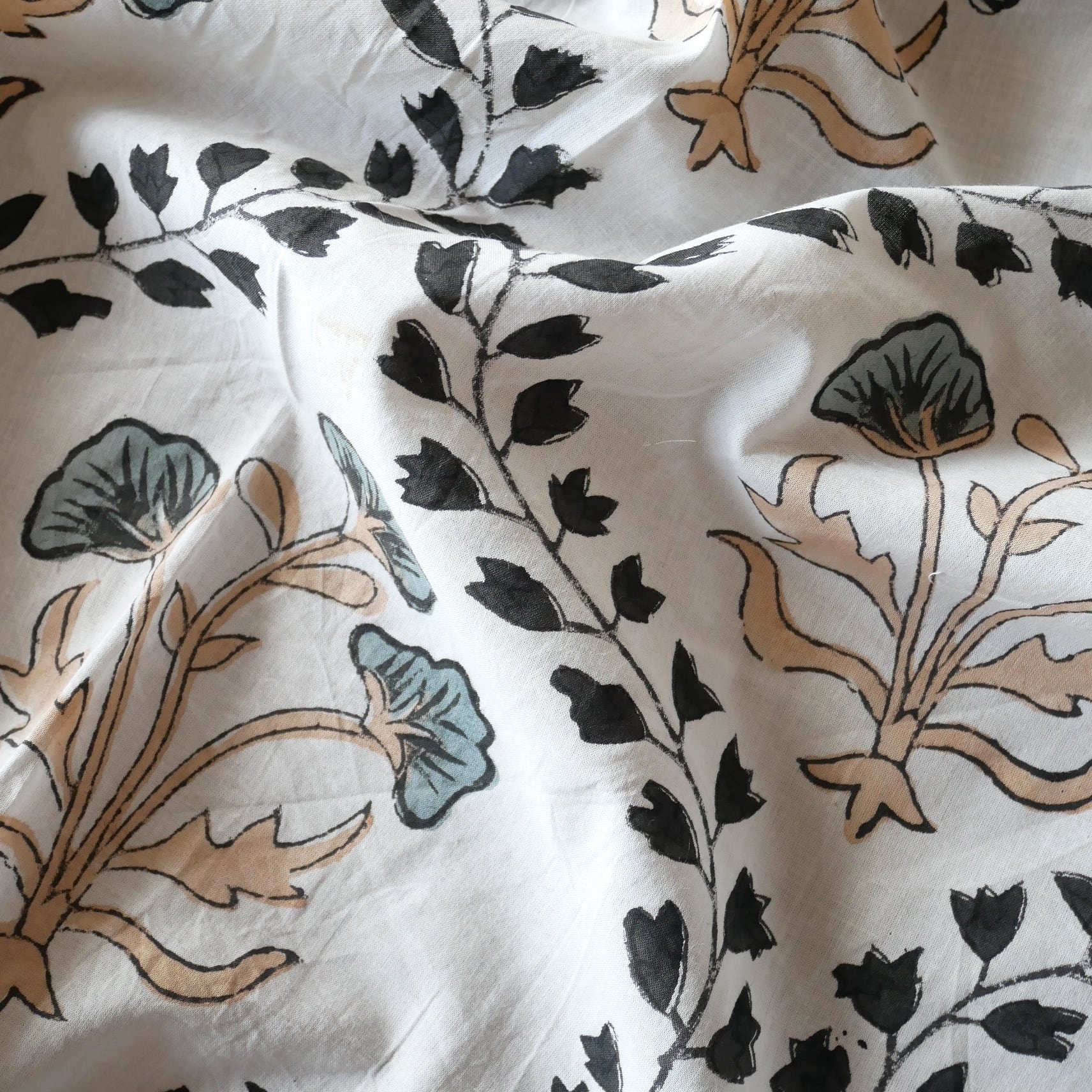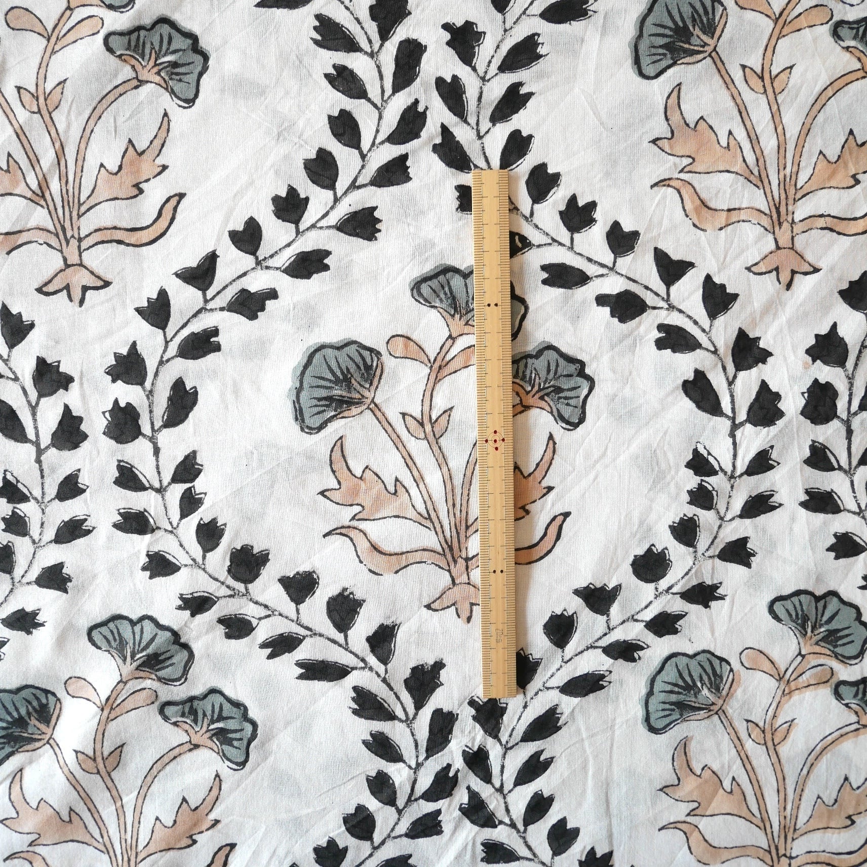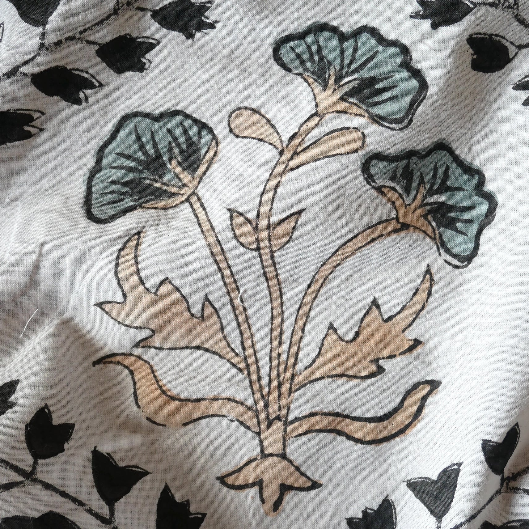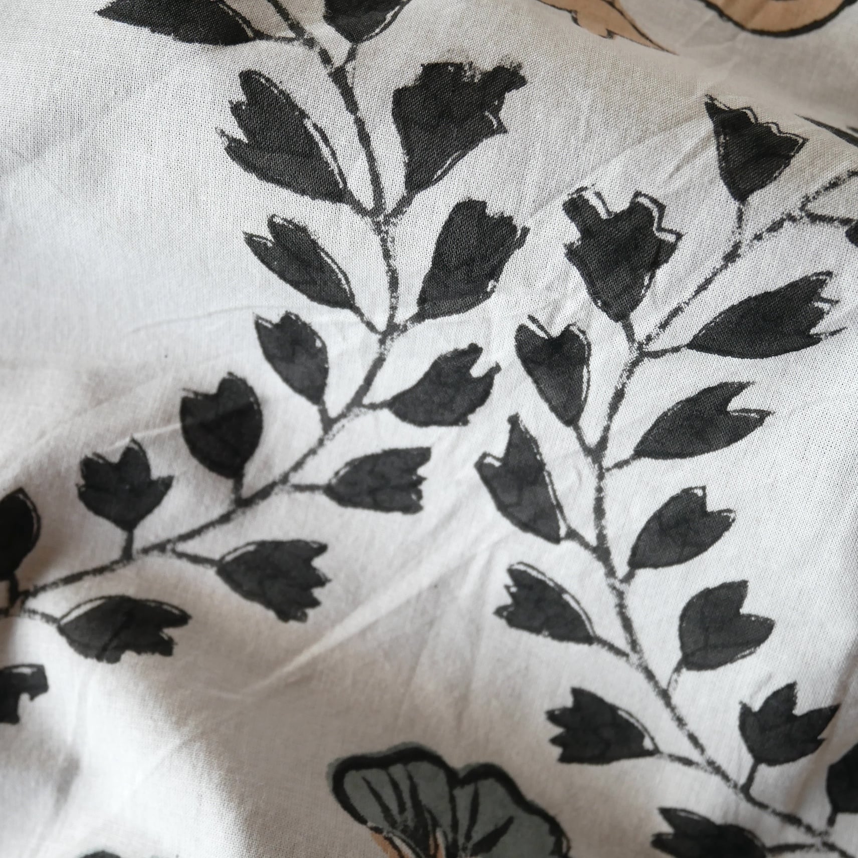 ◾️大胆なのに、不思議と落ち着く一枚。インドのハンドブロックプリント生地