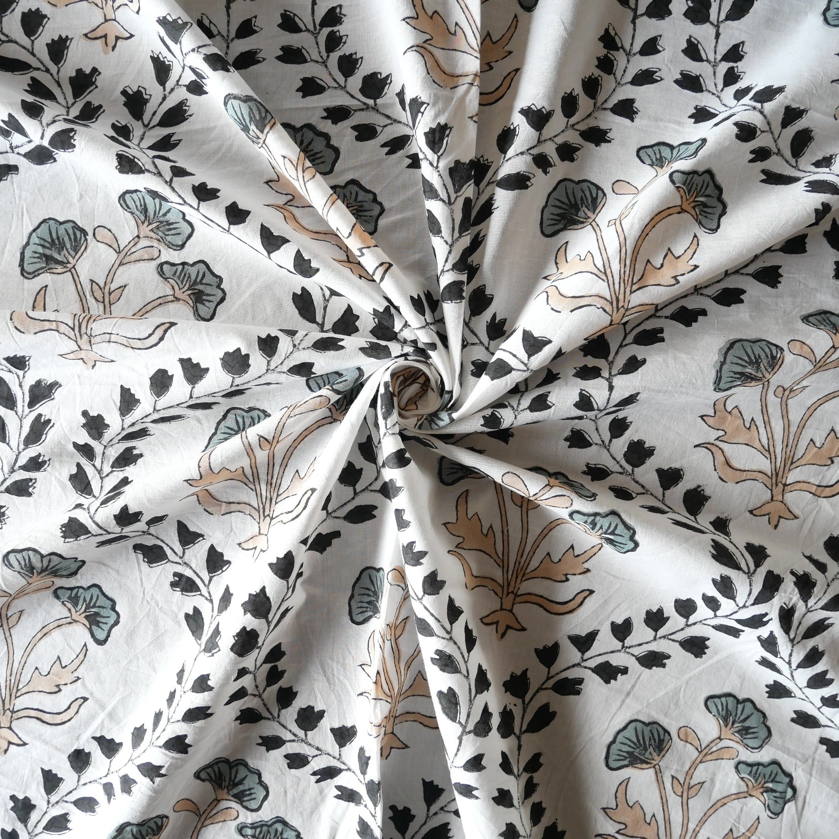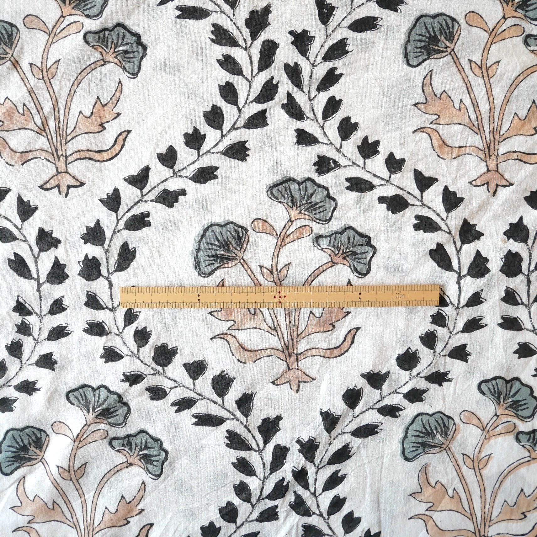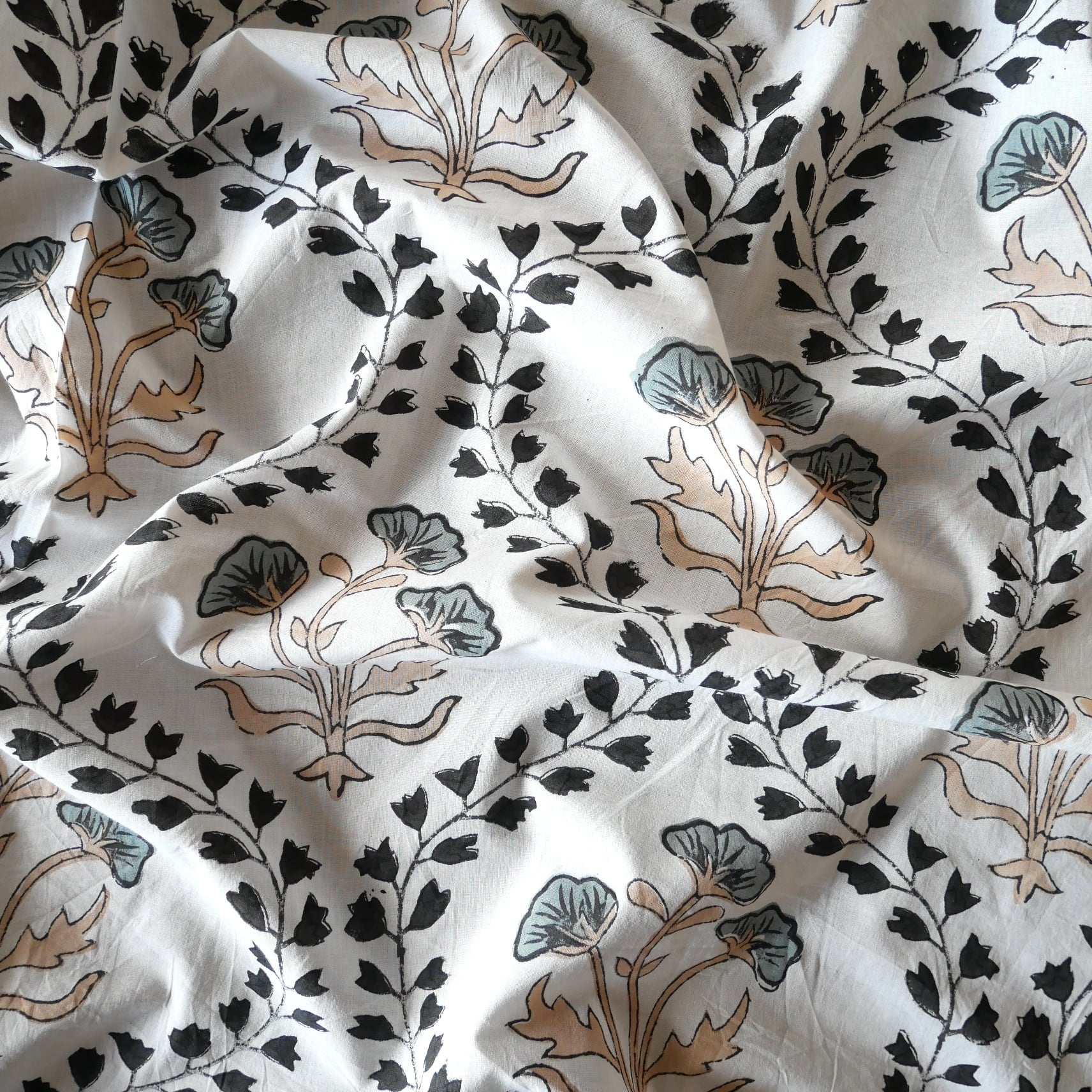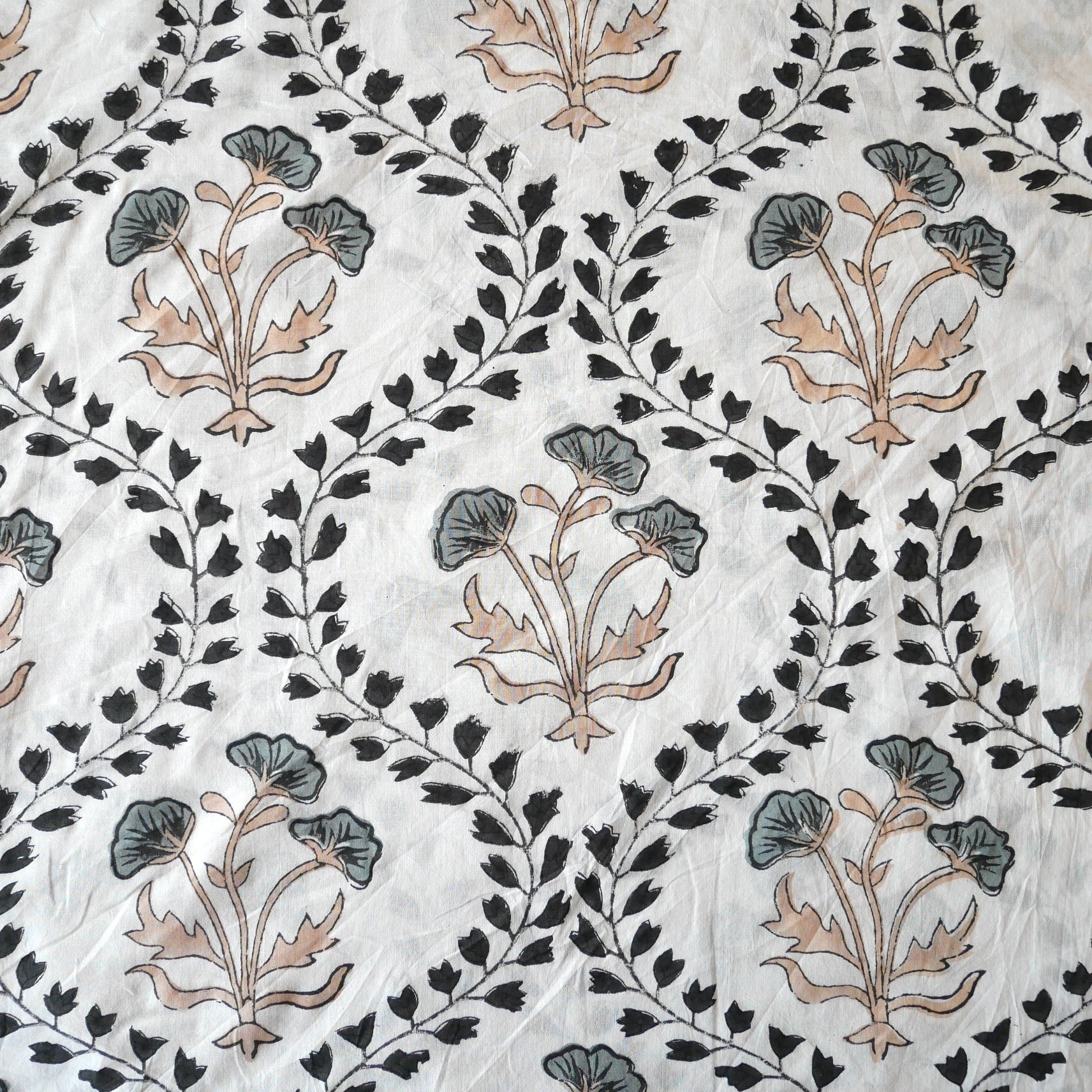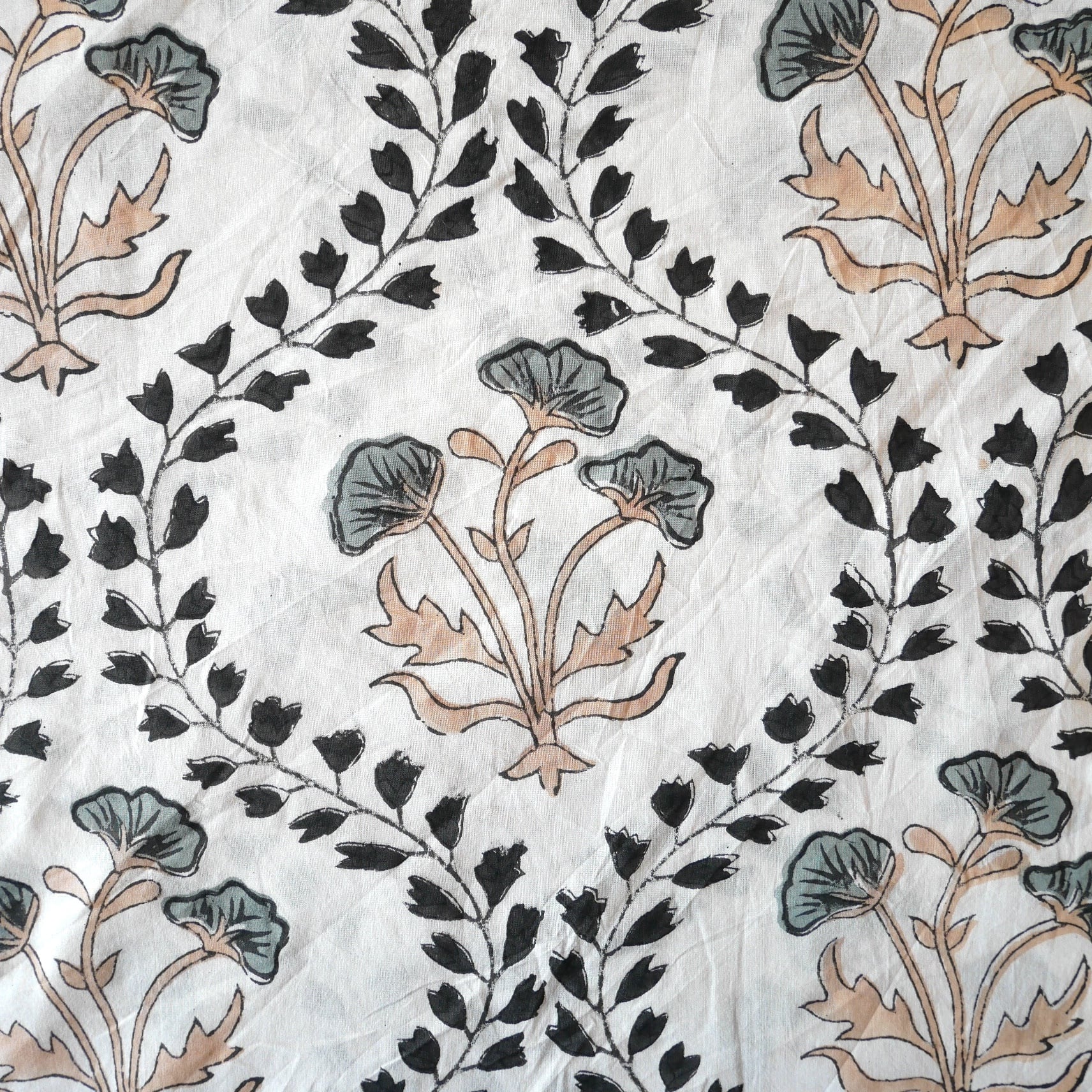 ◾️大胆なのに、不思議と落ち着く一枚。インドのハンドブロックプリント生地