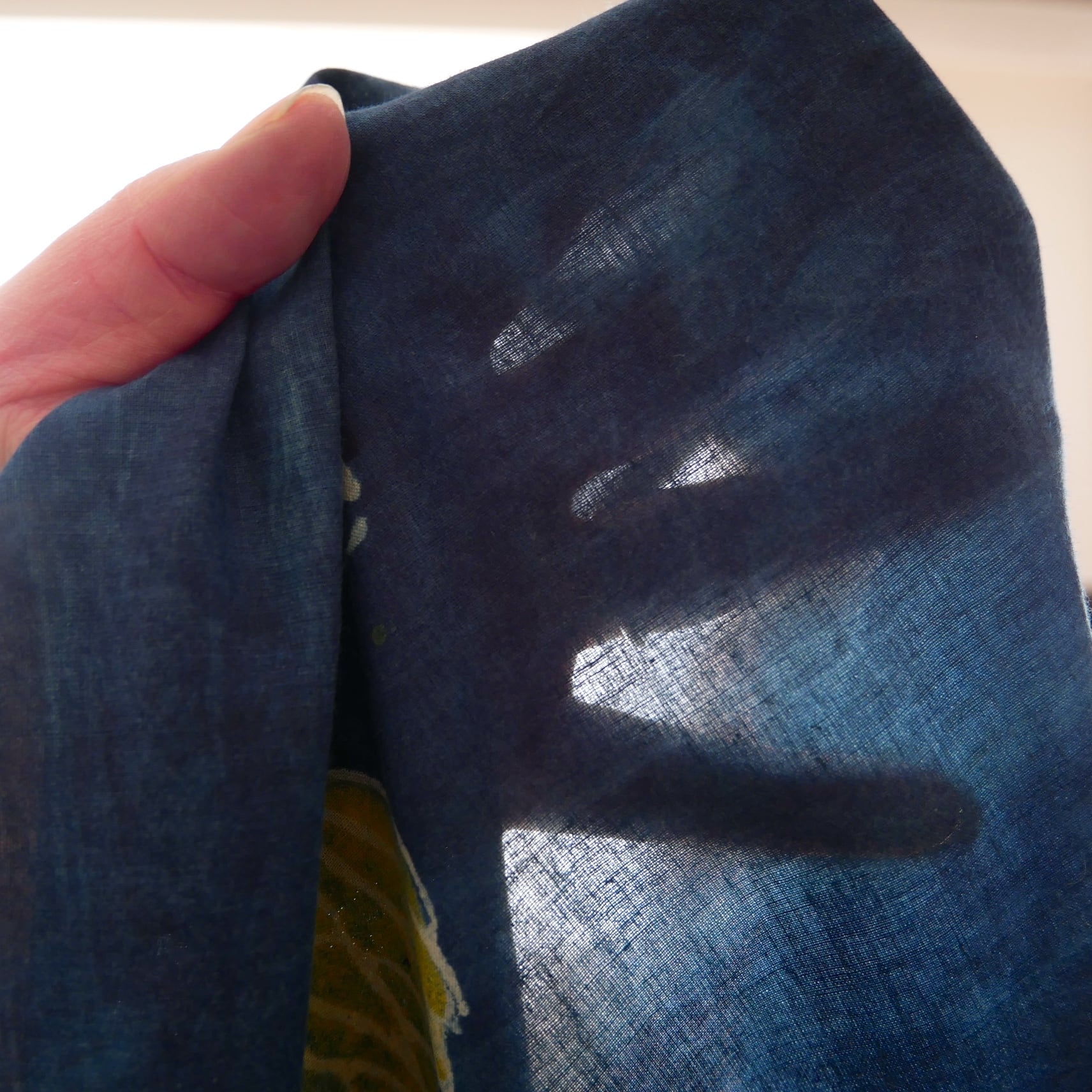 触れていると、手にうっすらと藍色が移ることがあります。天然染料ならではの特性としてご理解ください。
