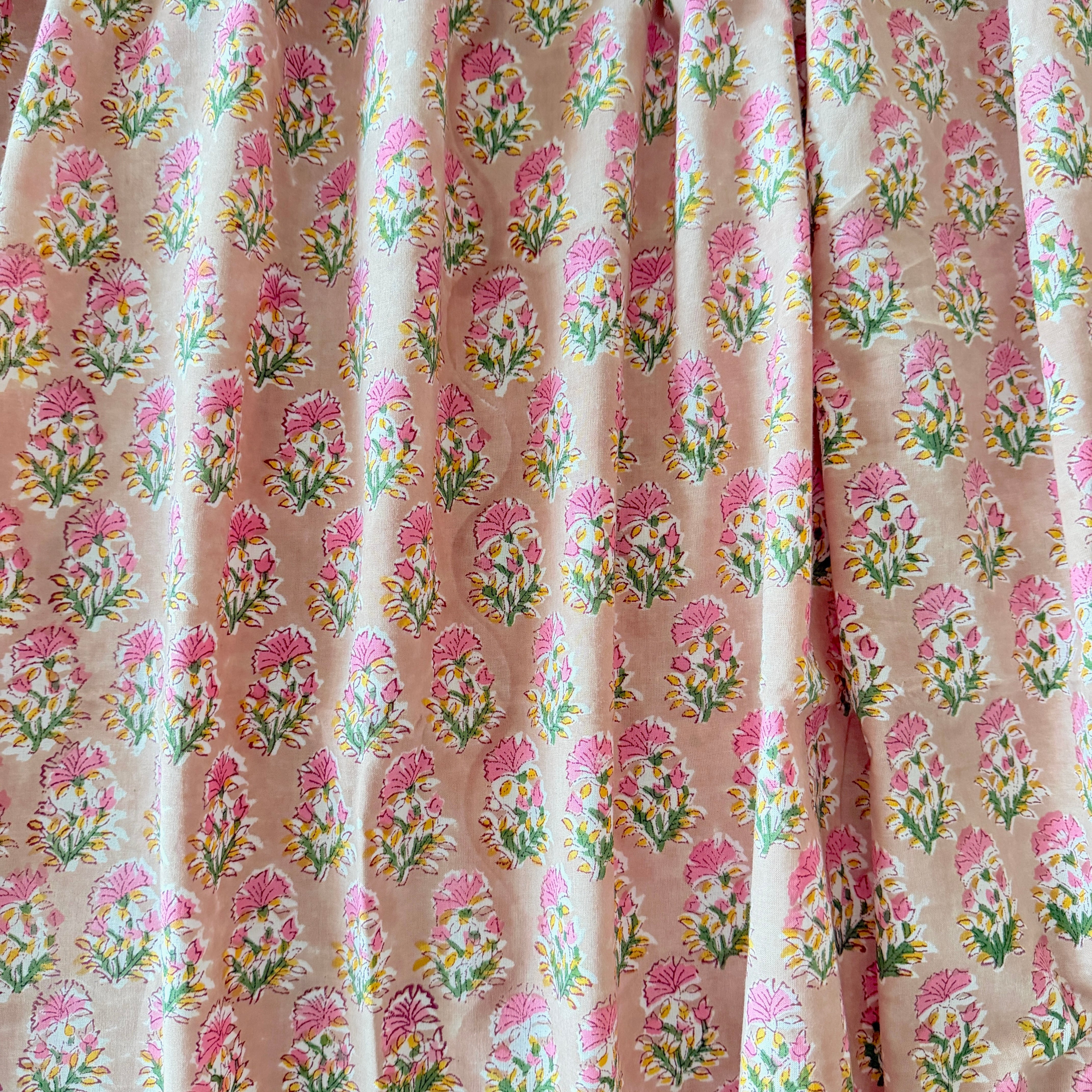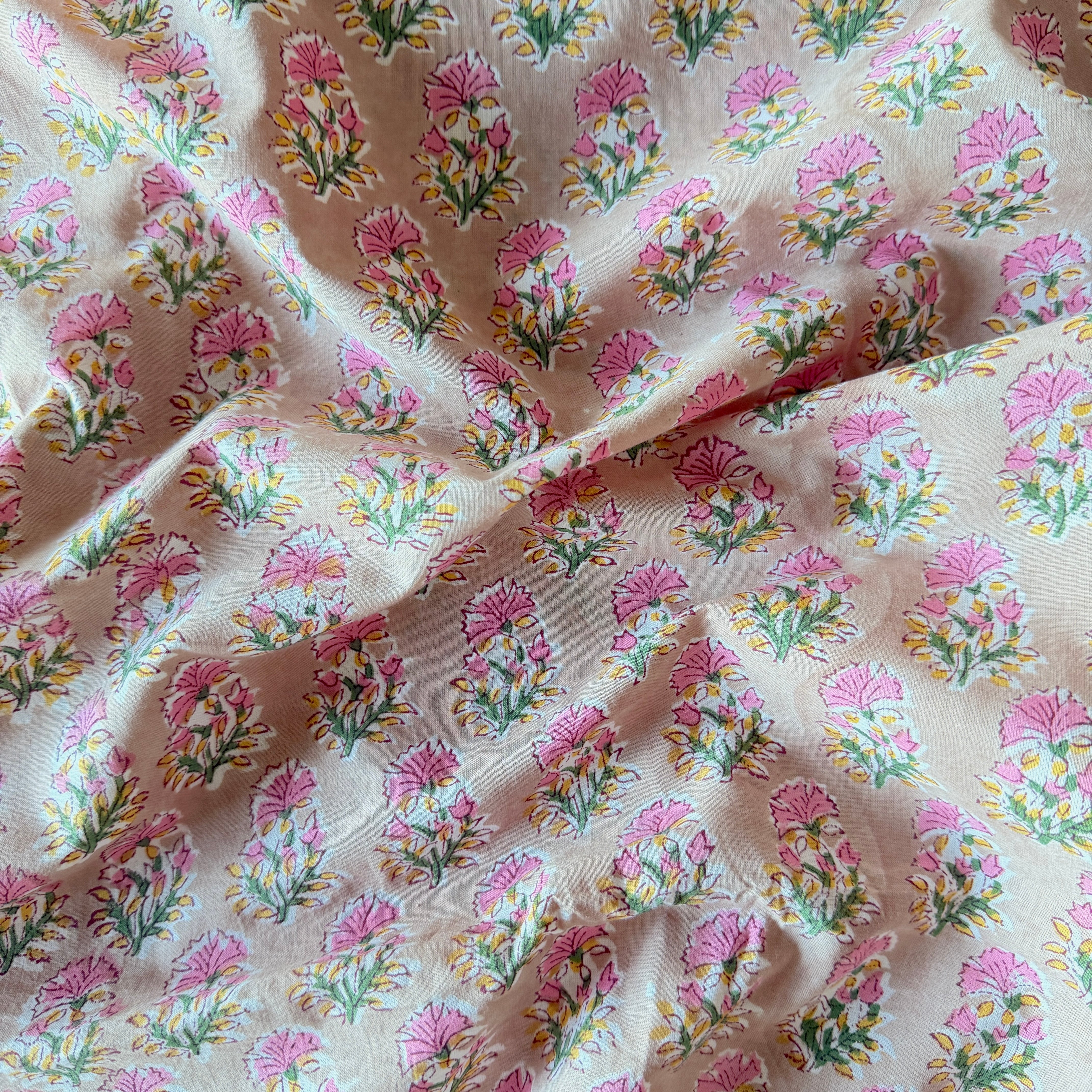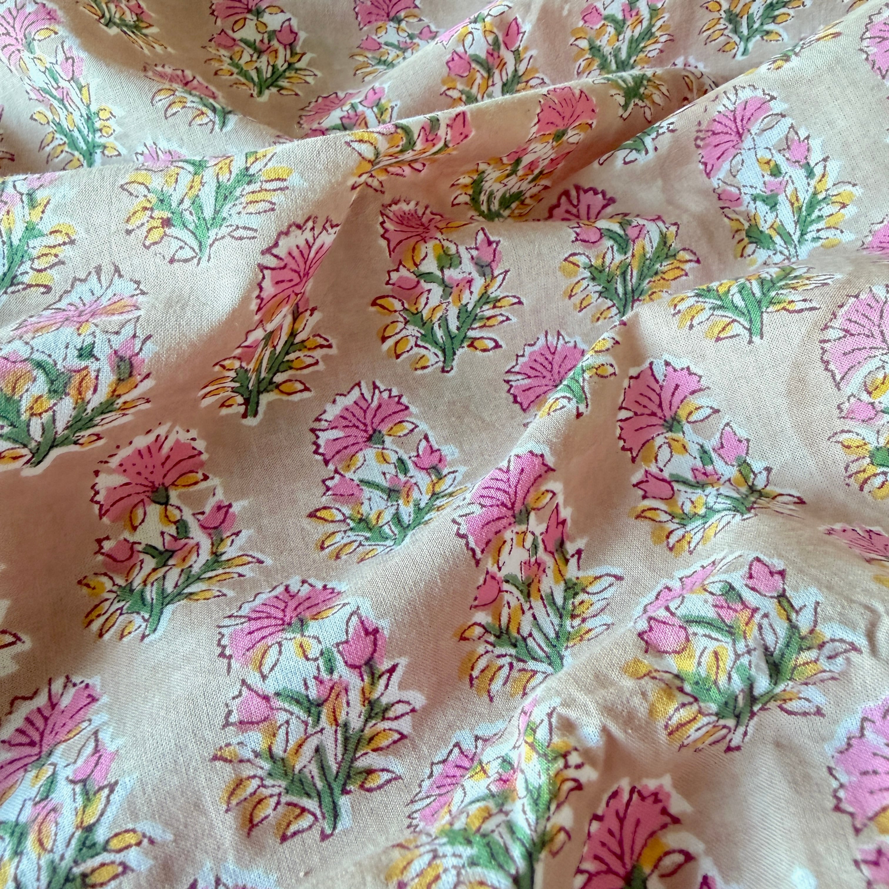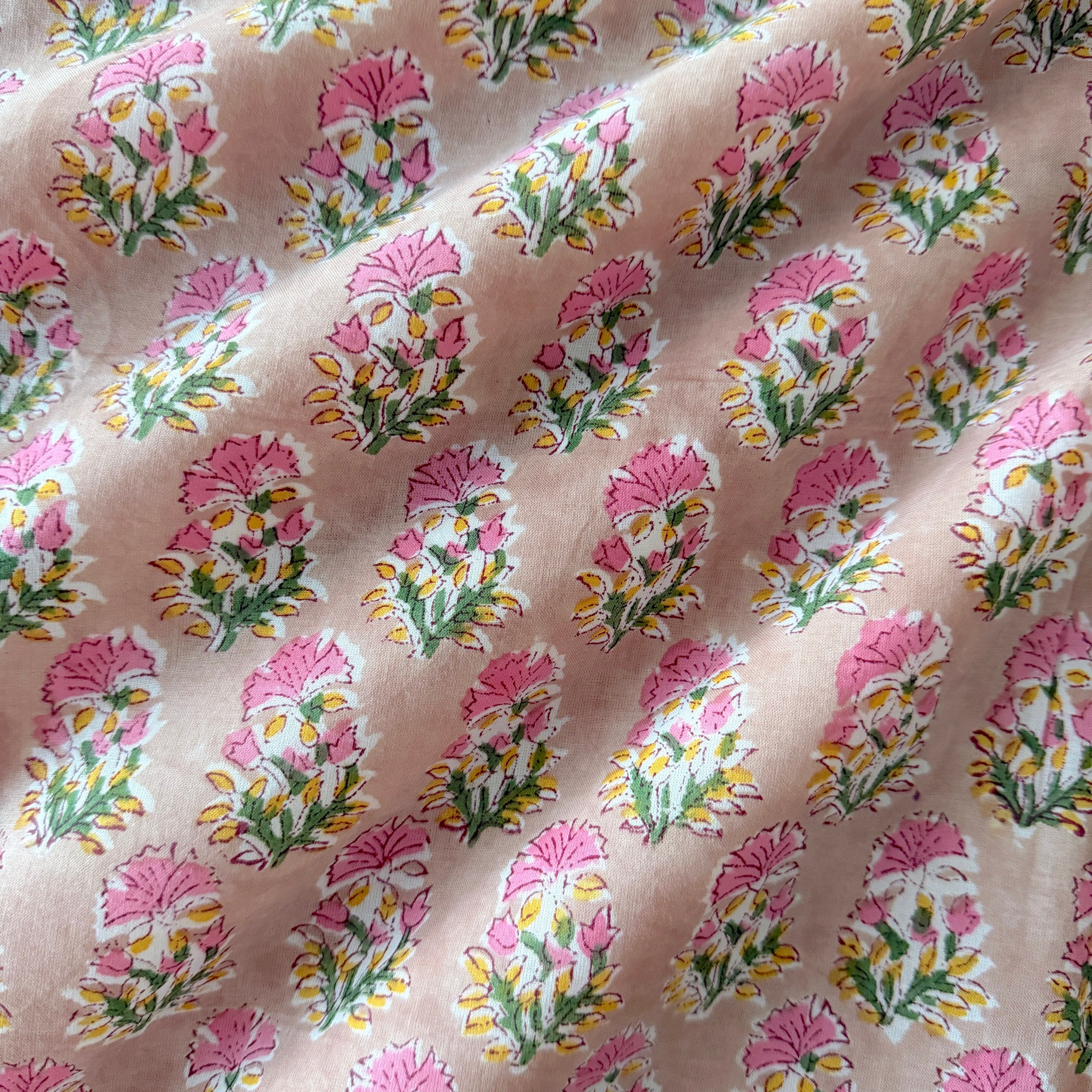 ◾️可憐に咲く、ピンクの小花。小さな花束のようなインドのブロックプリント生地。