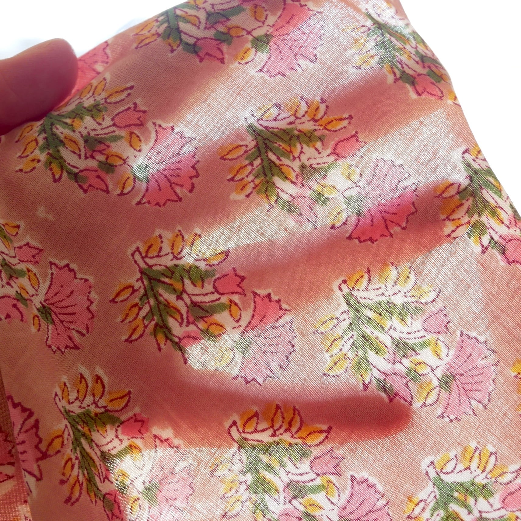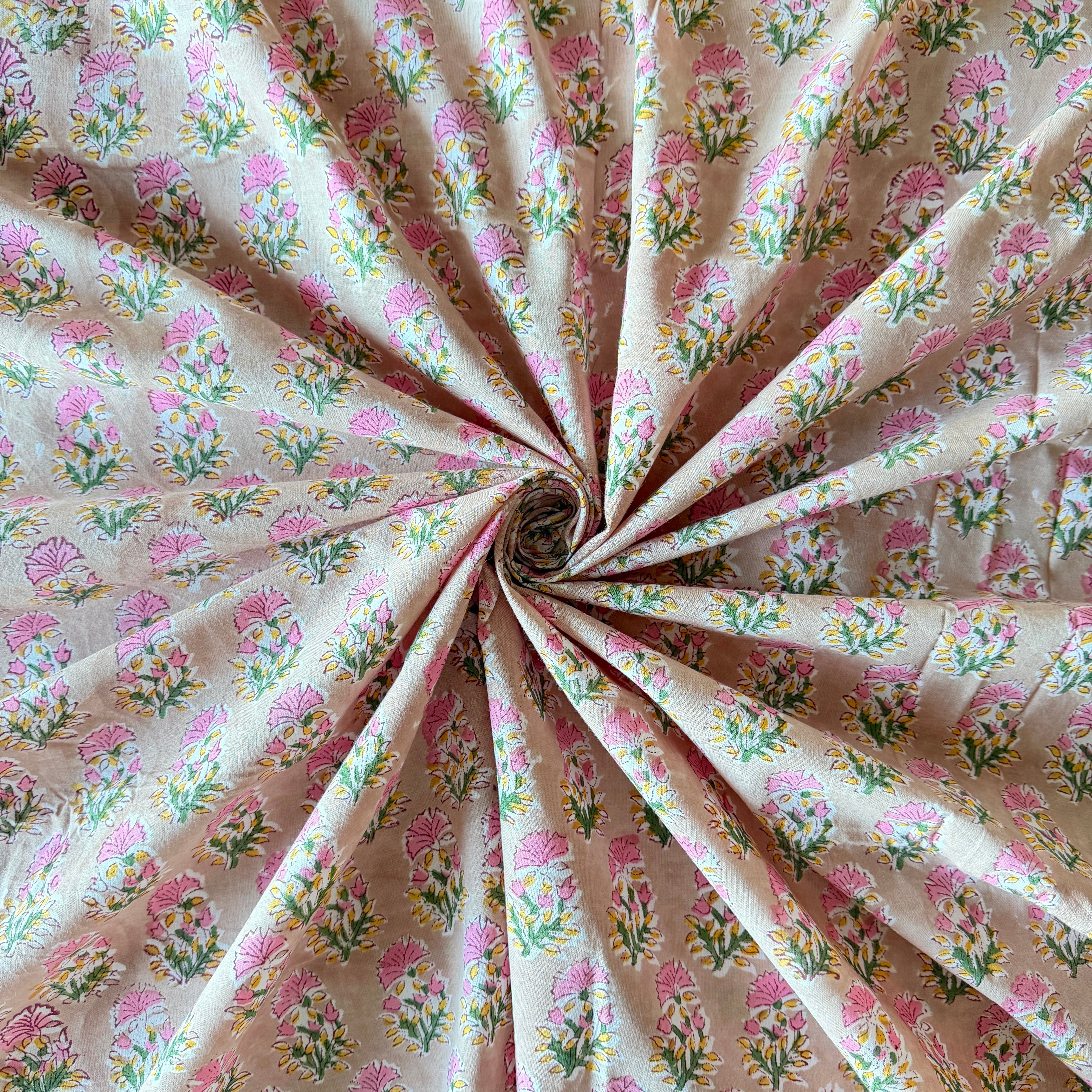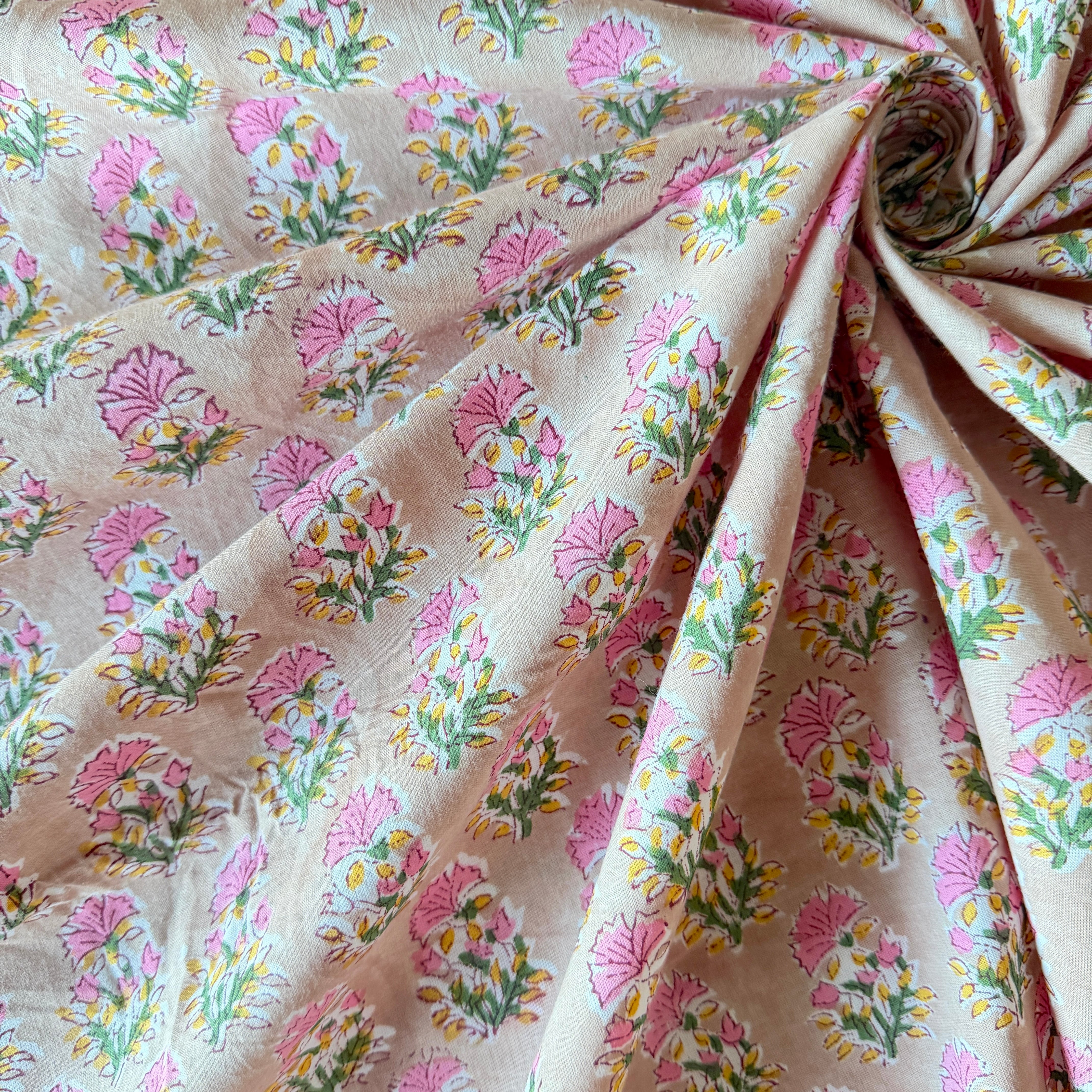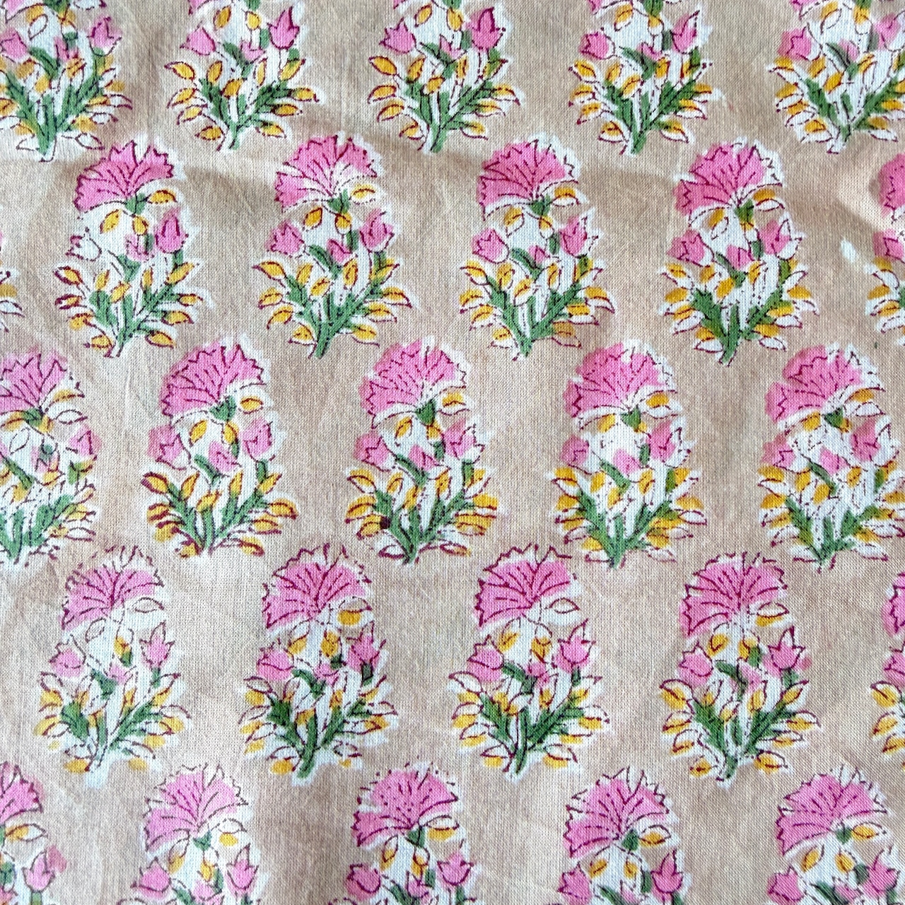 ◾️可憐に咲く、ピンクの小花。小さな花束のようなインドのブロックプリント生地。
