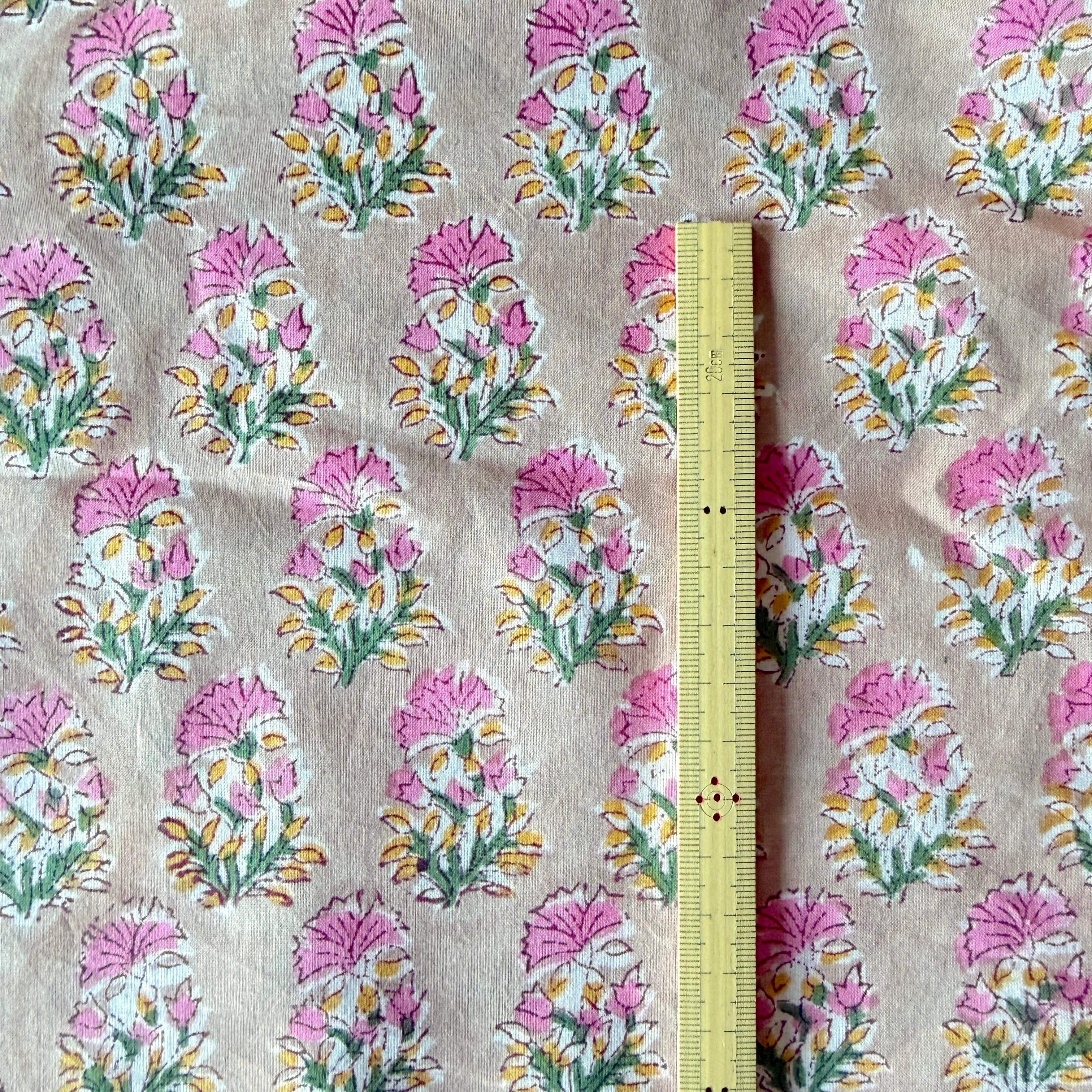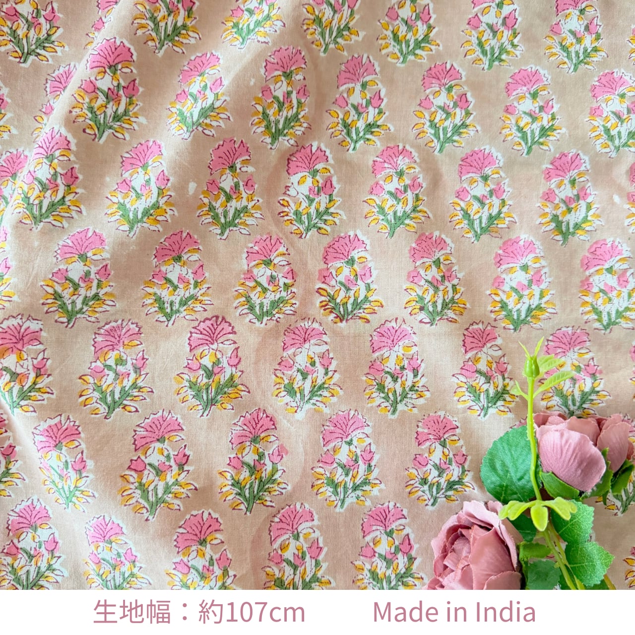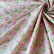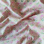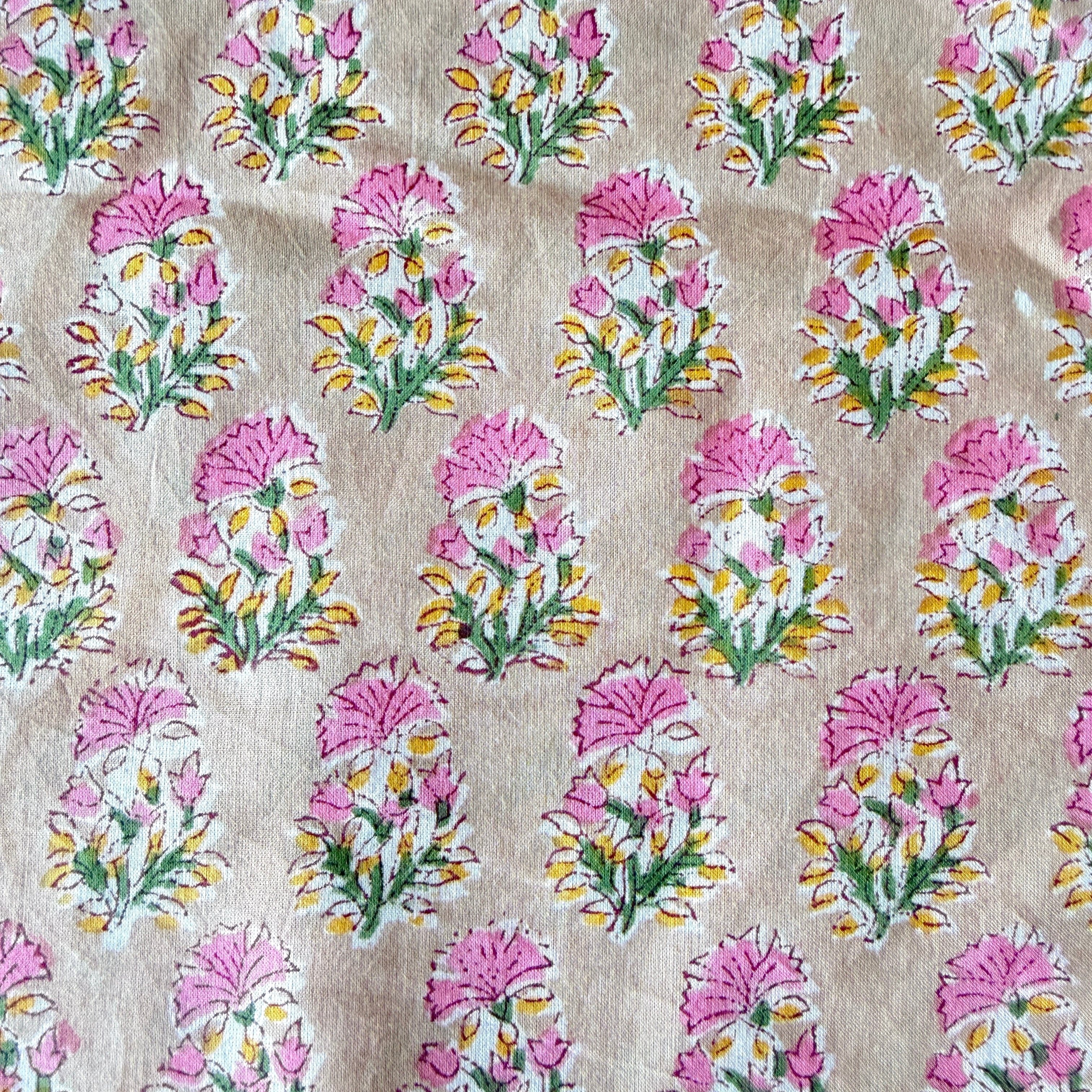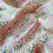 ハンドブロックプリント生地 インド更紗 綿生地 ベージュベース×ピンク小花 薄手コットン GE-260143