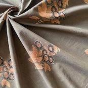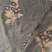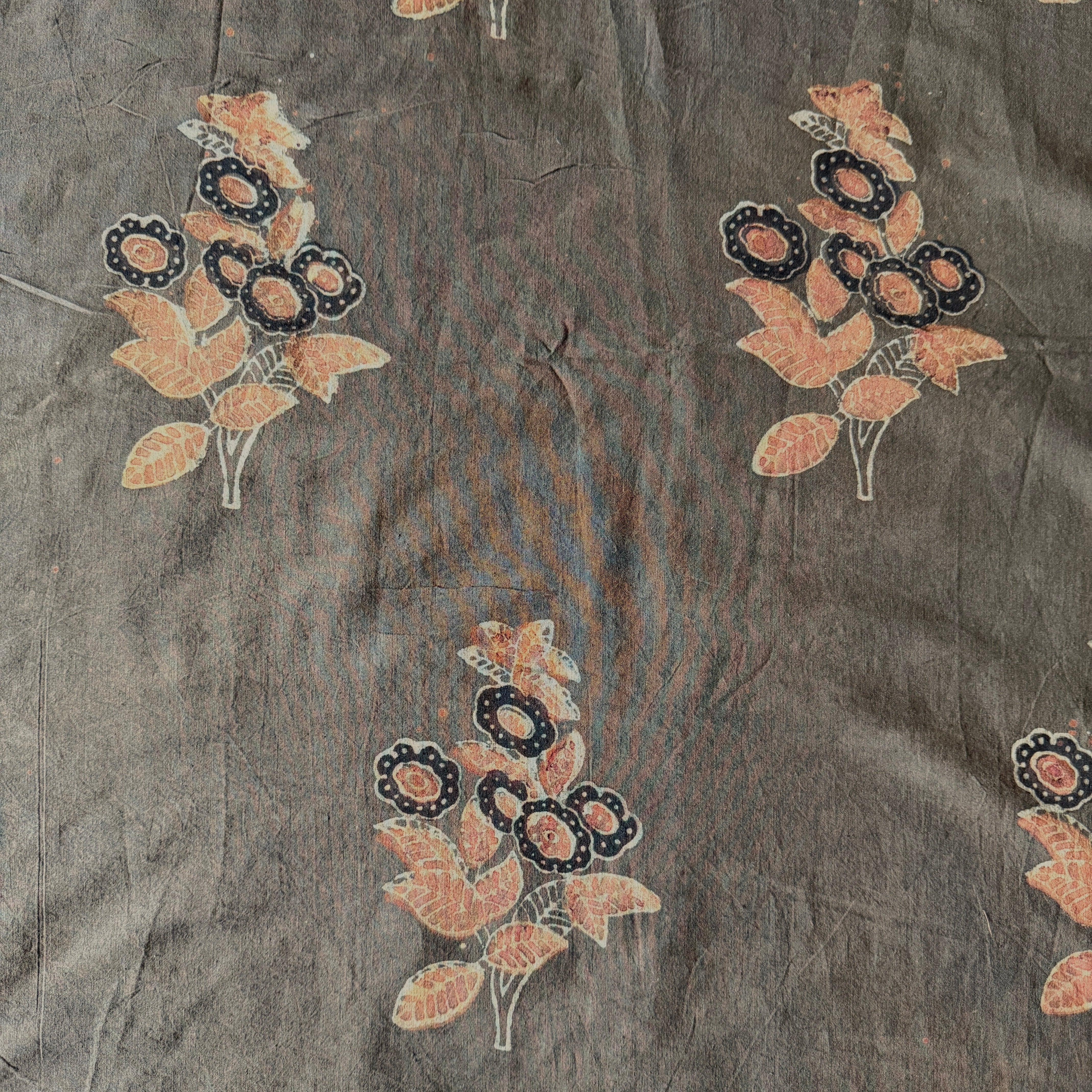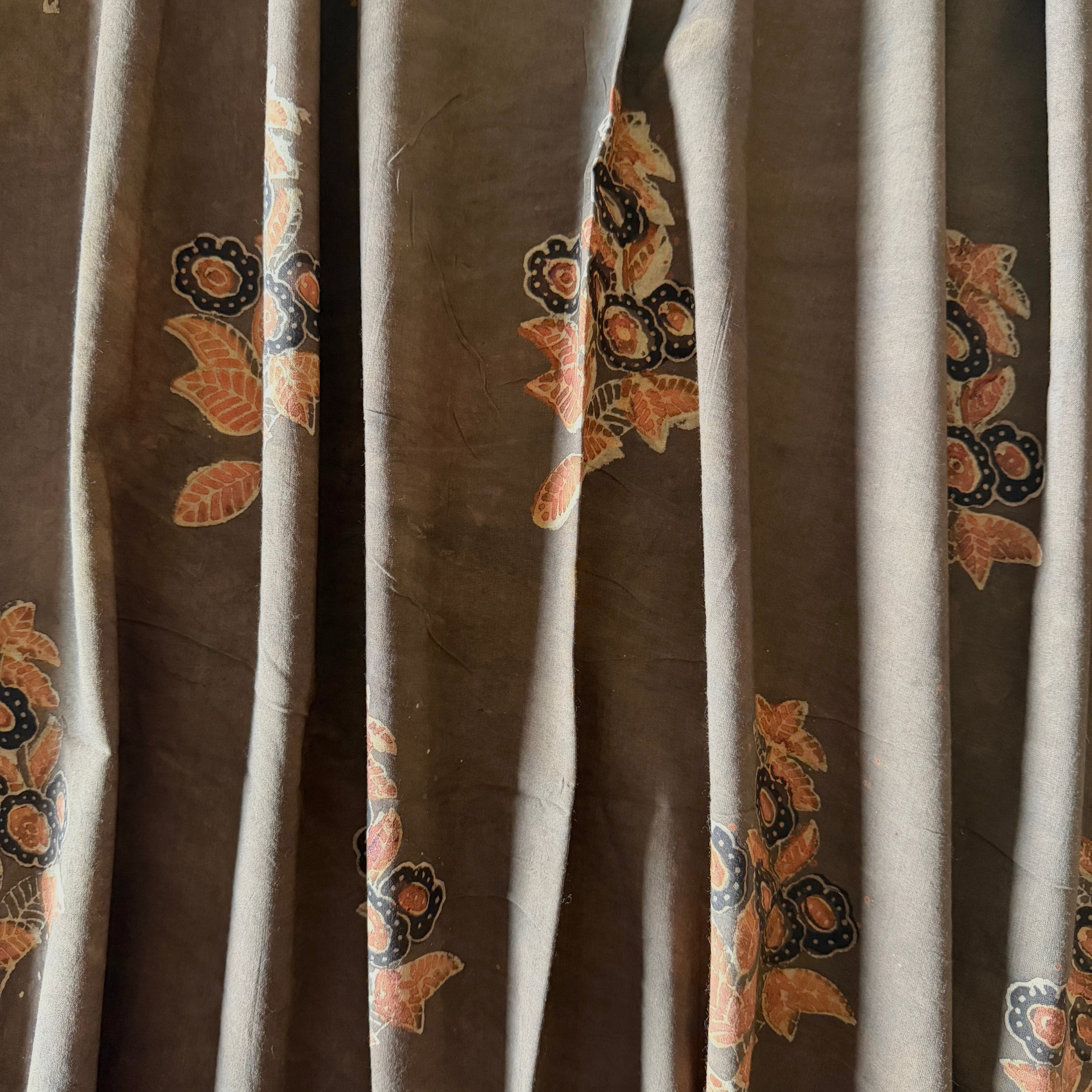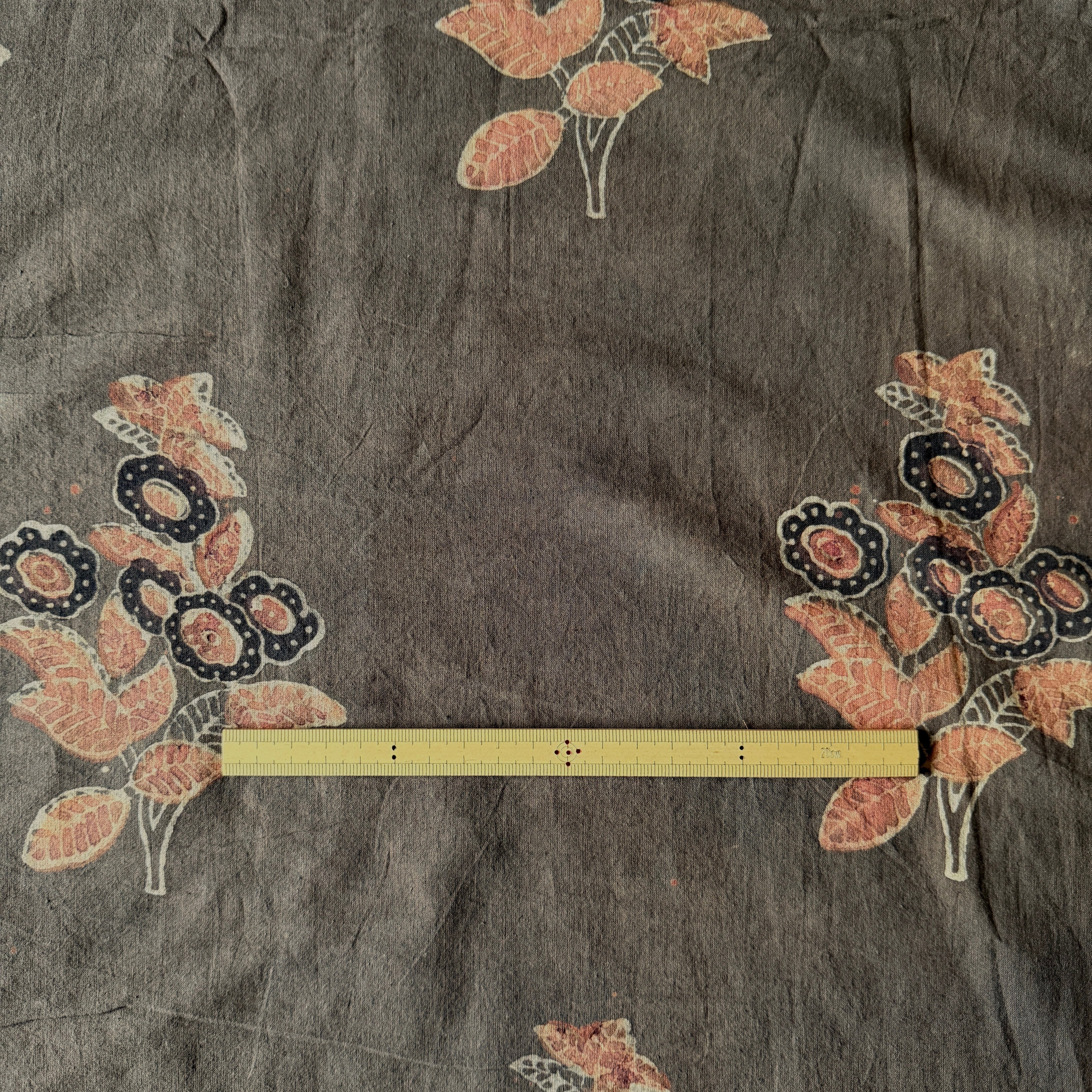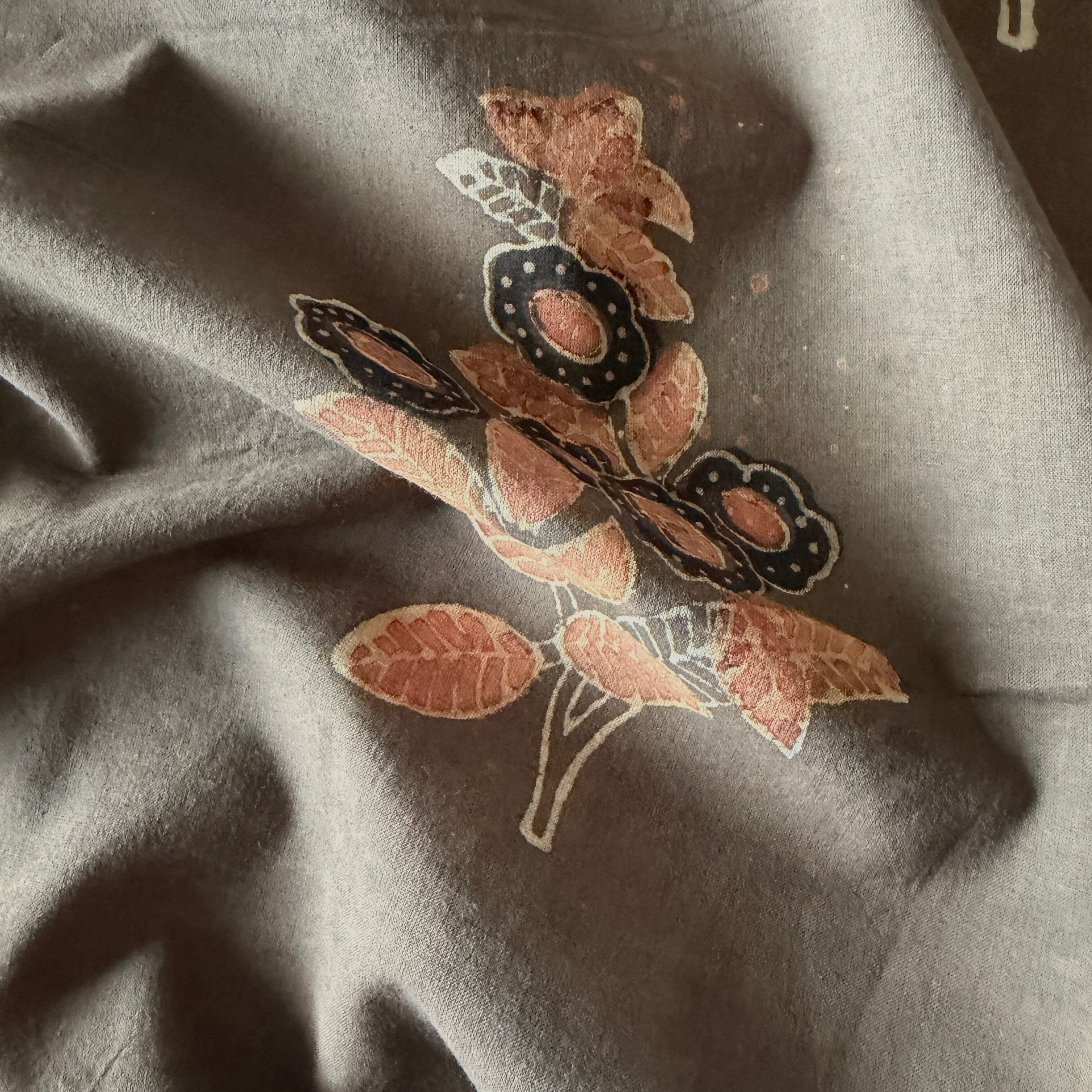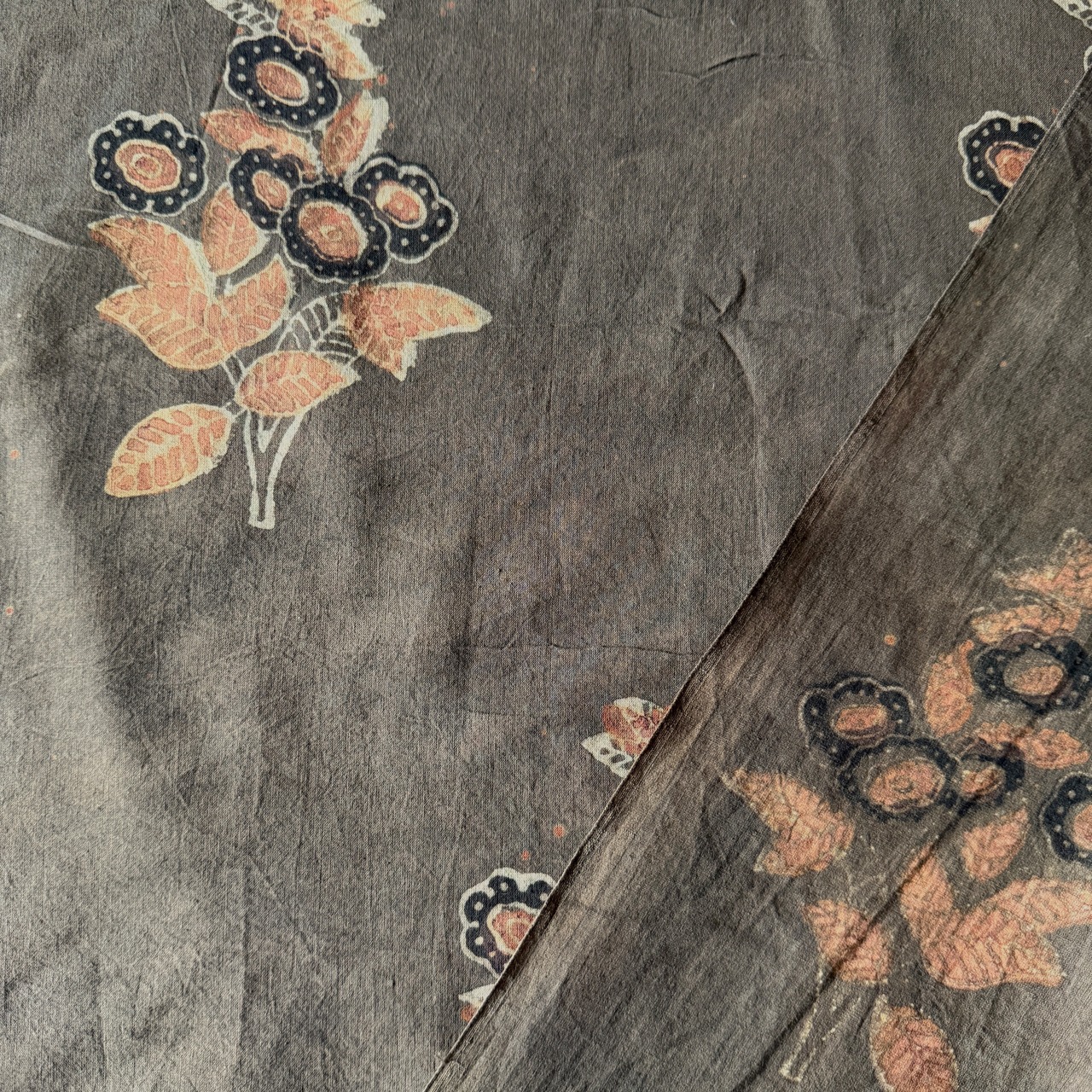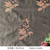 ◾️やわらかなブラウンに、黒い花が静かに咲く。インドのハンドブロックプリント生地