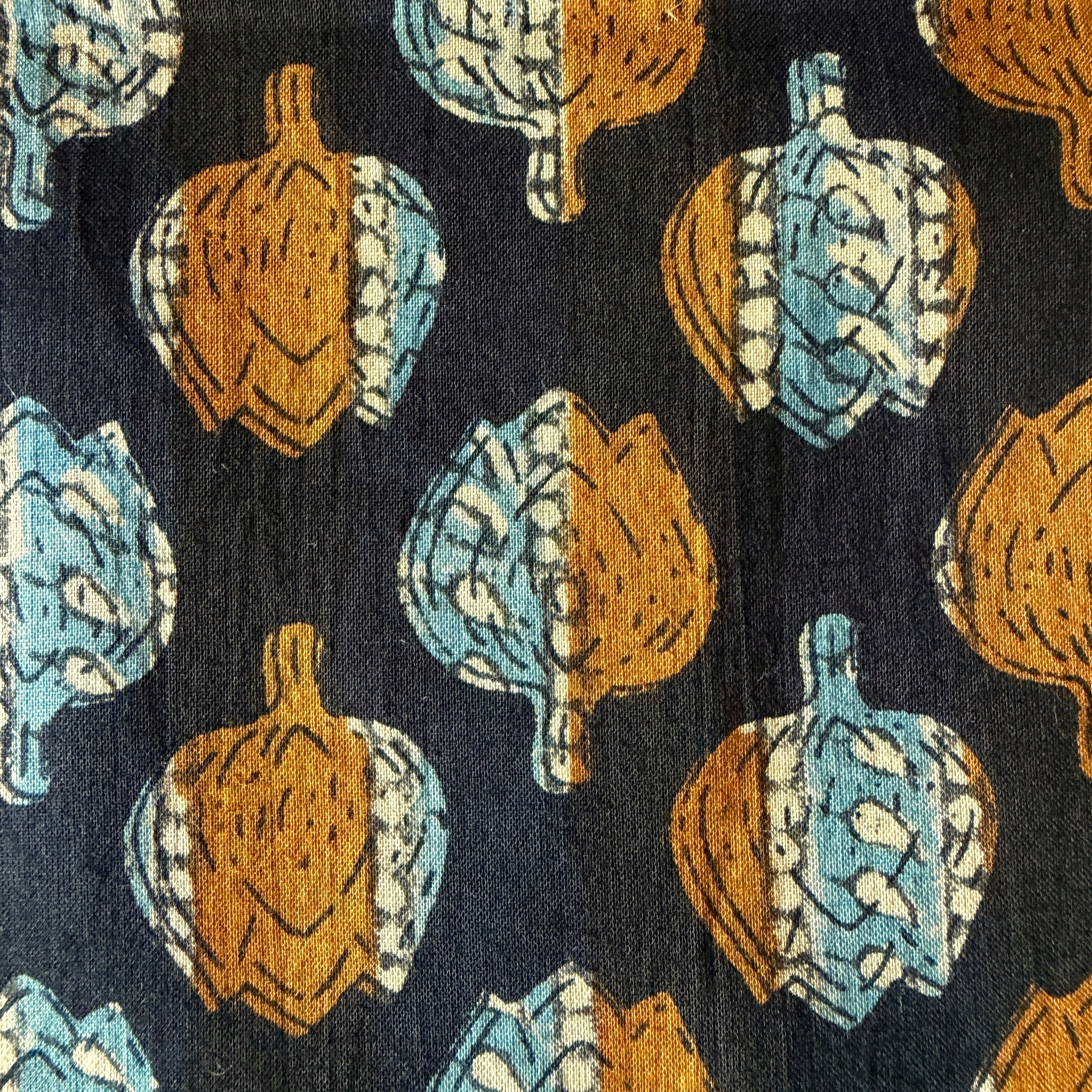 ◾️どこか愛嬌のある植物モチーフ。ブラックベースの個性派ブロックプリント生地