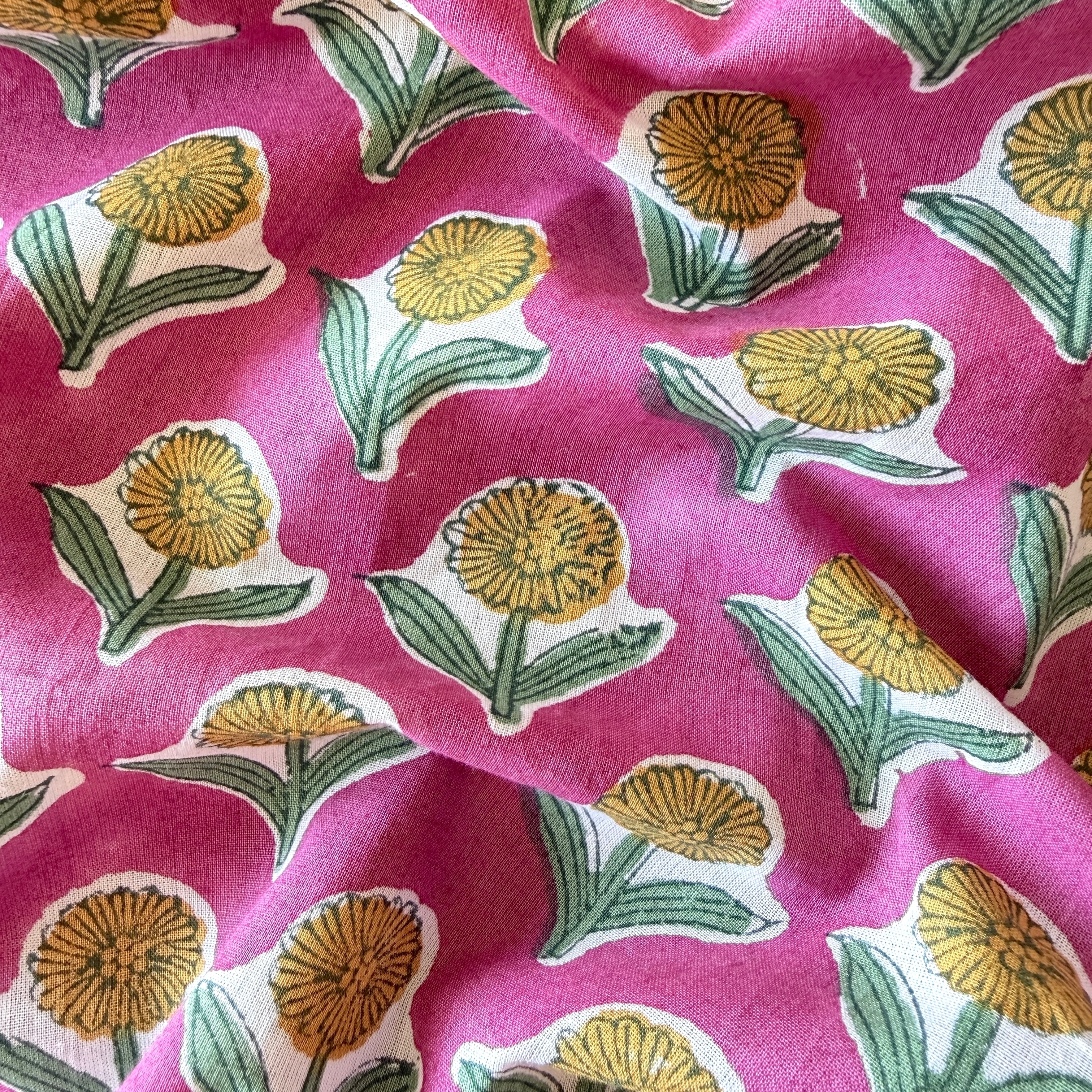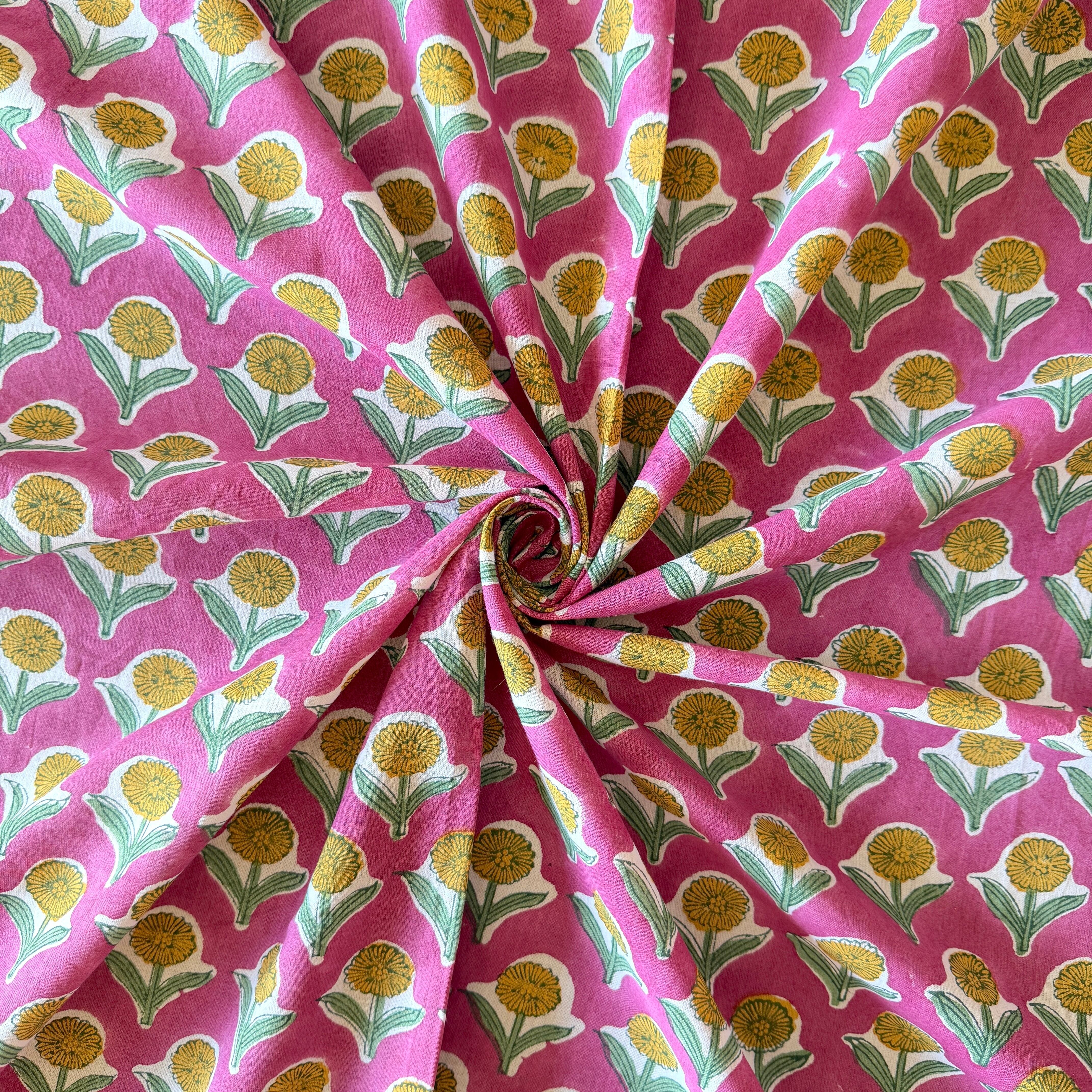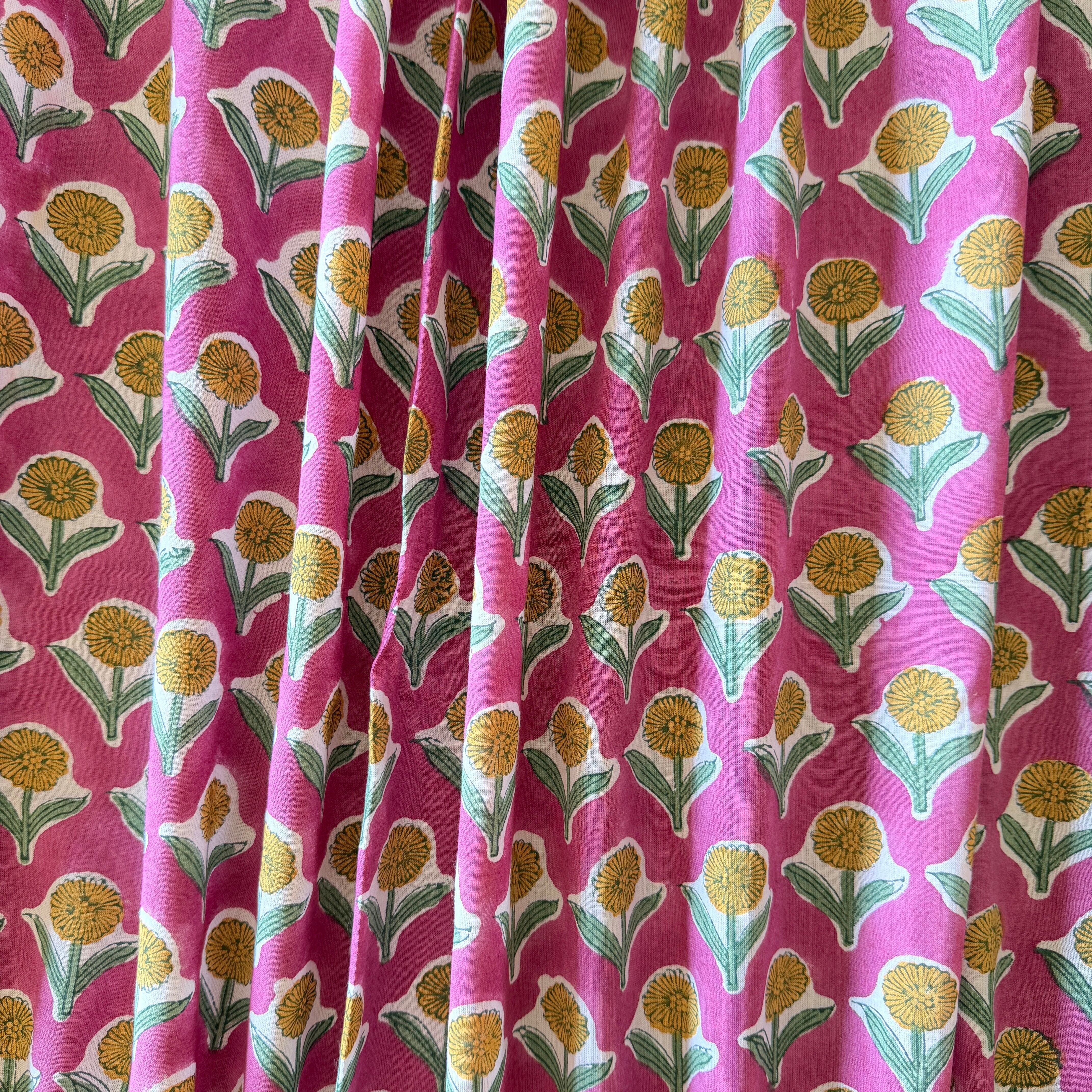 ハンドブロックプリント生地 インド更紗 綿生地 マゼンタ×イエロー花柄 薄手コットン GP-260211