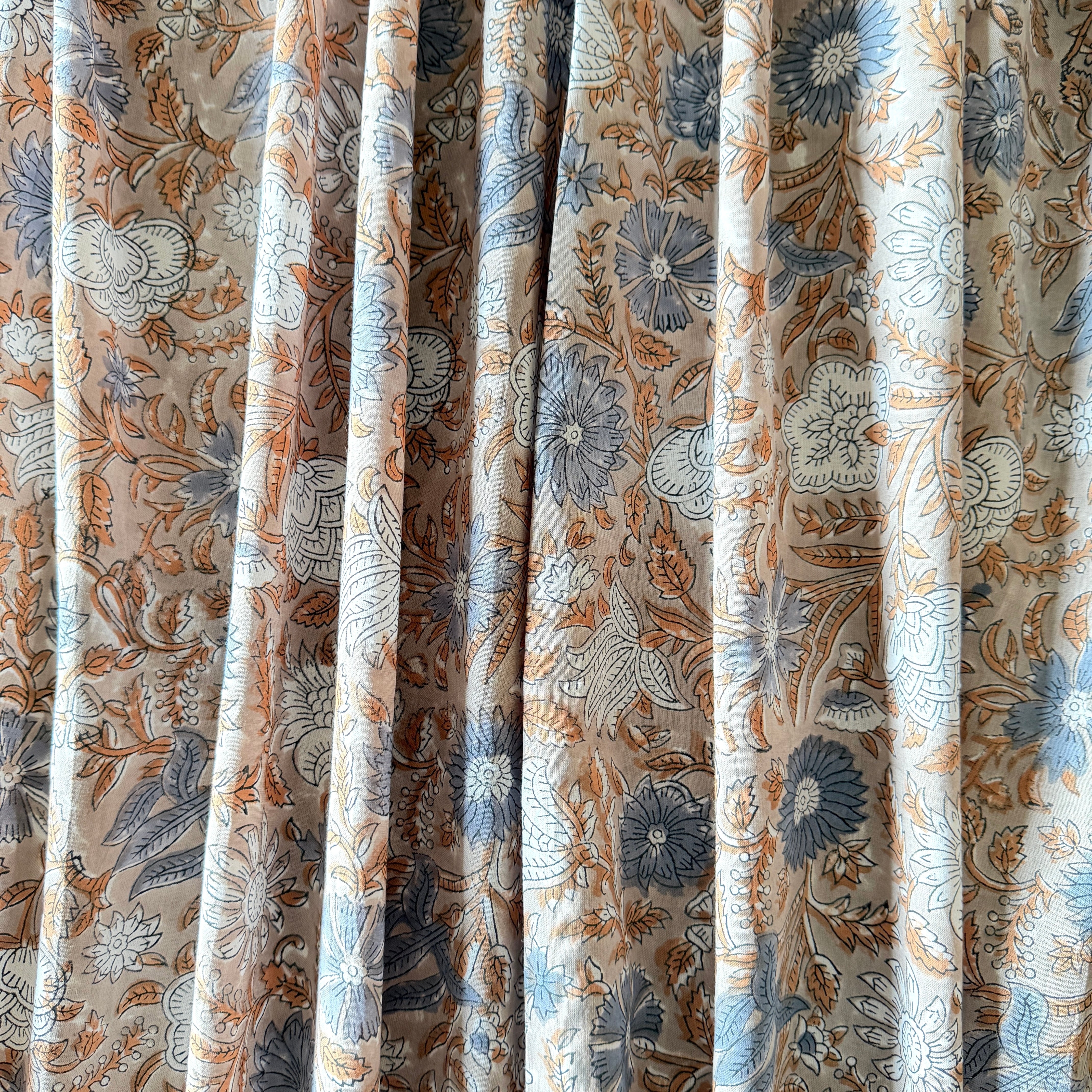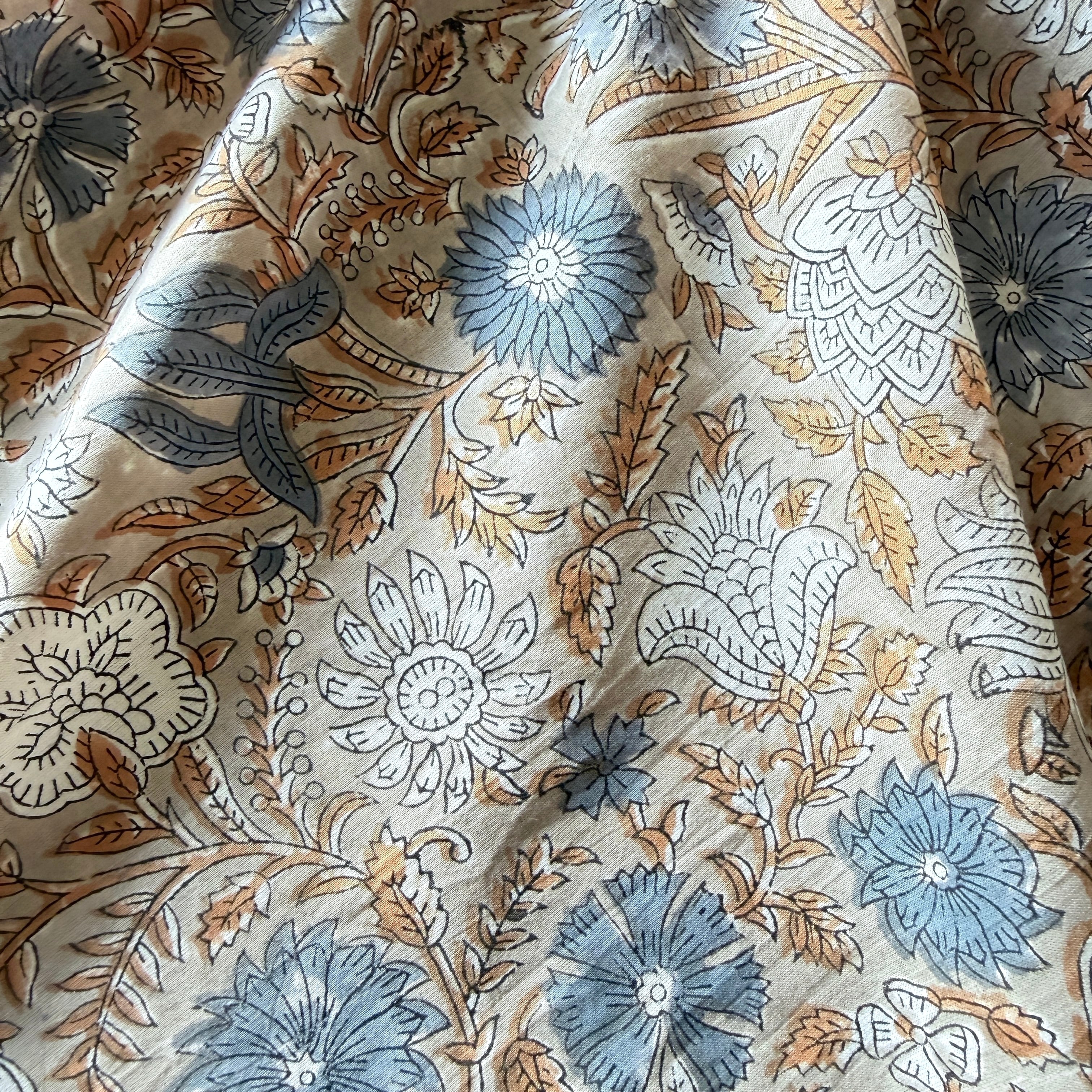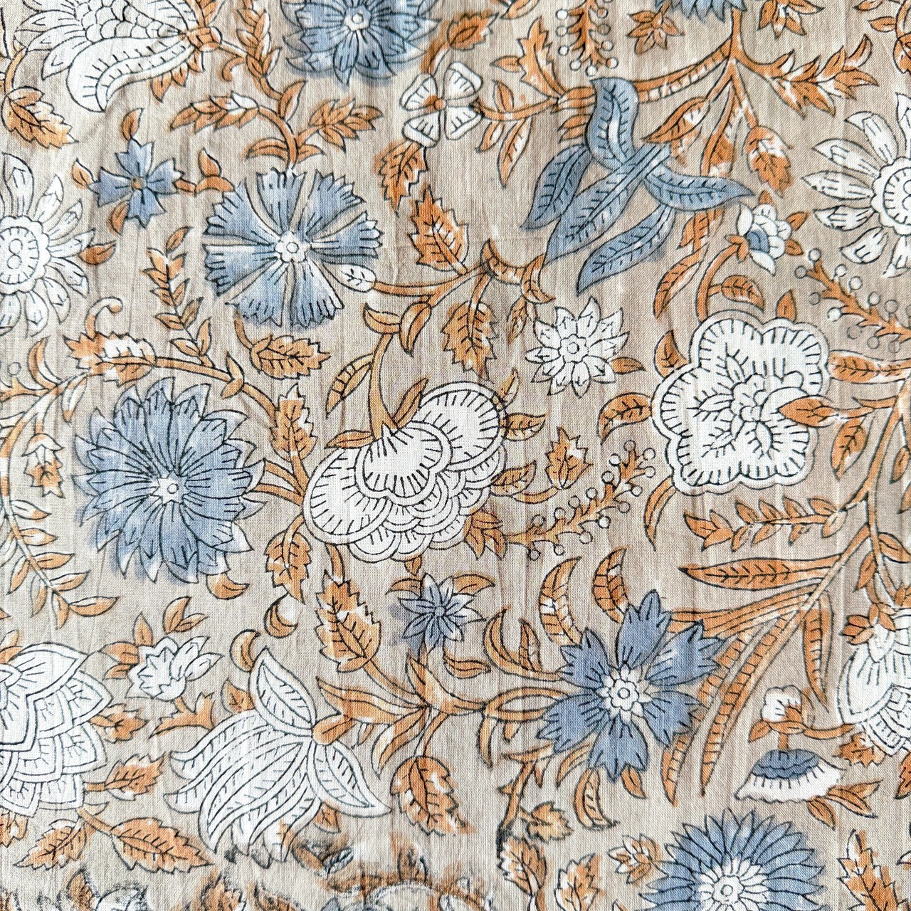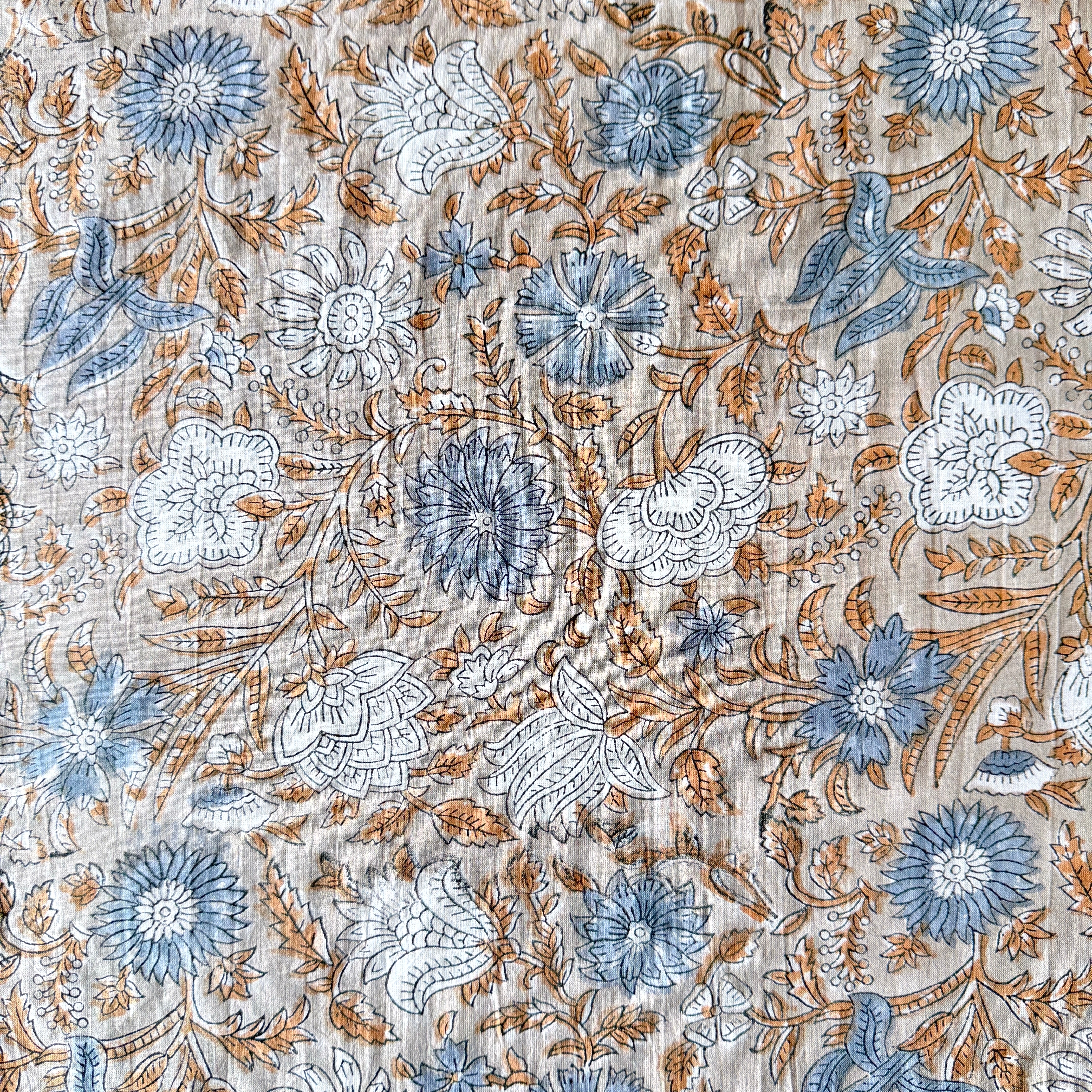こちらはインド・サンガネール地方で作られた伝統的なハンドブロックプリント生地です。