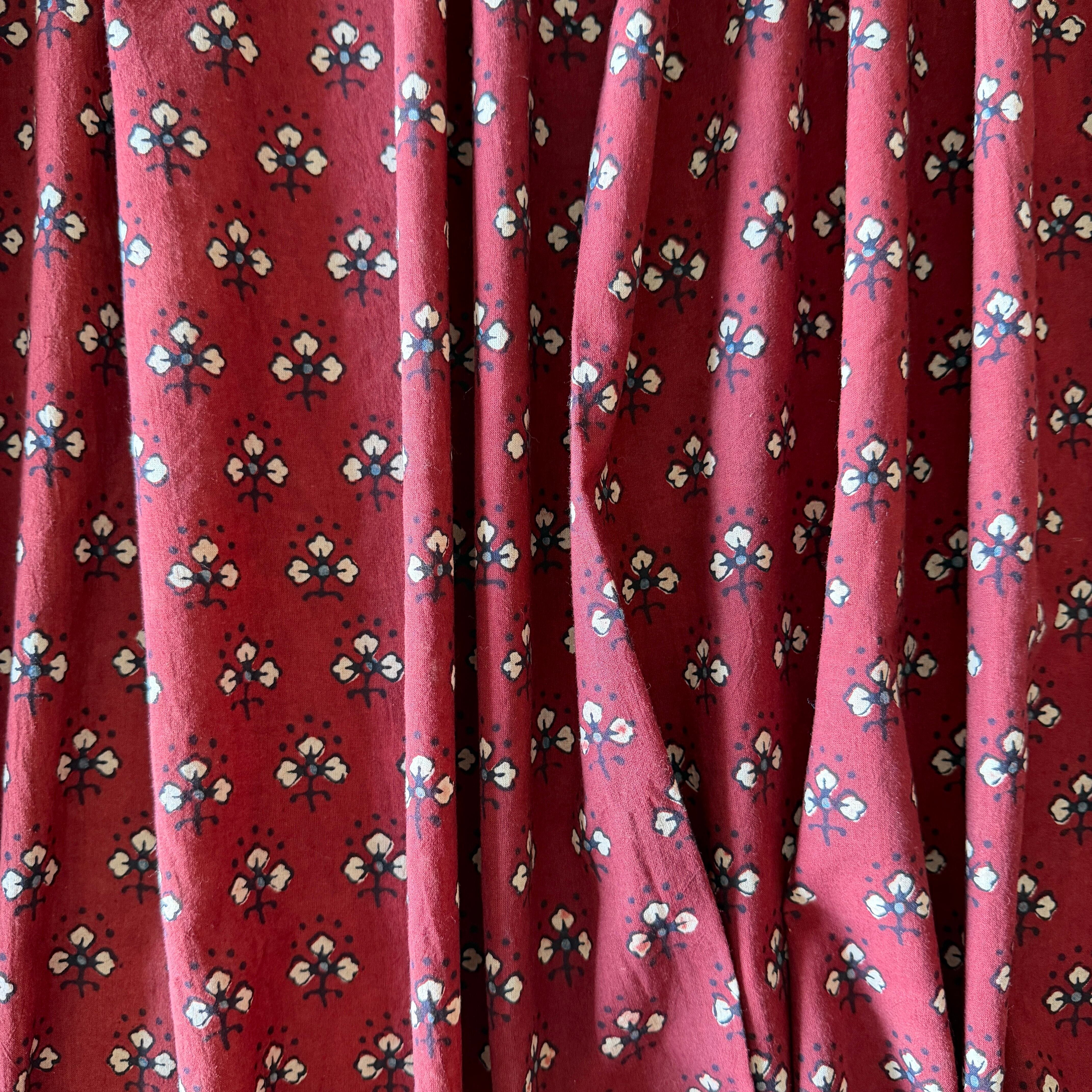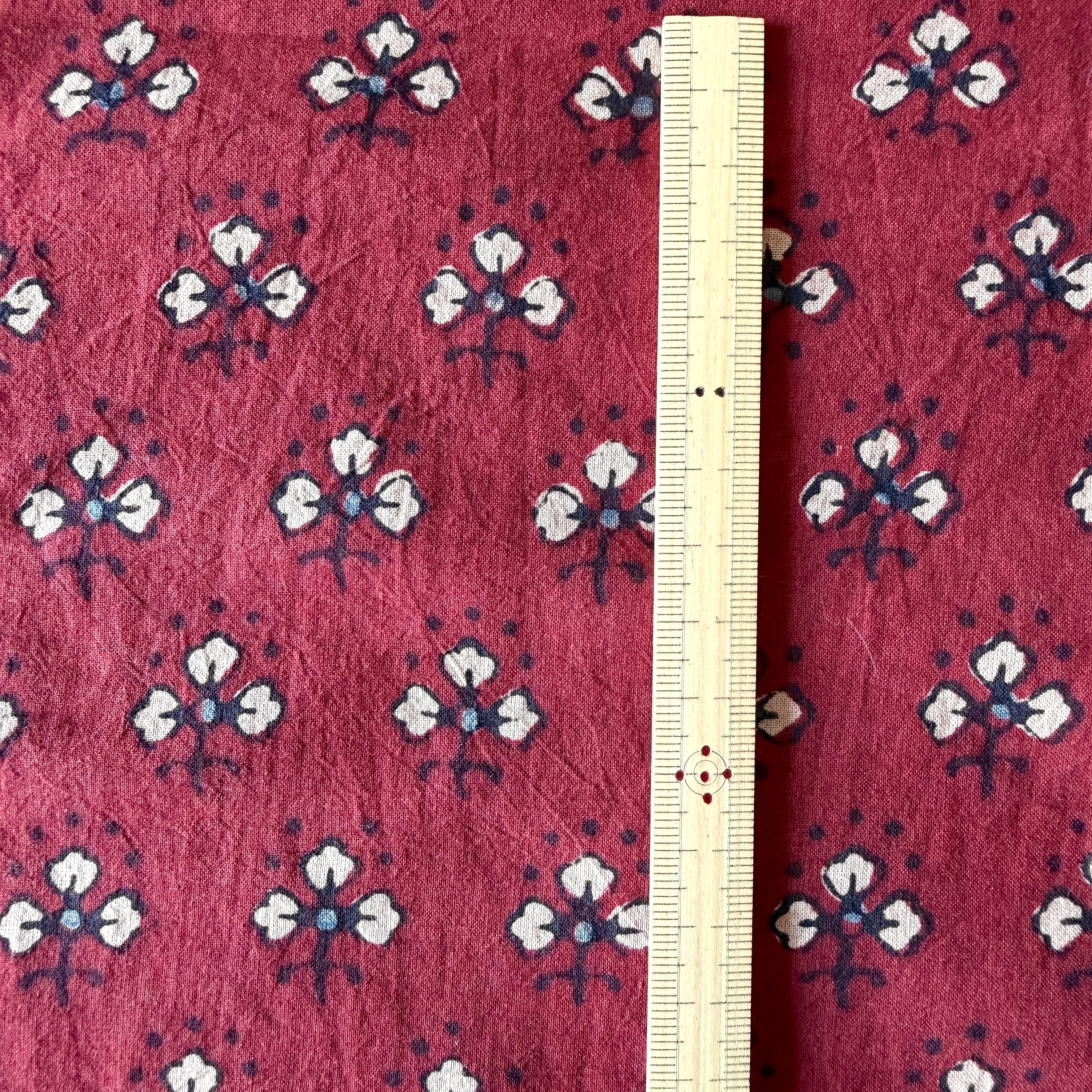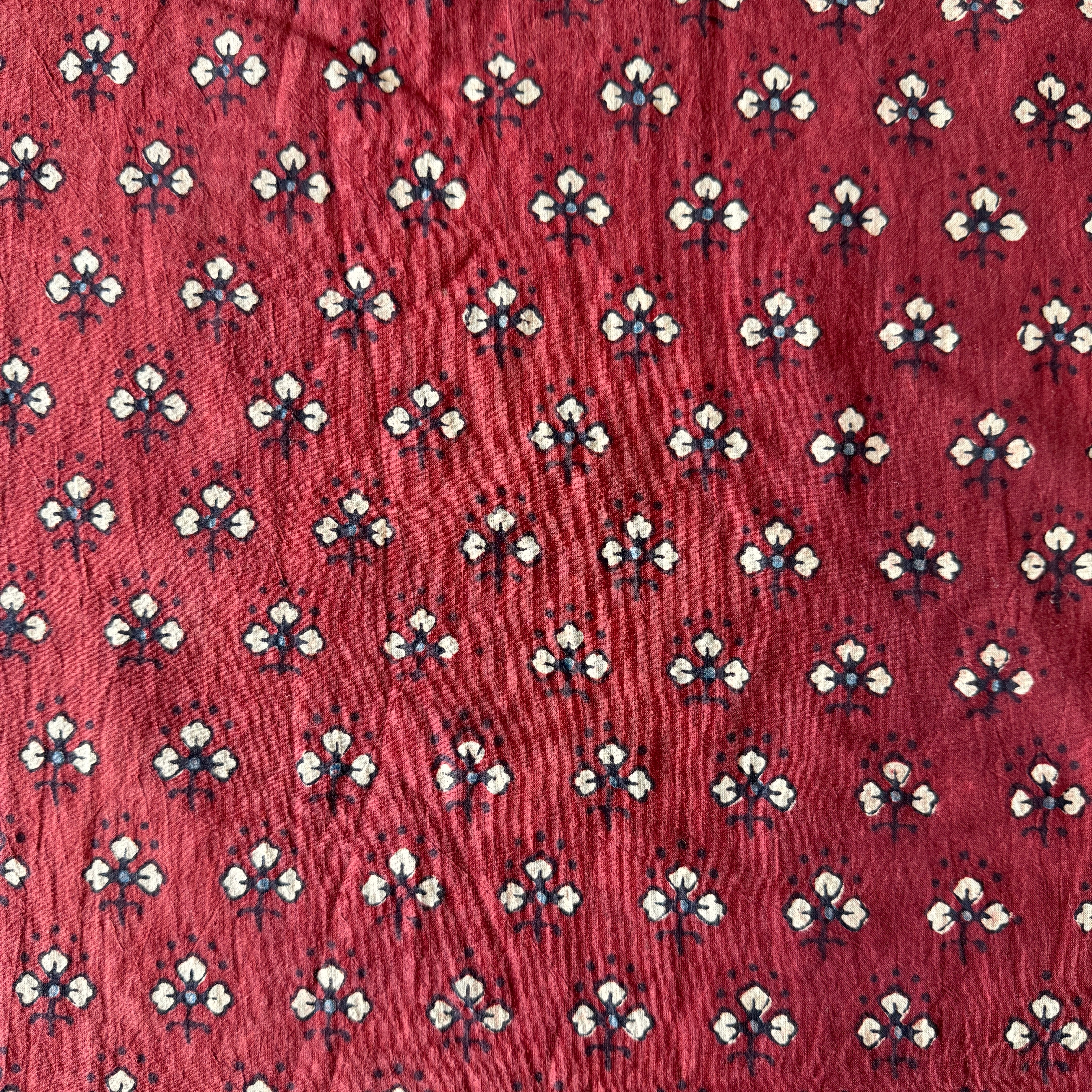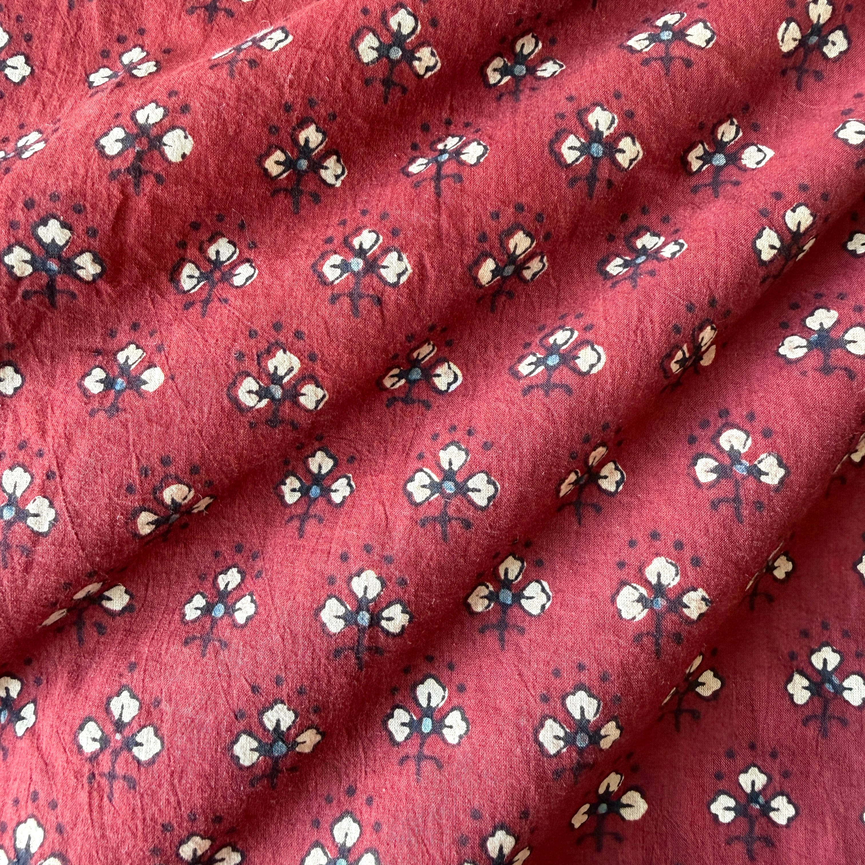 ◾️深みのある赤に、小さな花のようなモチーフが映える。インドのアジュラックプリント生地