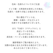 ・ハンドブロックプリント特有のにじみやズレ、かすれや色ムラが見られることがあります。手仕事ならではの表情としてお楽しみいただけますと幸いです。