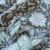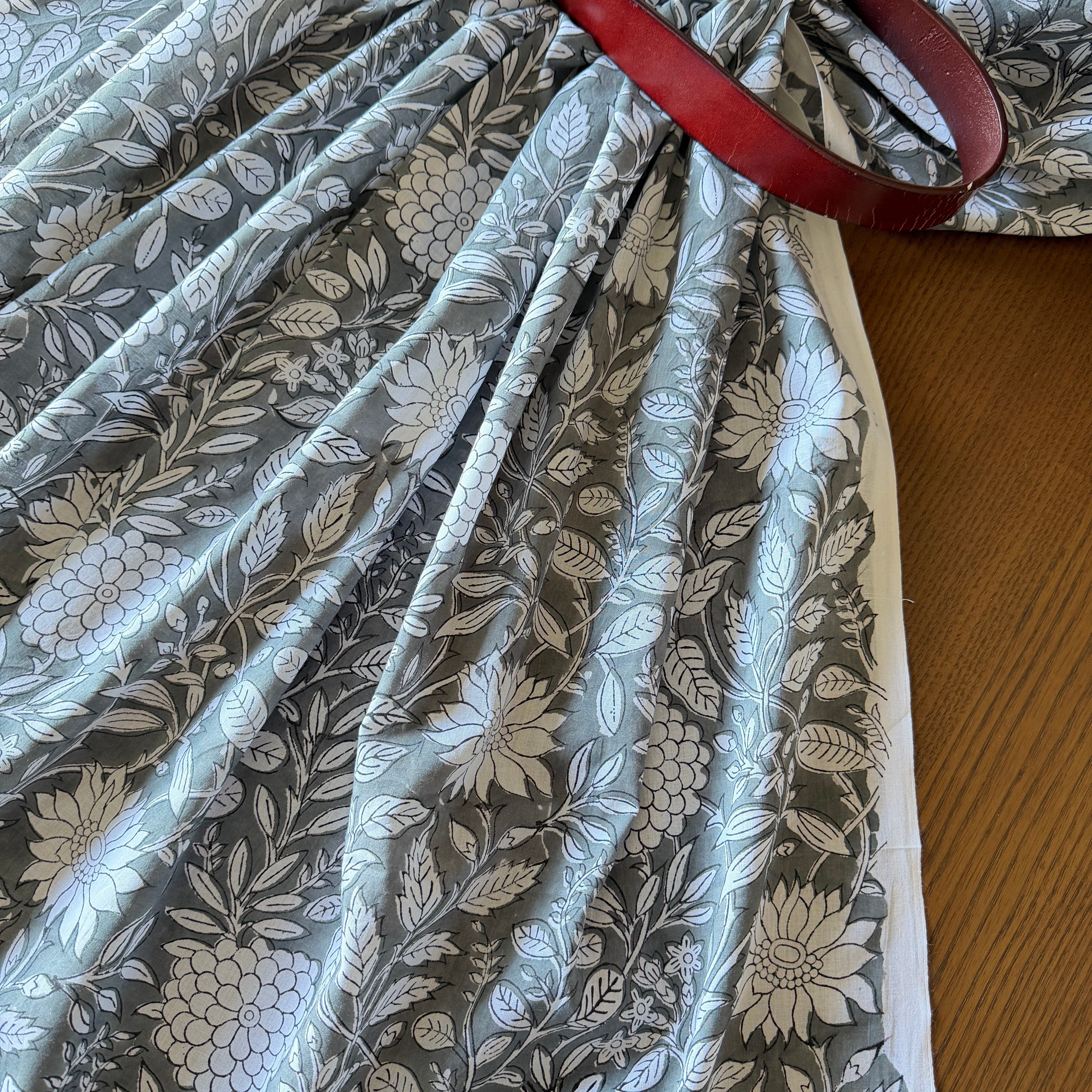 ◾️やわらかなグレーに、白い花々が涼やかに広がる。心地よく寄り添うブロックプリント生地