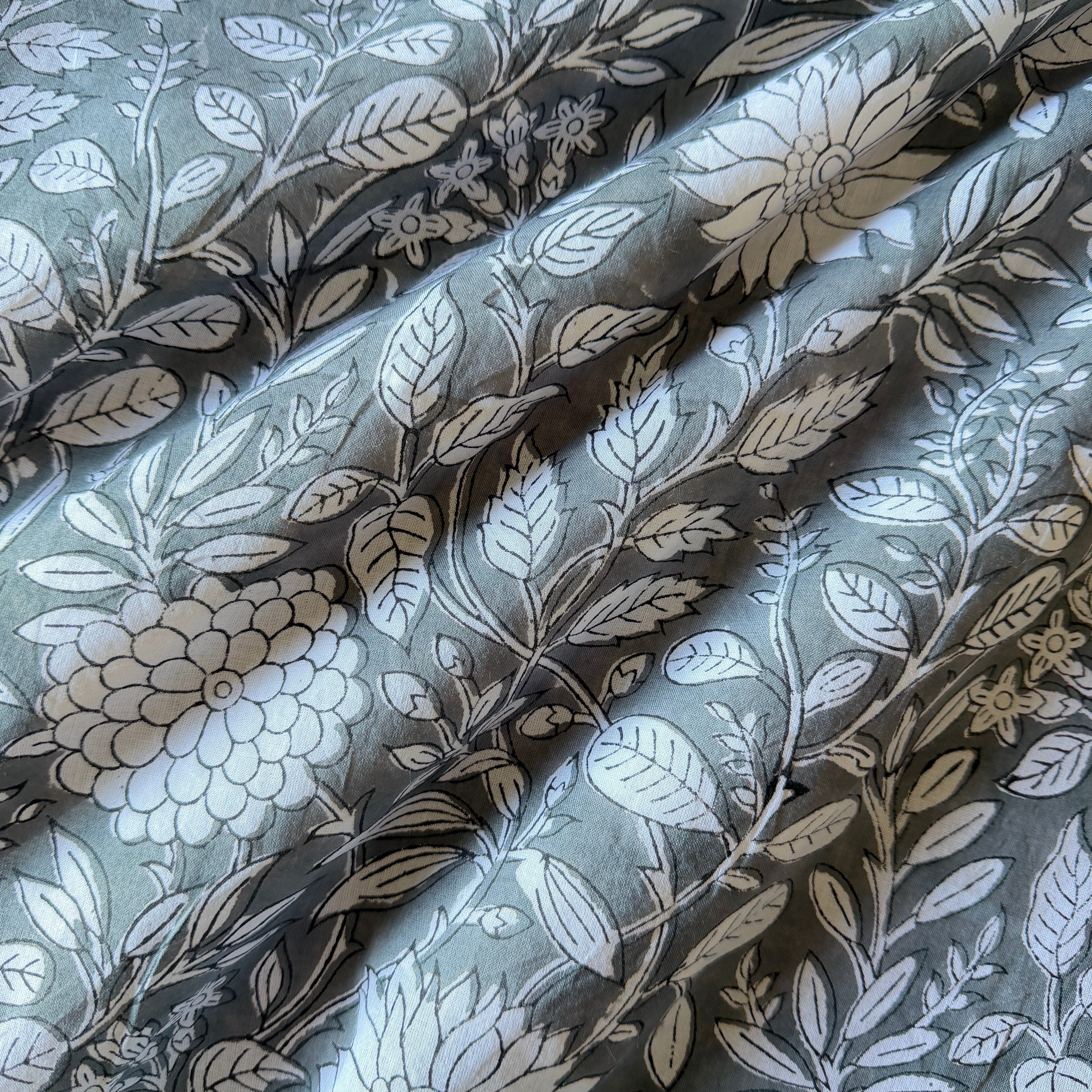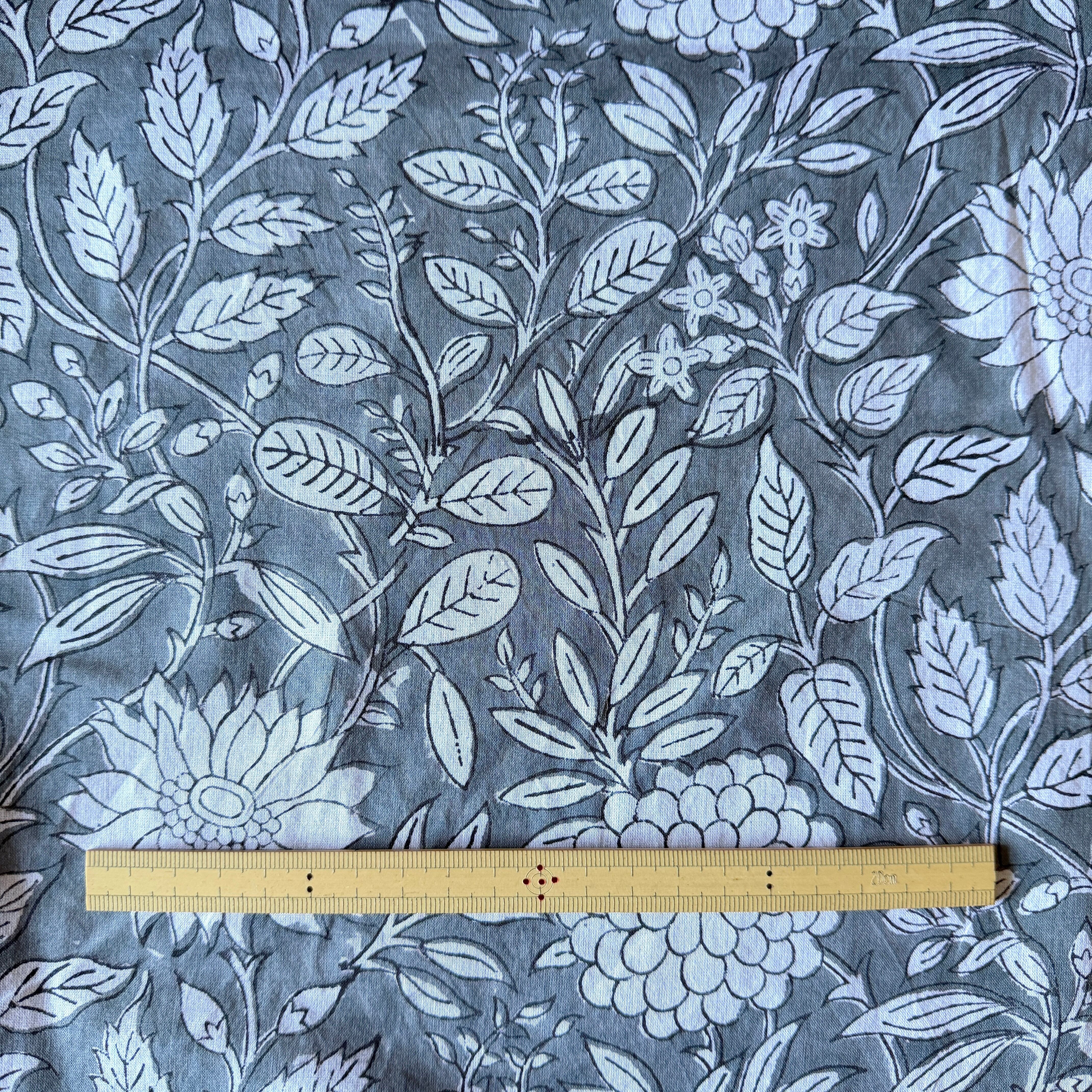 ハンドブロックプリント生地 インド更紗 綿生地 グレーベース×白抜きボタニカル柄 薄手コットン GP-26014-sa