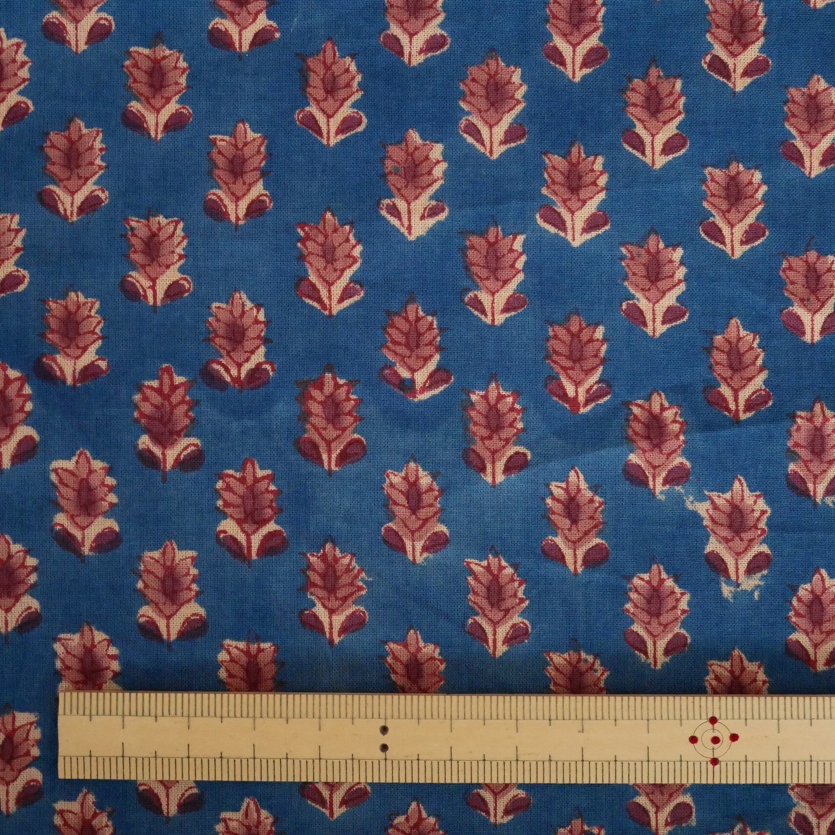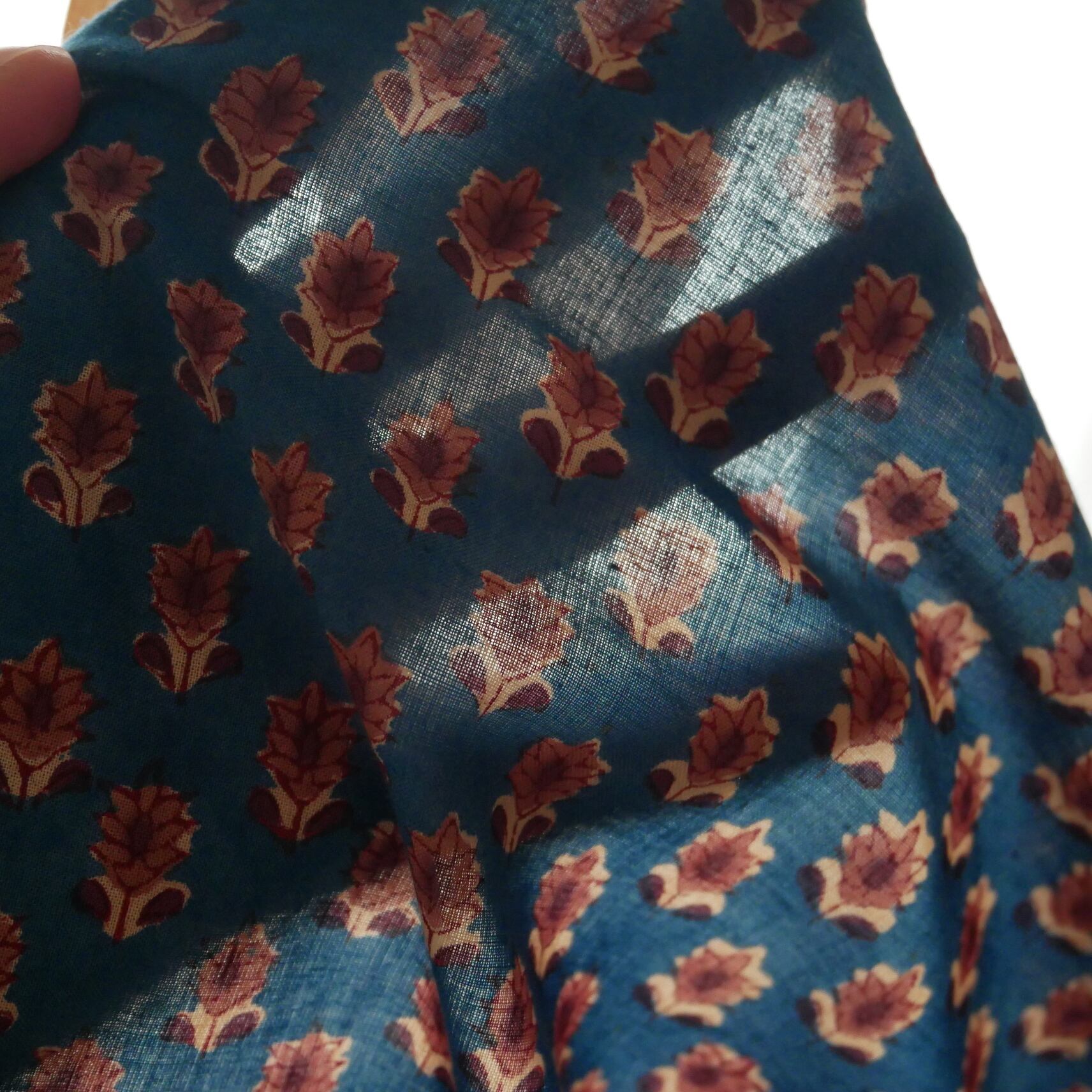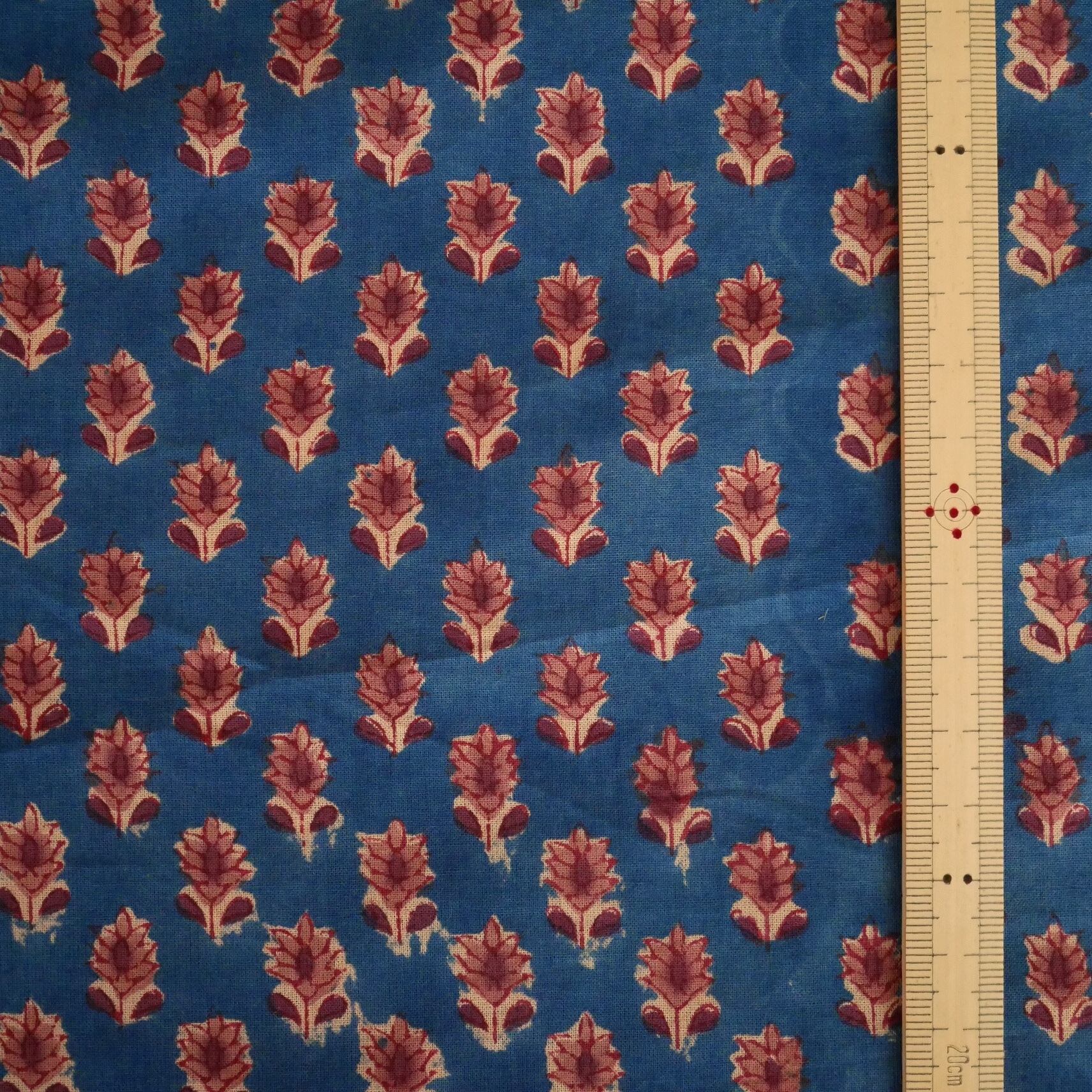 再入荷:ハンドブロックプリント生地 インド更紗 綿生地 ブルーベース×小花柄 薄手コットン JE-250843