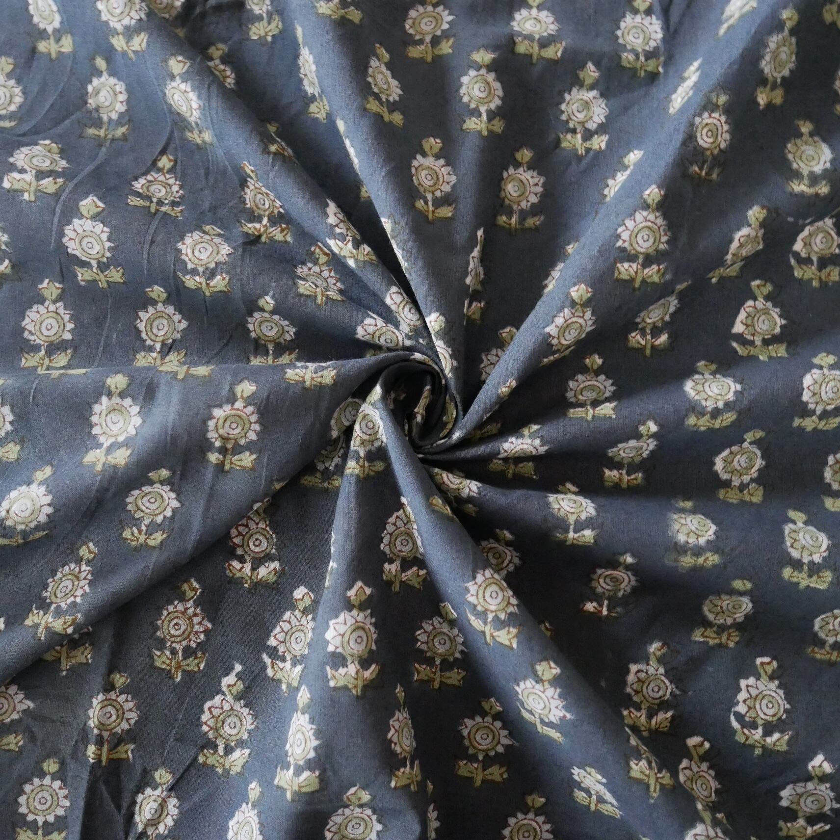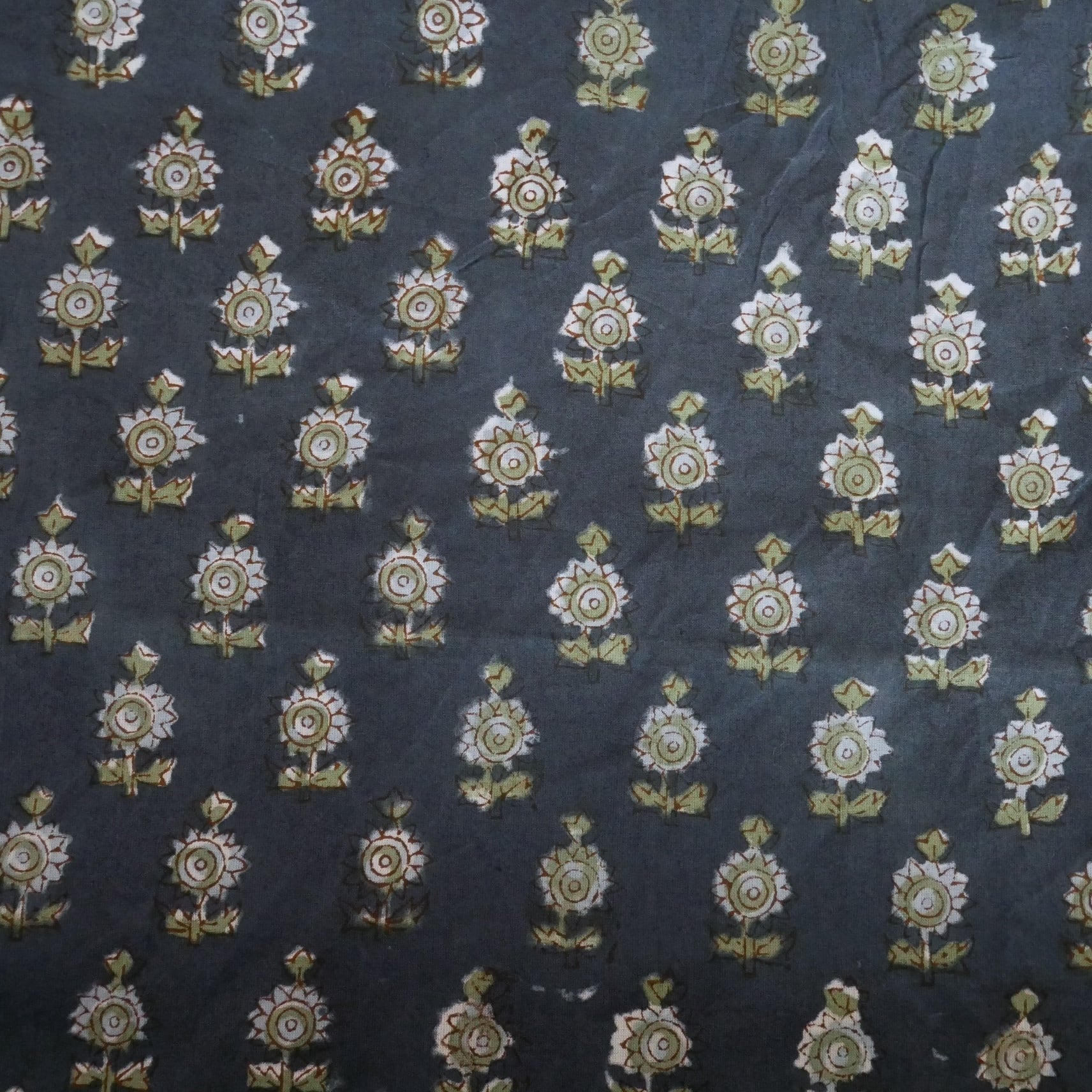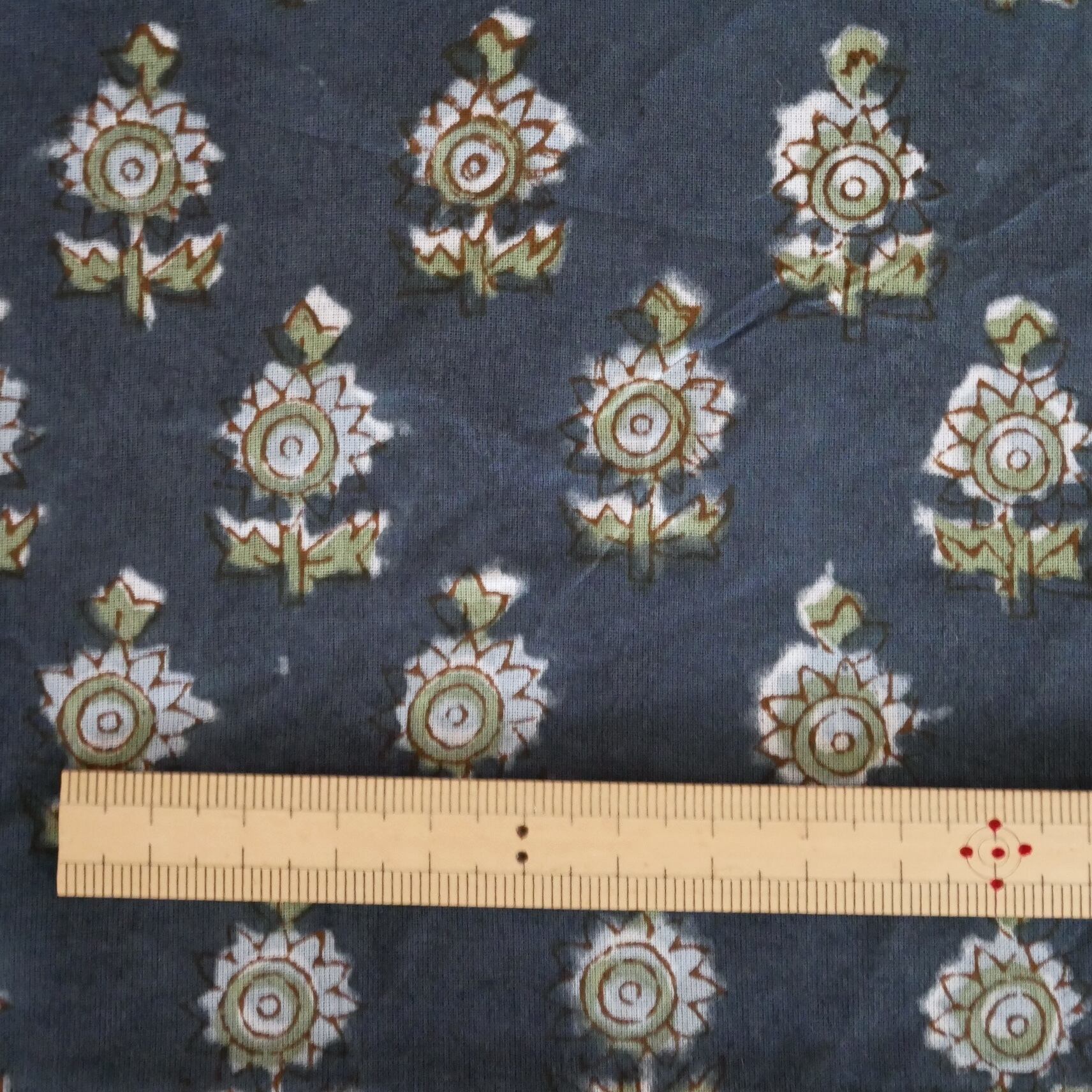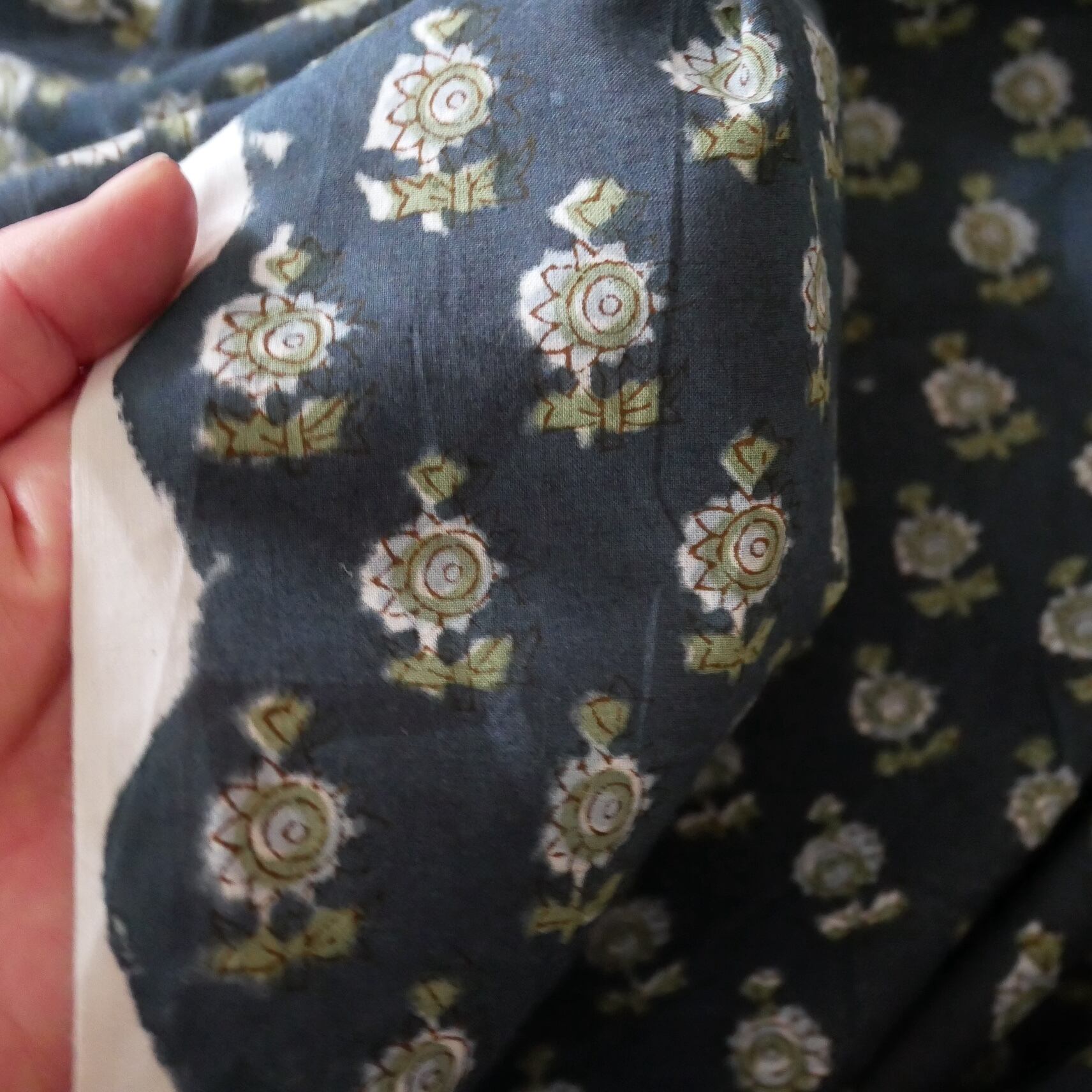 ◾️落ち着いたネイビーに映える小花柄—心を和ませるハンドブロックプリント生地