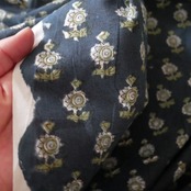 深みのあるネイビー系ベースに、可愛らしい小花柄が規則的に並んだブロックプリント生地が入荷しました。